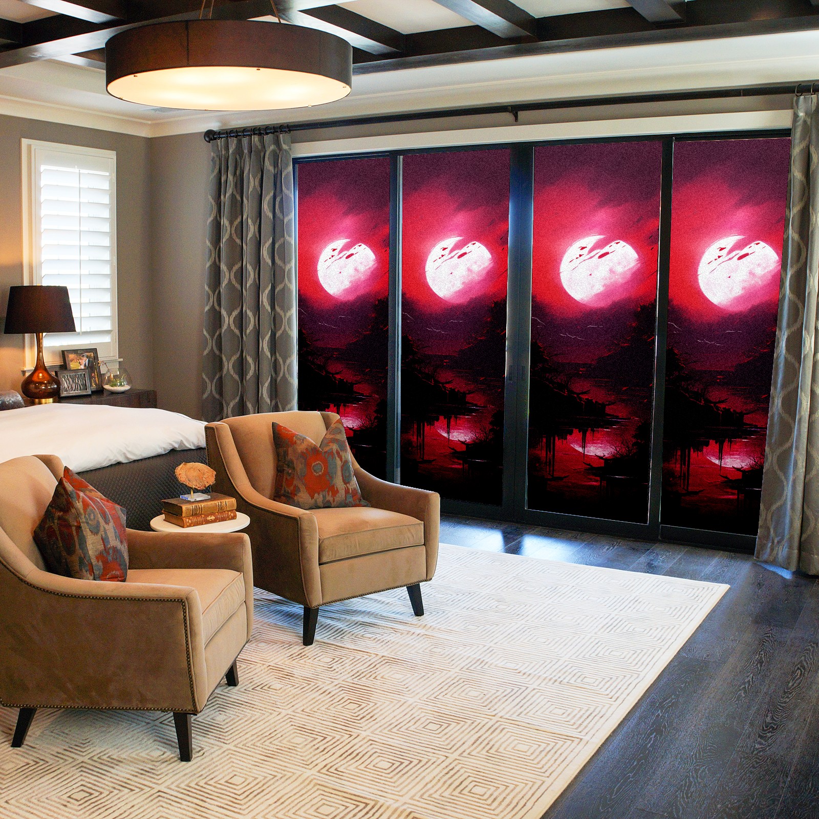 Static Cling Decorative Window Film Frosted Privacy Film Window Clings for Glass Windows No Glue Window Sticker for Bathroom Bedroom Office Under The Moon