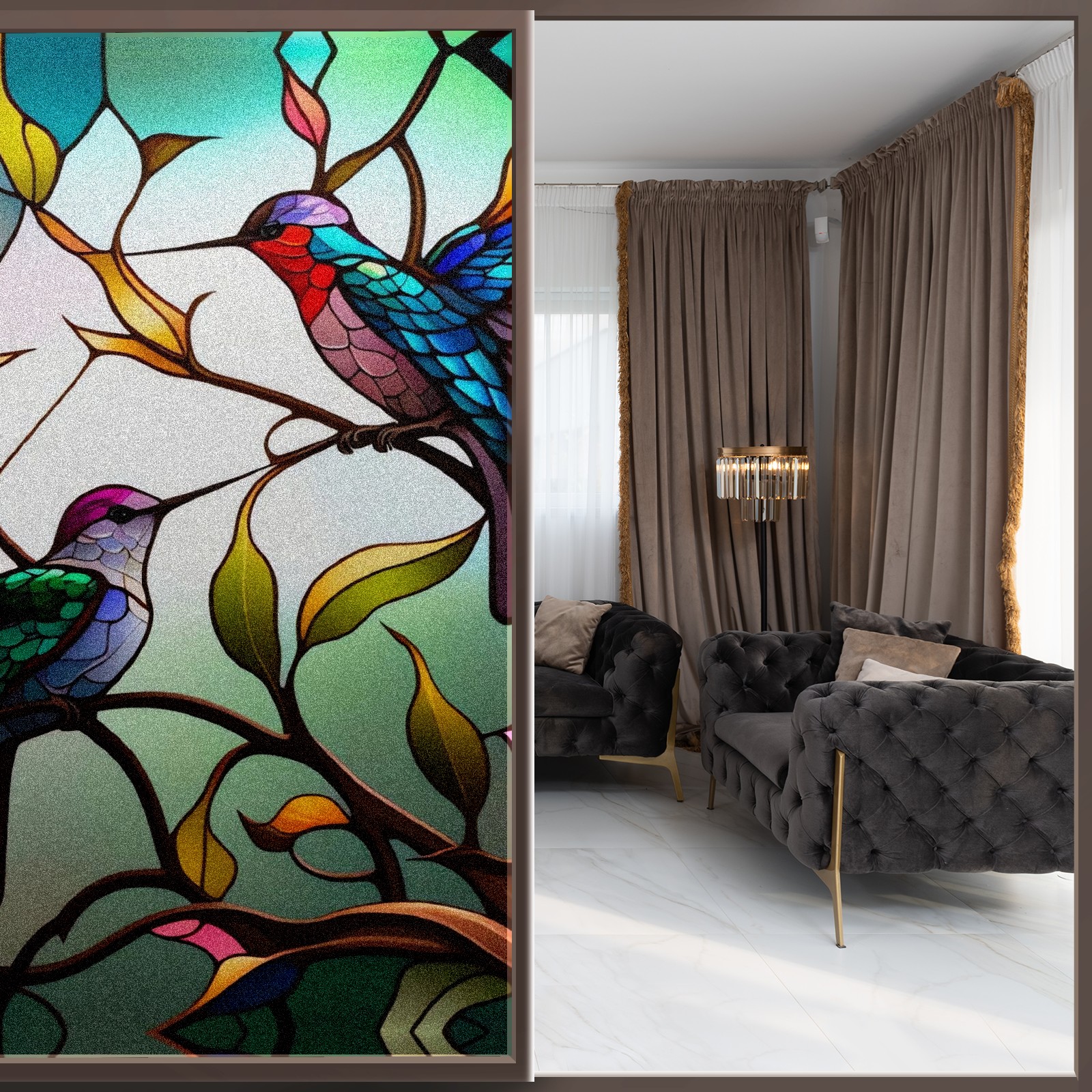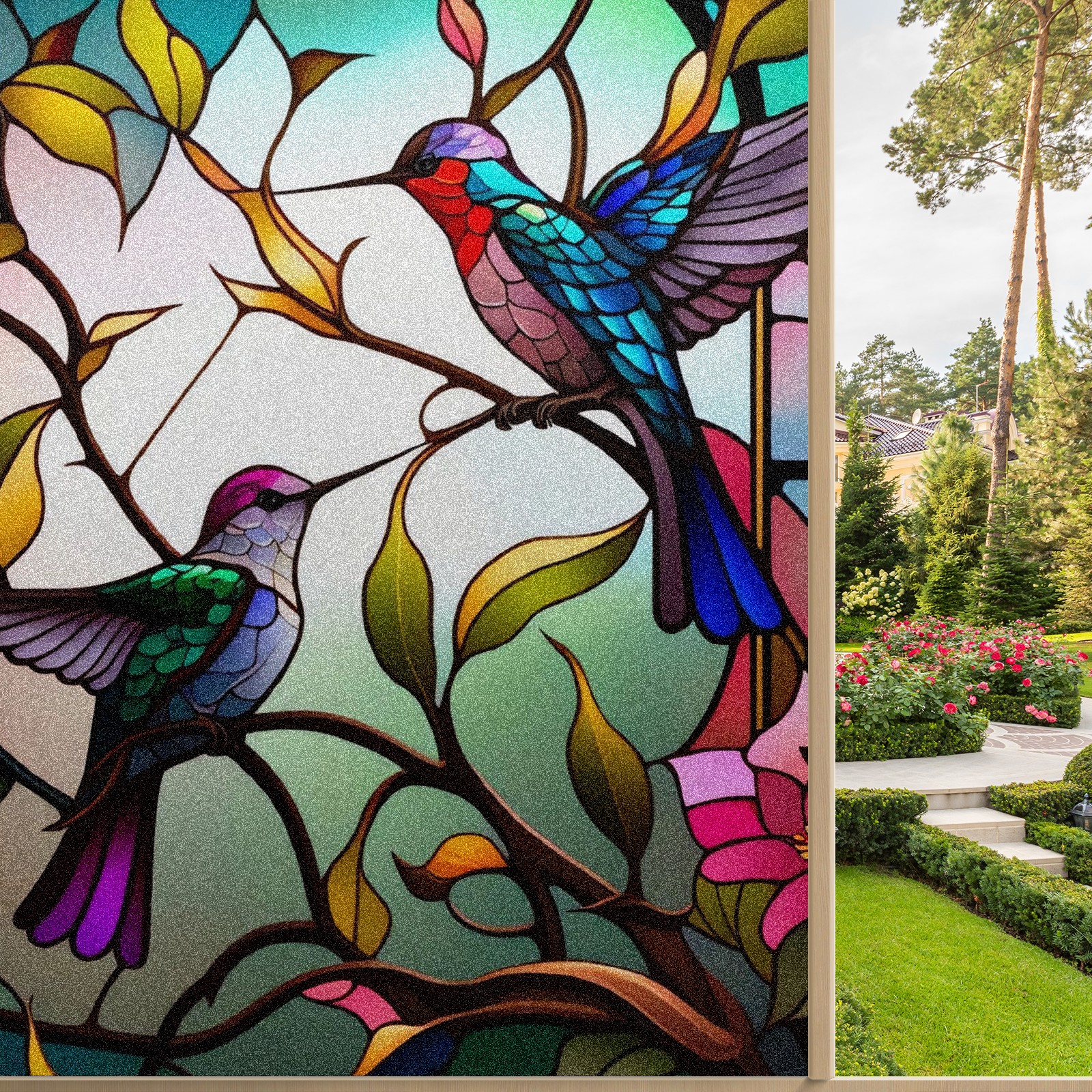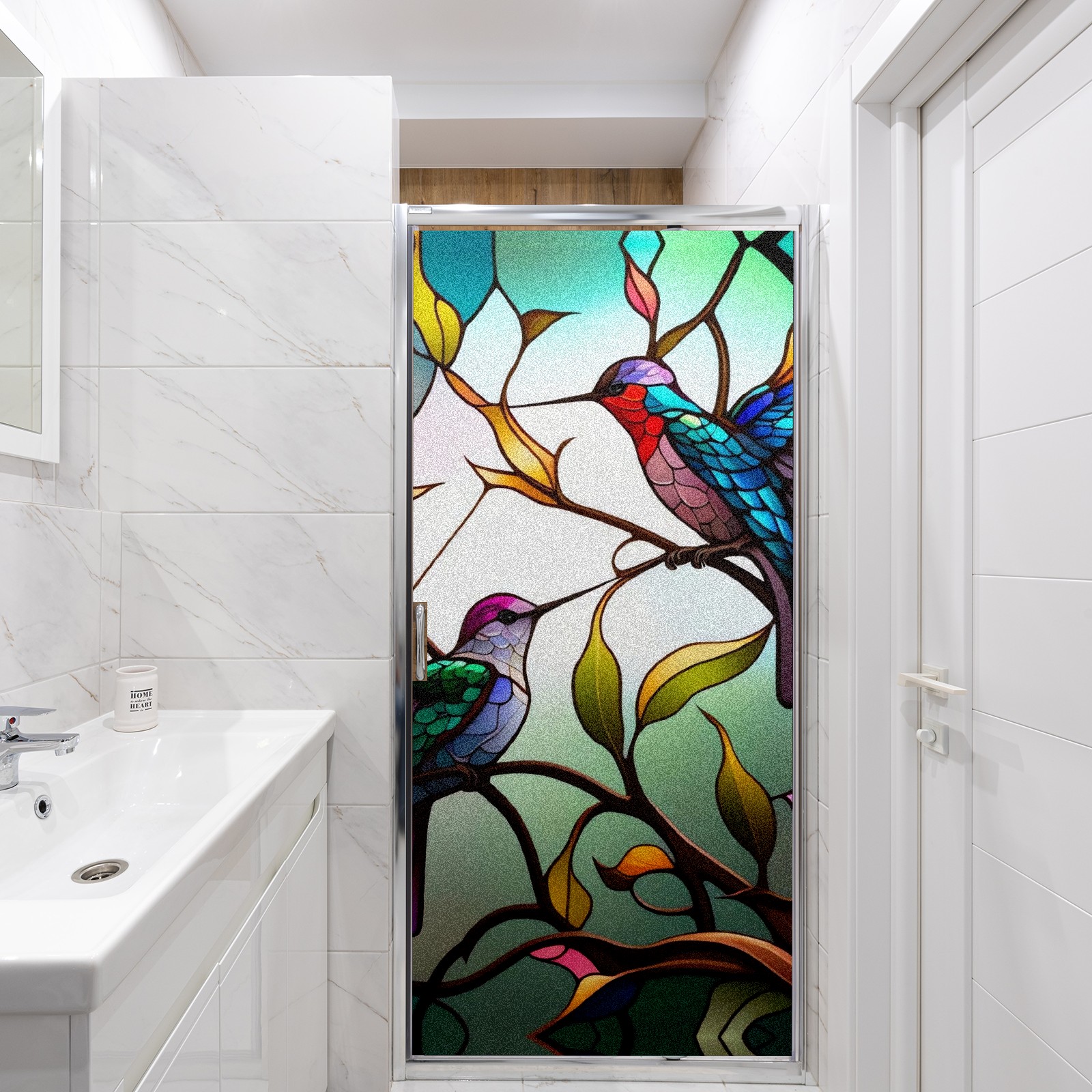Static Cling Decorative Window Film Frosted Privacy Film Window Clings for Glass Windows No Glue Window Sticker for Bathroom Bedroom Office Stained Glass Hummingbirds
