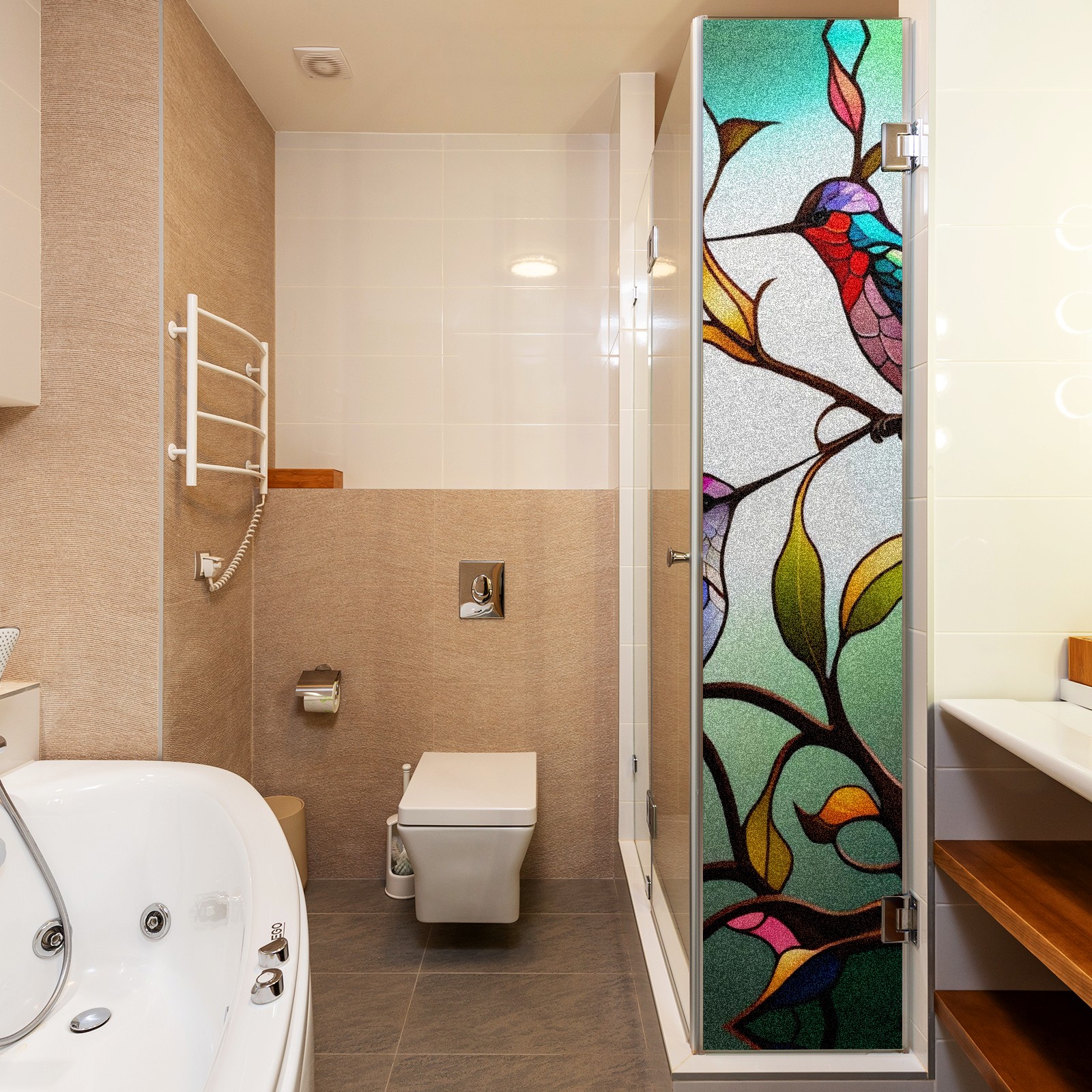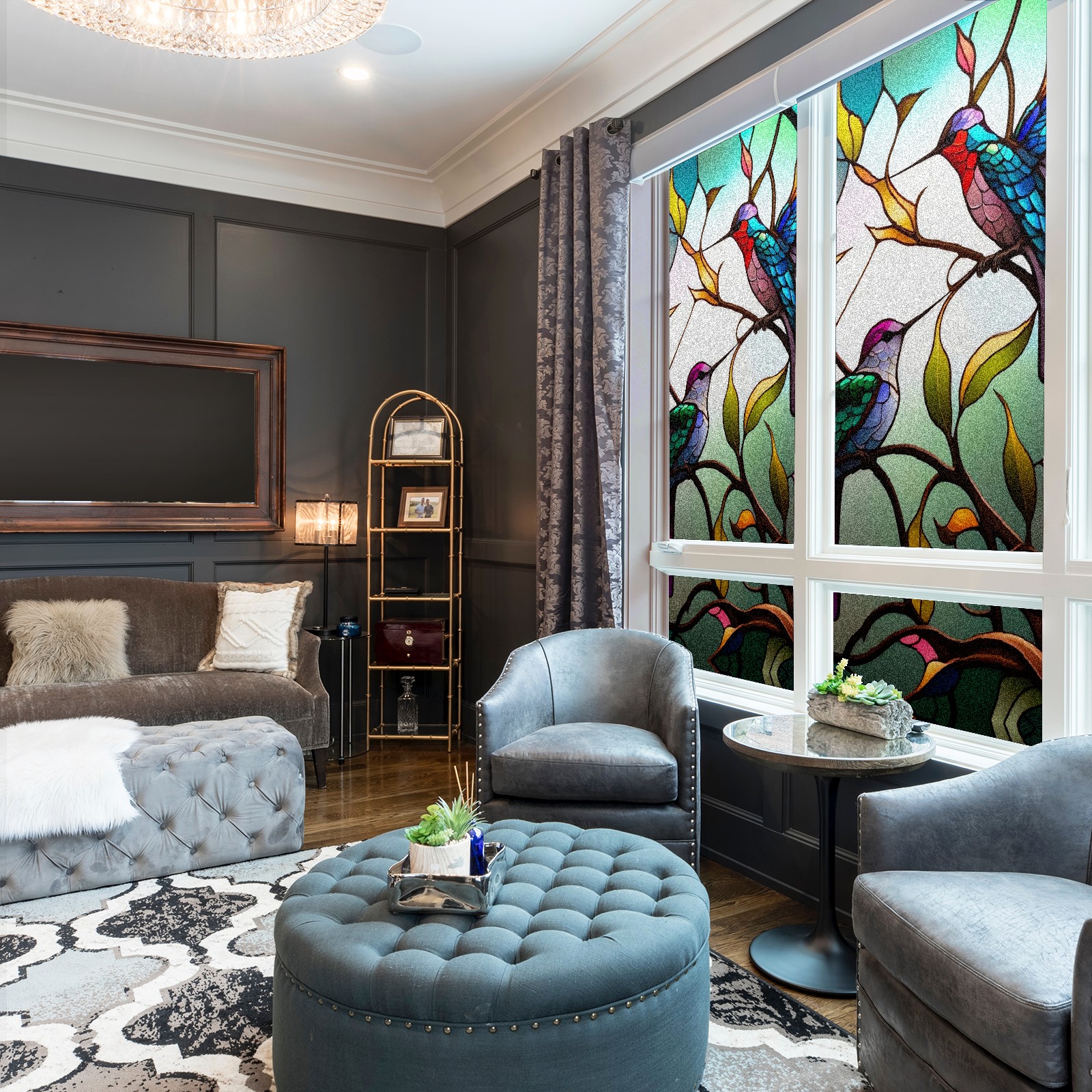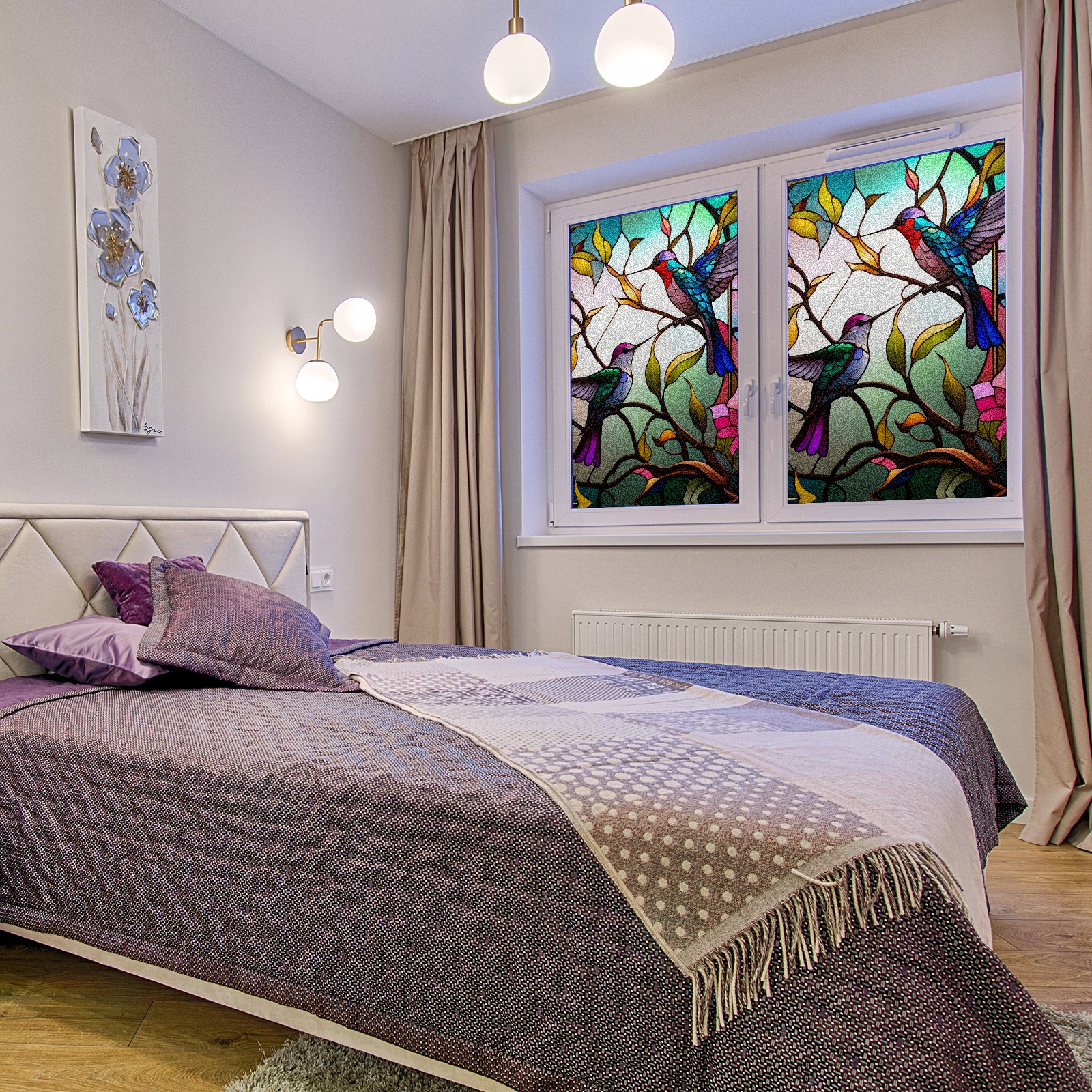 Static Cling Decorative Window Film Frosted Privacy Film Window Clings for Glass Windows No Glue Window Sticker for Bathroom Bedroom Office Stained Glass Hummingbirds
