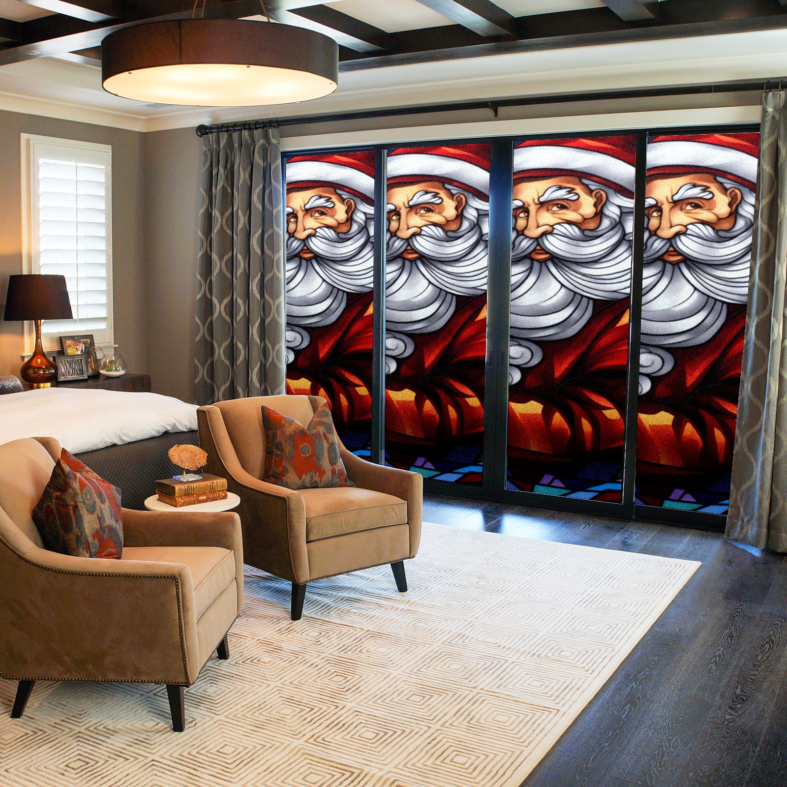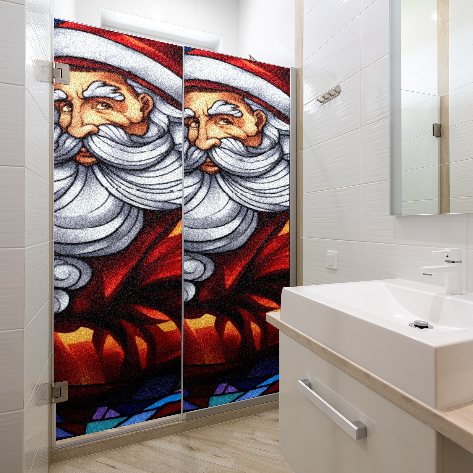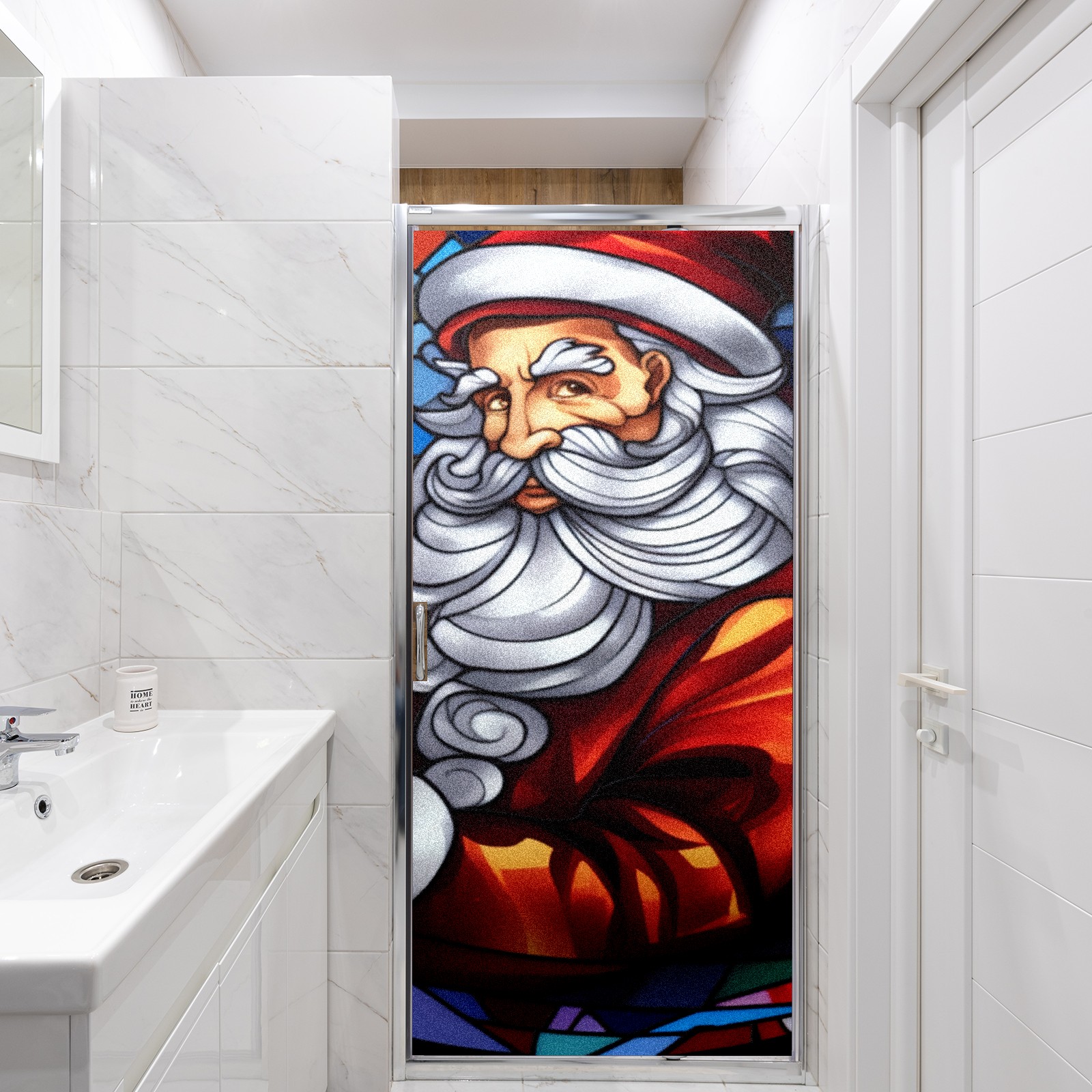 Static Cling Decorative Window Film Frosted Privacy Film Window Clings for Glass Windows No Glue Window Sticker for Bathroom Bedroom Office Christmas Santa