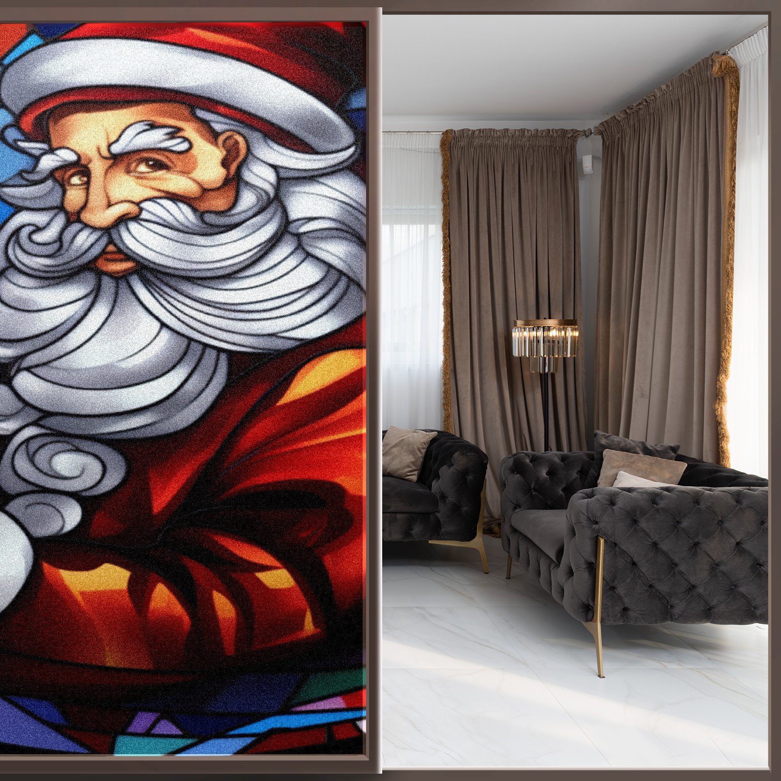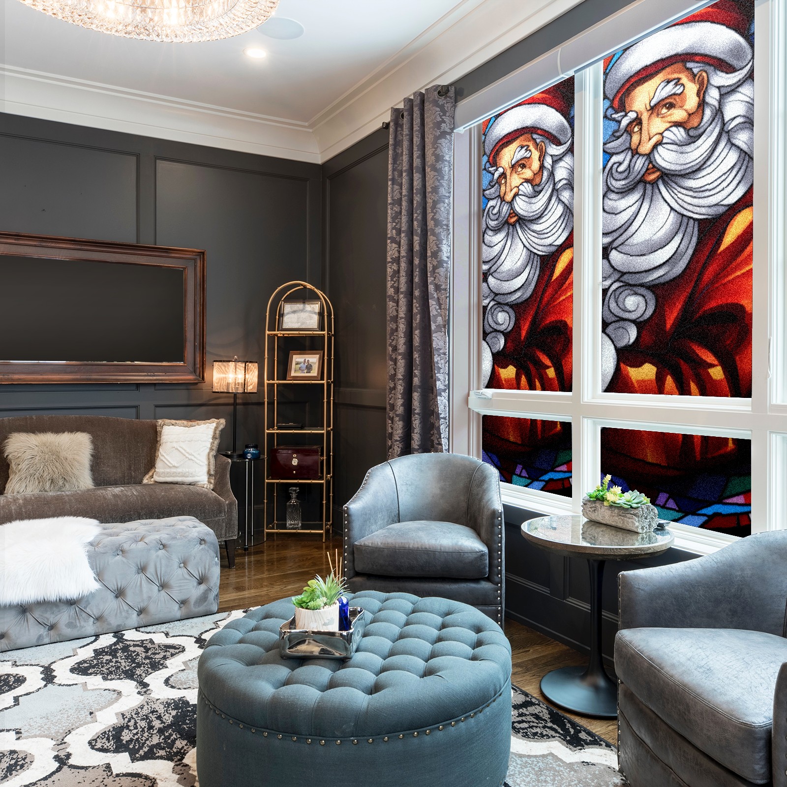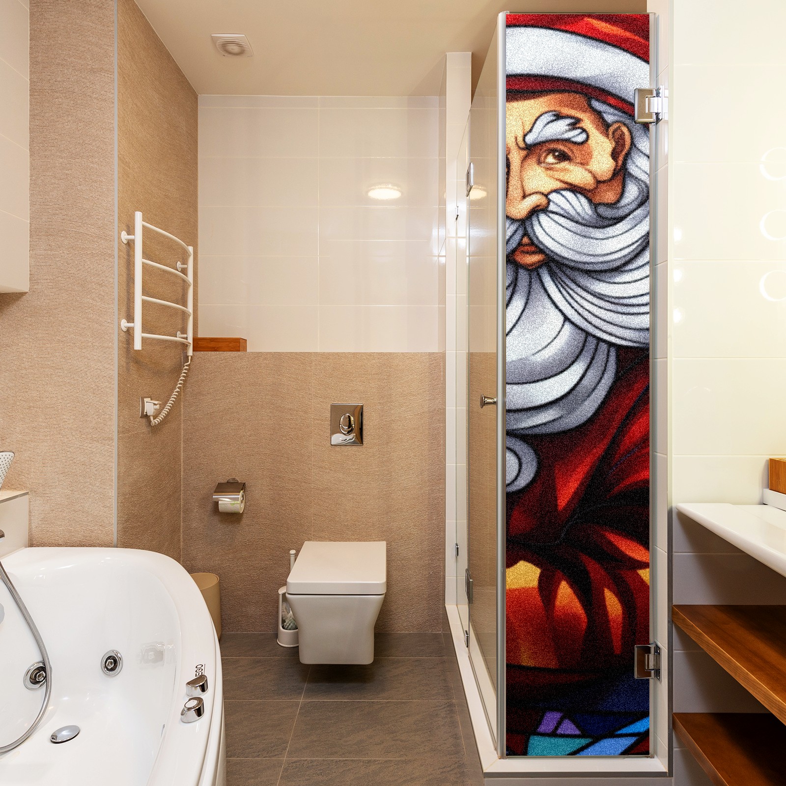 Static Cling Decorative Window Film Frosted Privacy Film Window Clings for Glass Windows No Glue Window Sticker for Bathroom Bedroom Office Christmas Santa