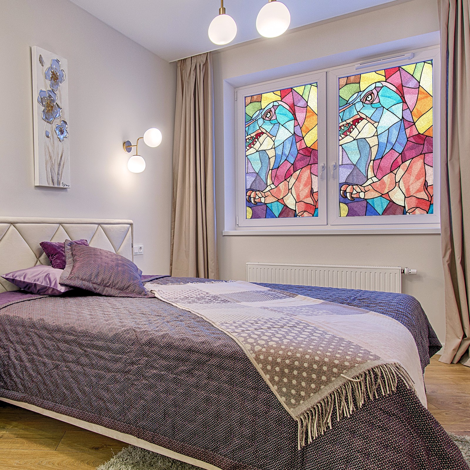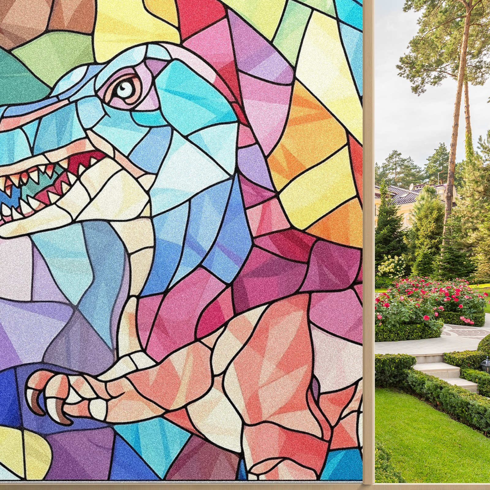 Static Cling Decorative Window Film Frosted Privacy Film Window Clings for Glass Windows No Glue Window Sticker for Bathroom Bedroom Office Stained Glass Dinosaur (15)