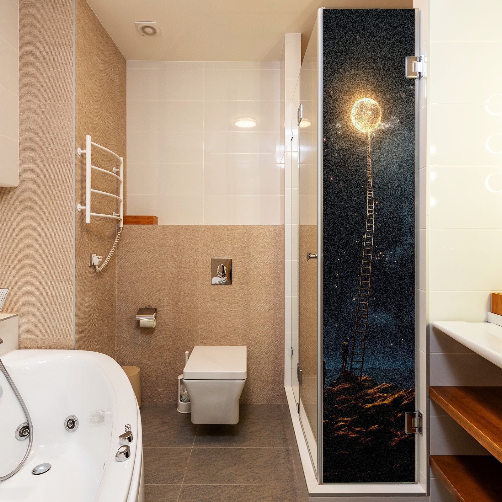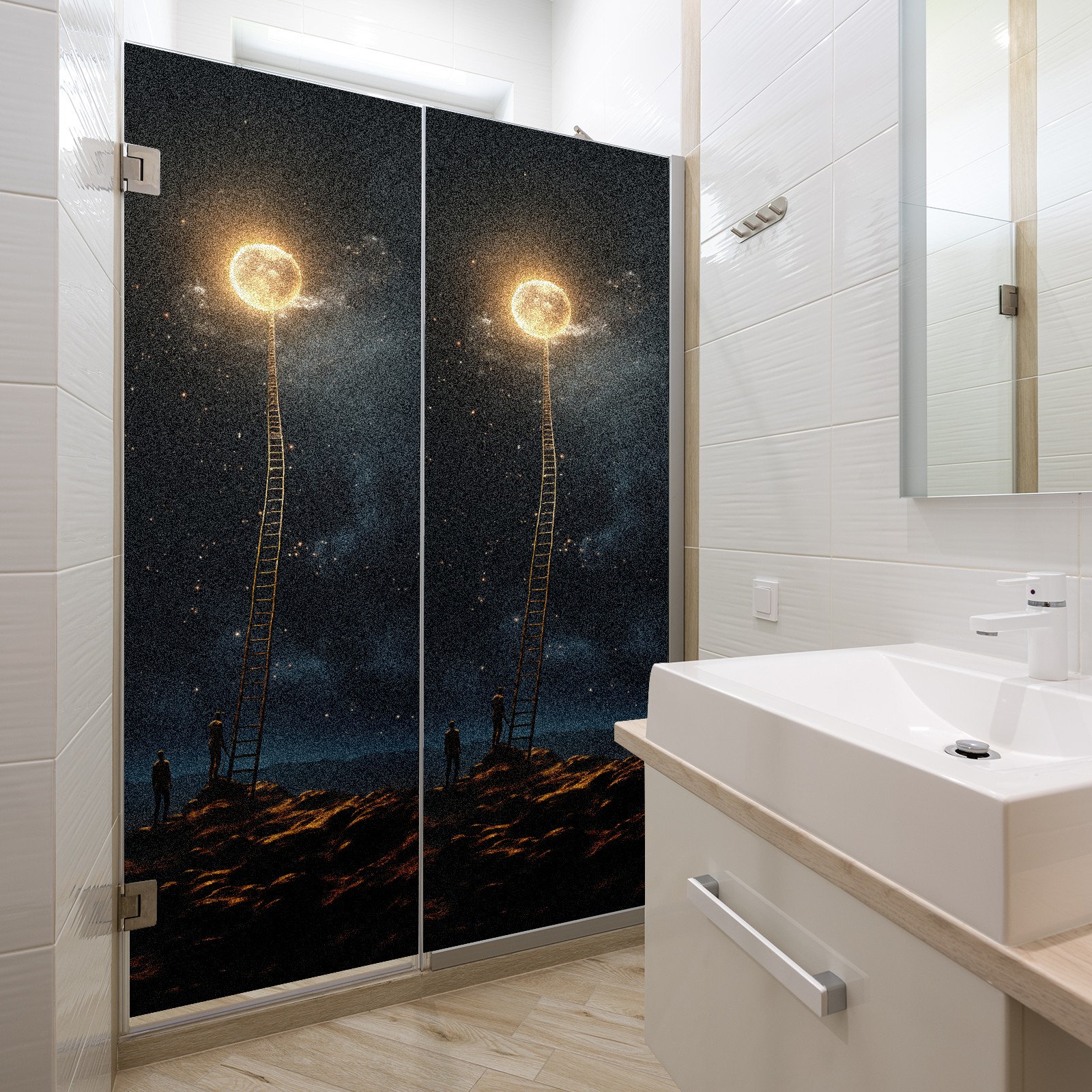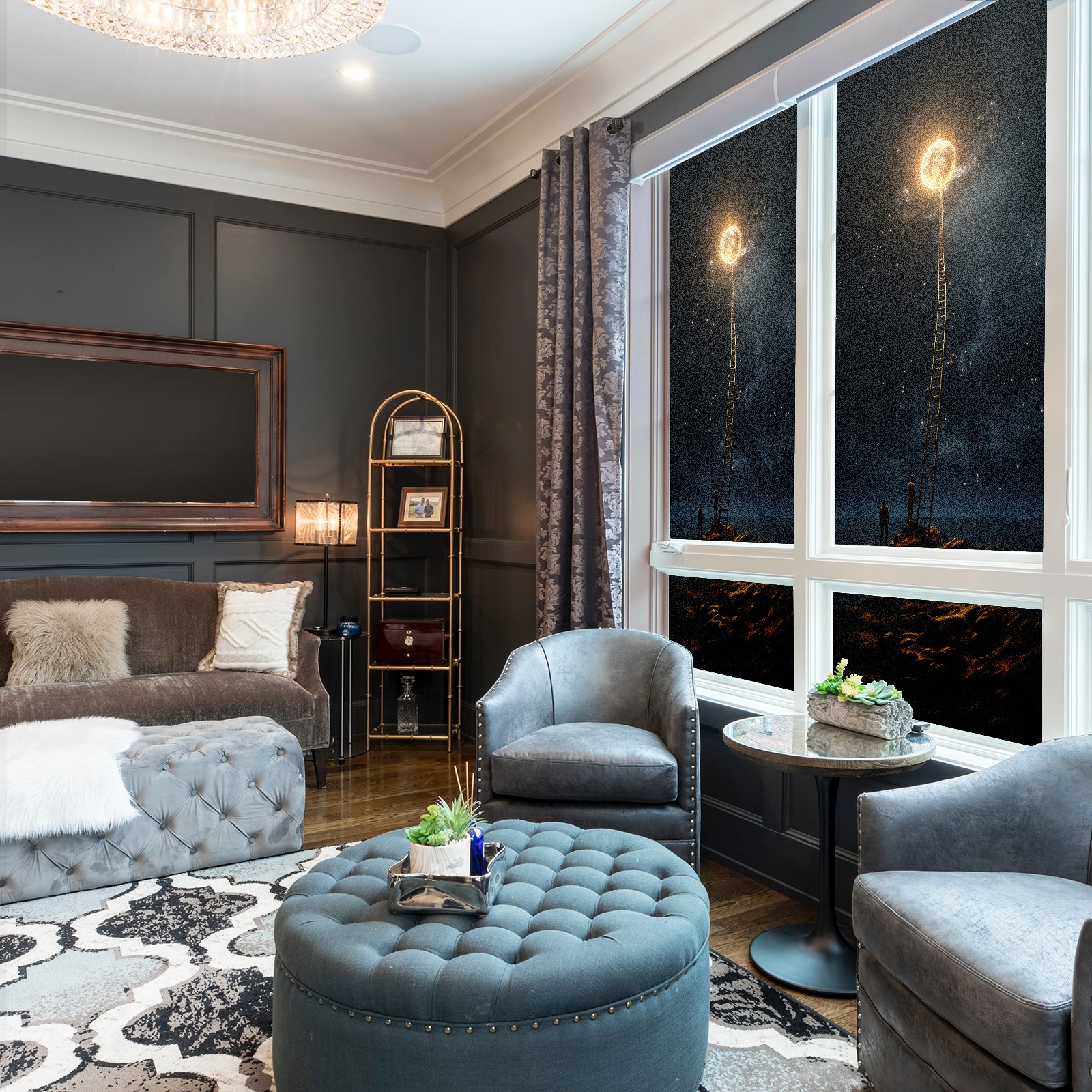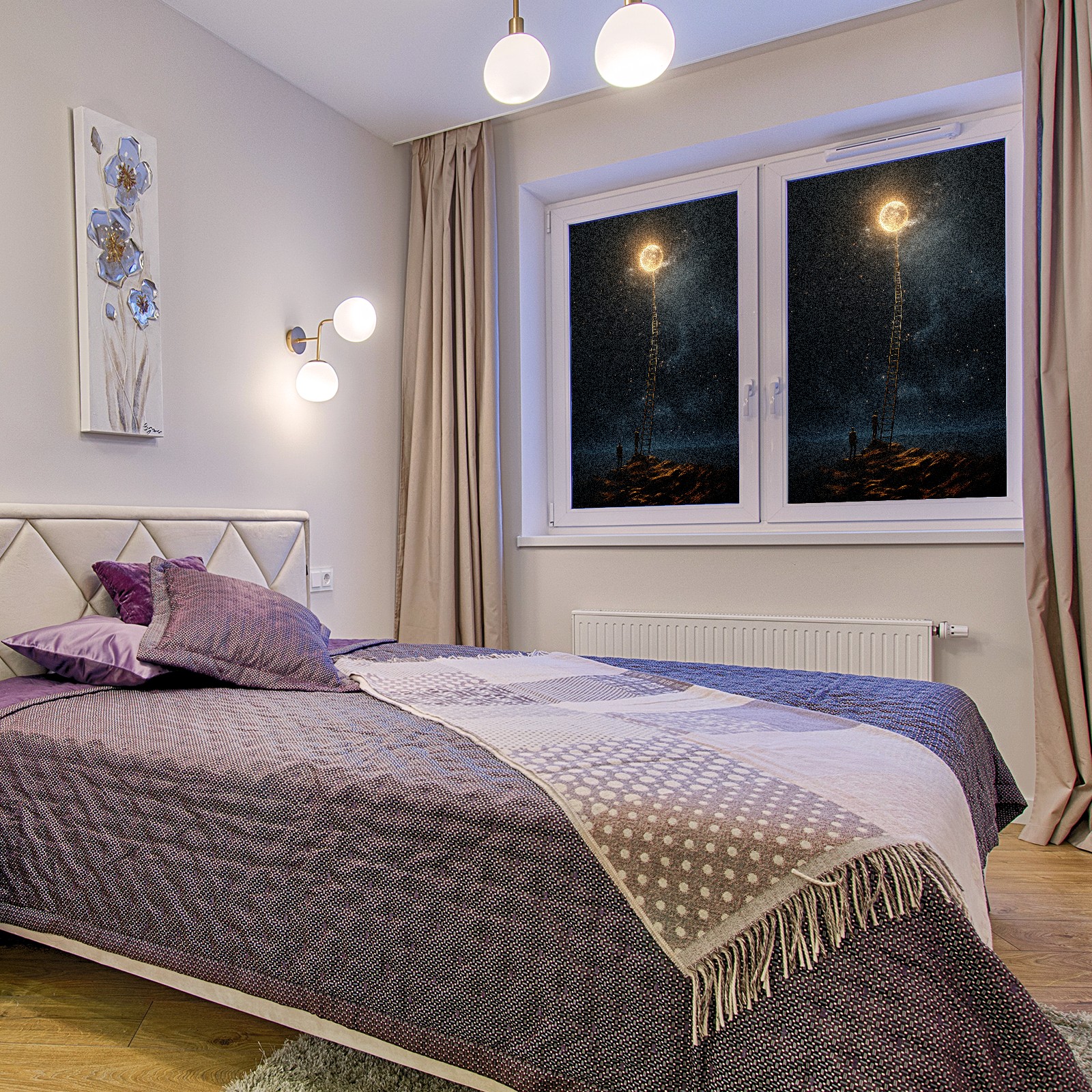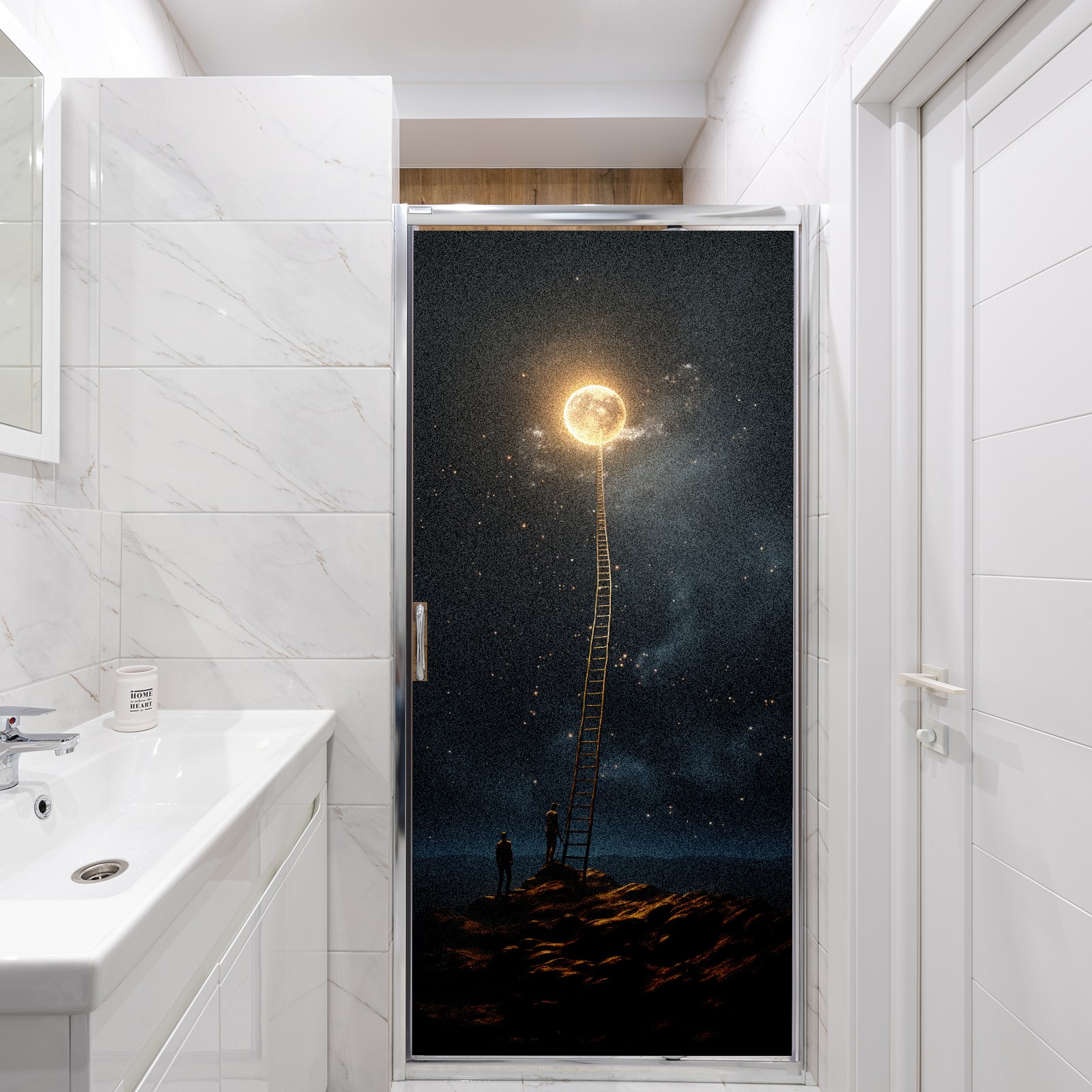 Static Cling Decorative Window Film Frosted Privacy Film Window Clings for Glass Windows No Glue Window Sticker for Bathroom Bedroom Office Under The Moon