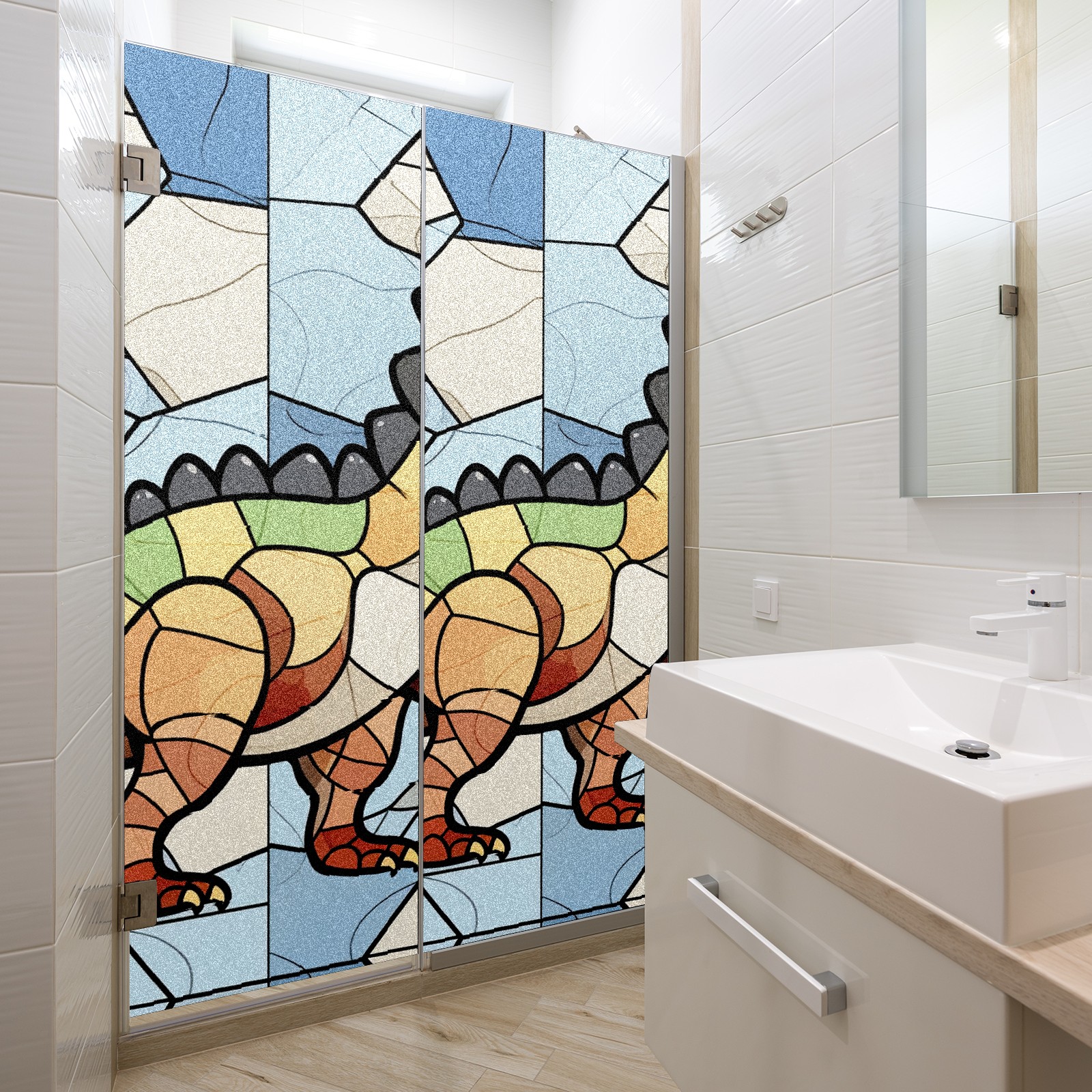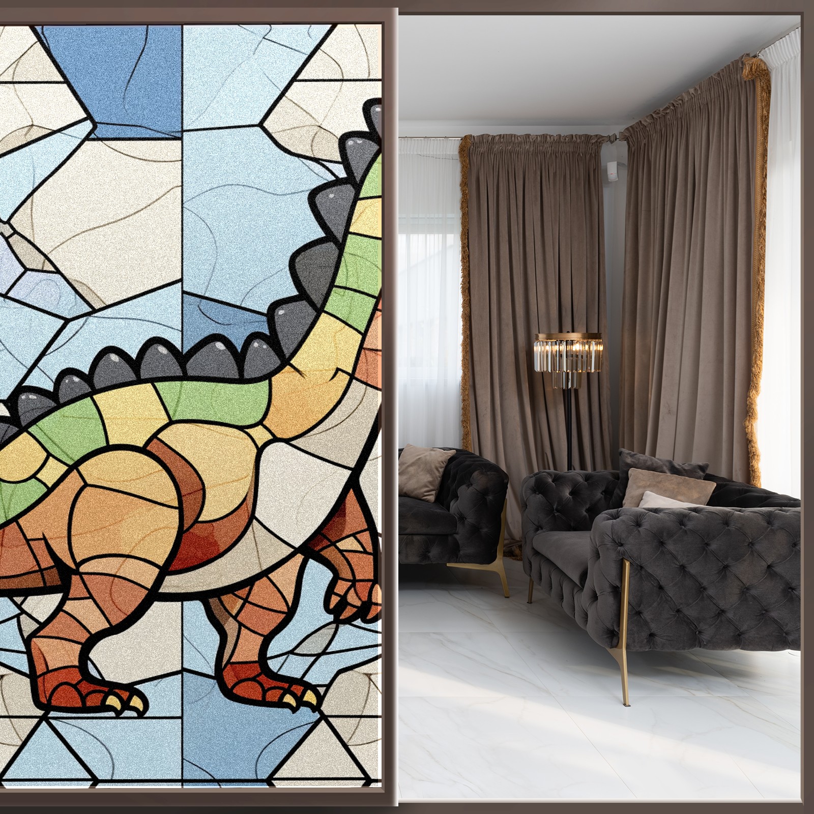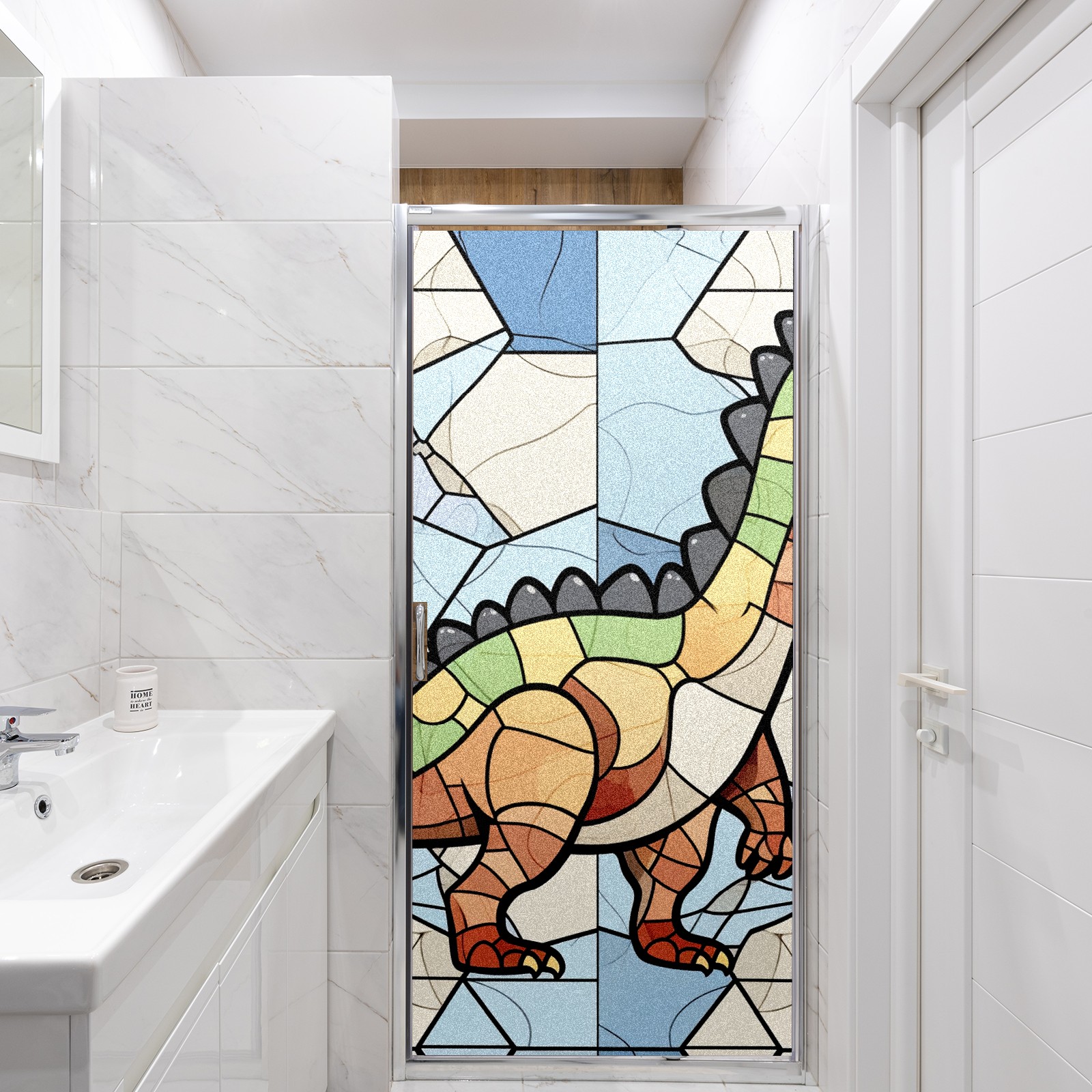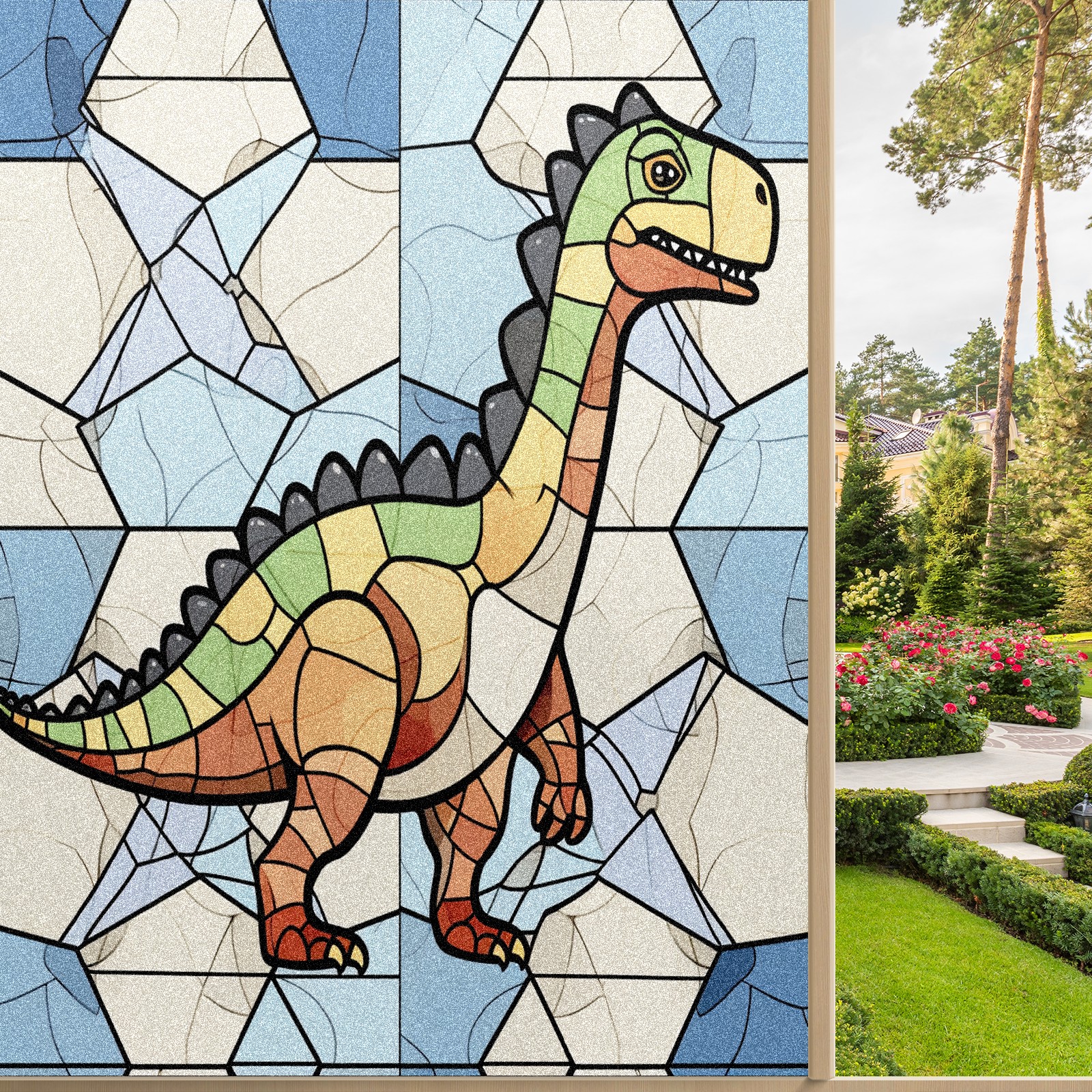 Static Cling Decorative Window Film Frosted Privacy Film Window Clings for Glass Windows No Glue Window Sticker for Bathroom Bedroom Office Stained Glass Dinosaur (11)