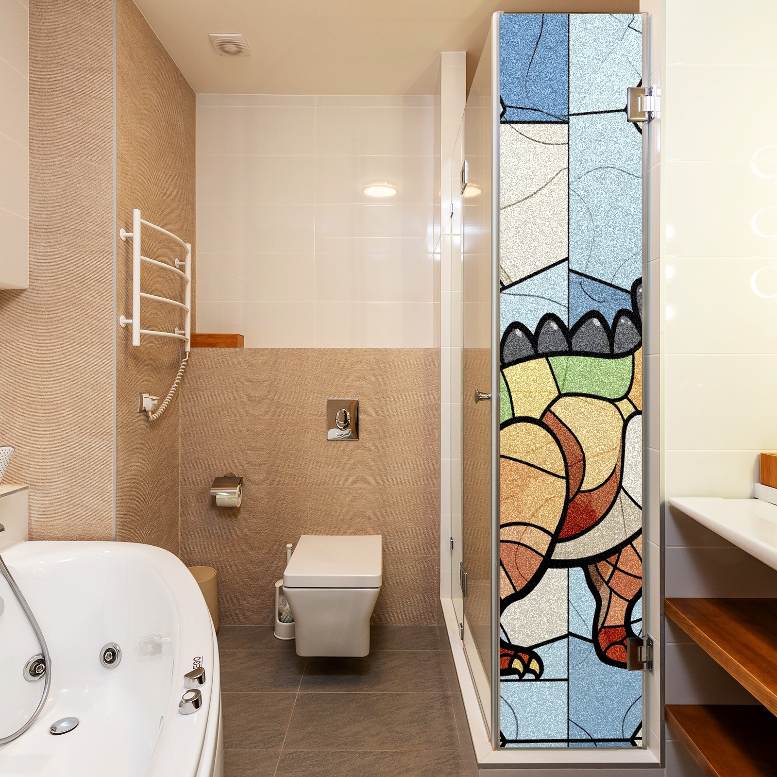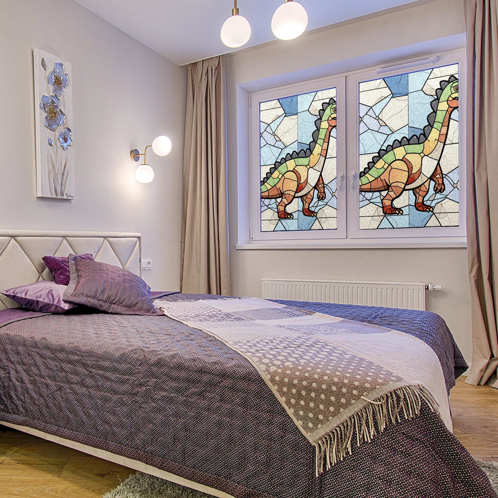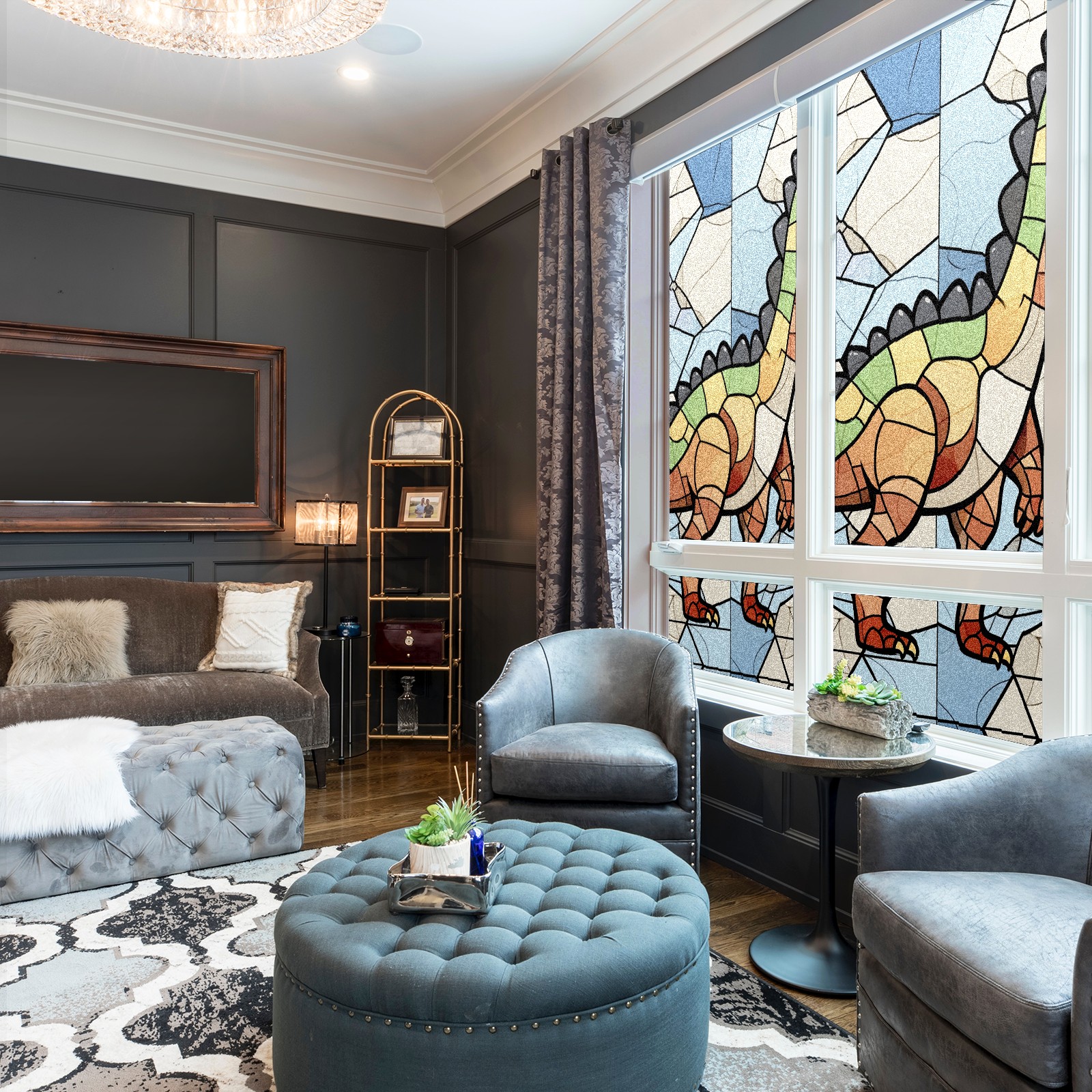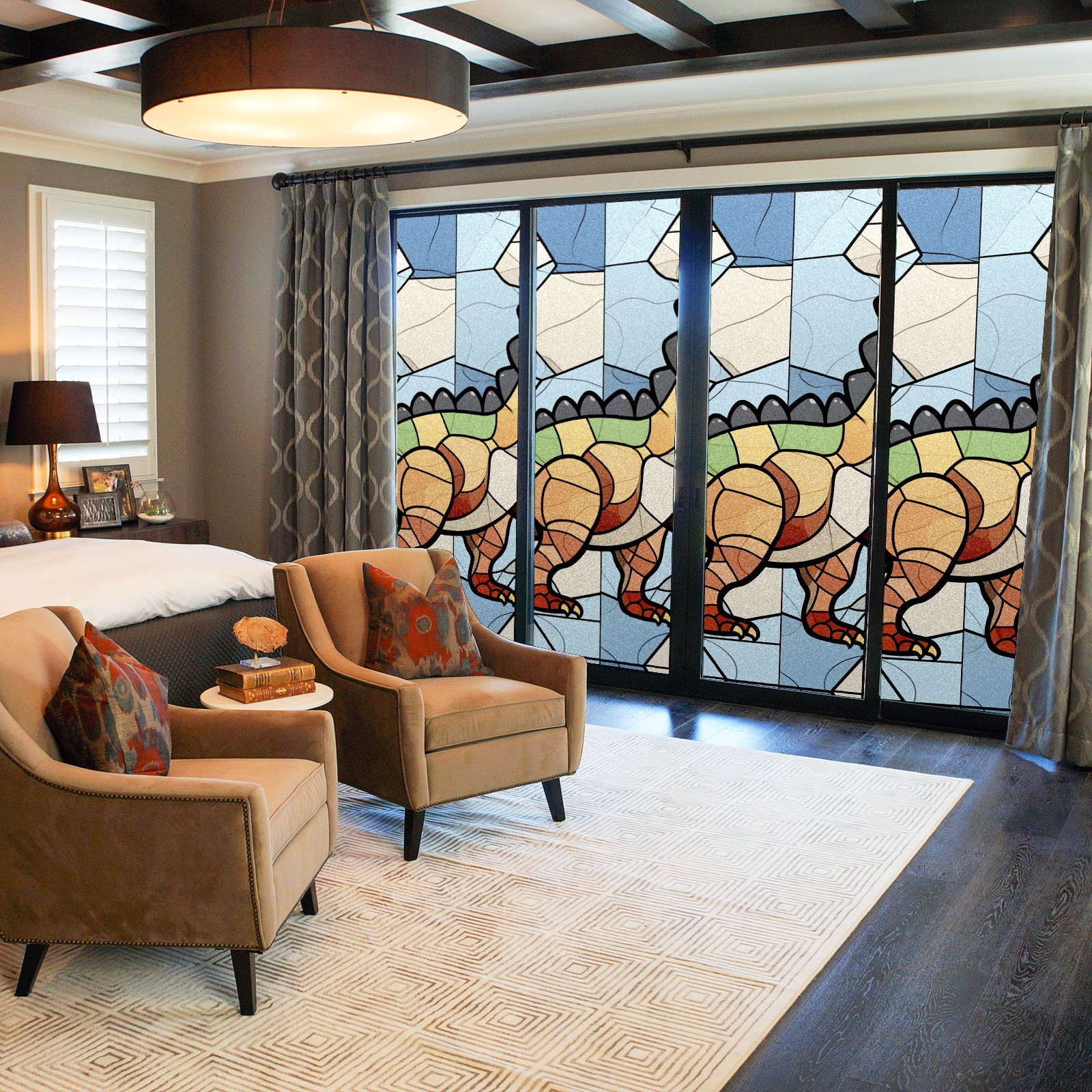 Static Cling Decorative Window Film Frosted Privacy Film Window Clings for Glass Windows No Glue Window Sticker for Bathroom Bedroom Office Stained Glass Dinosaur (11)