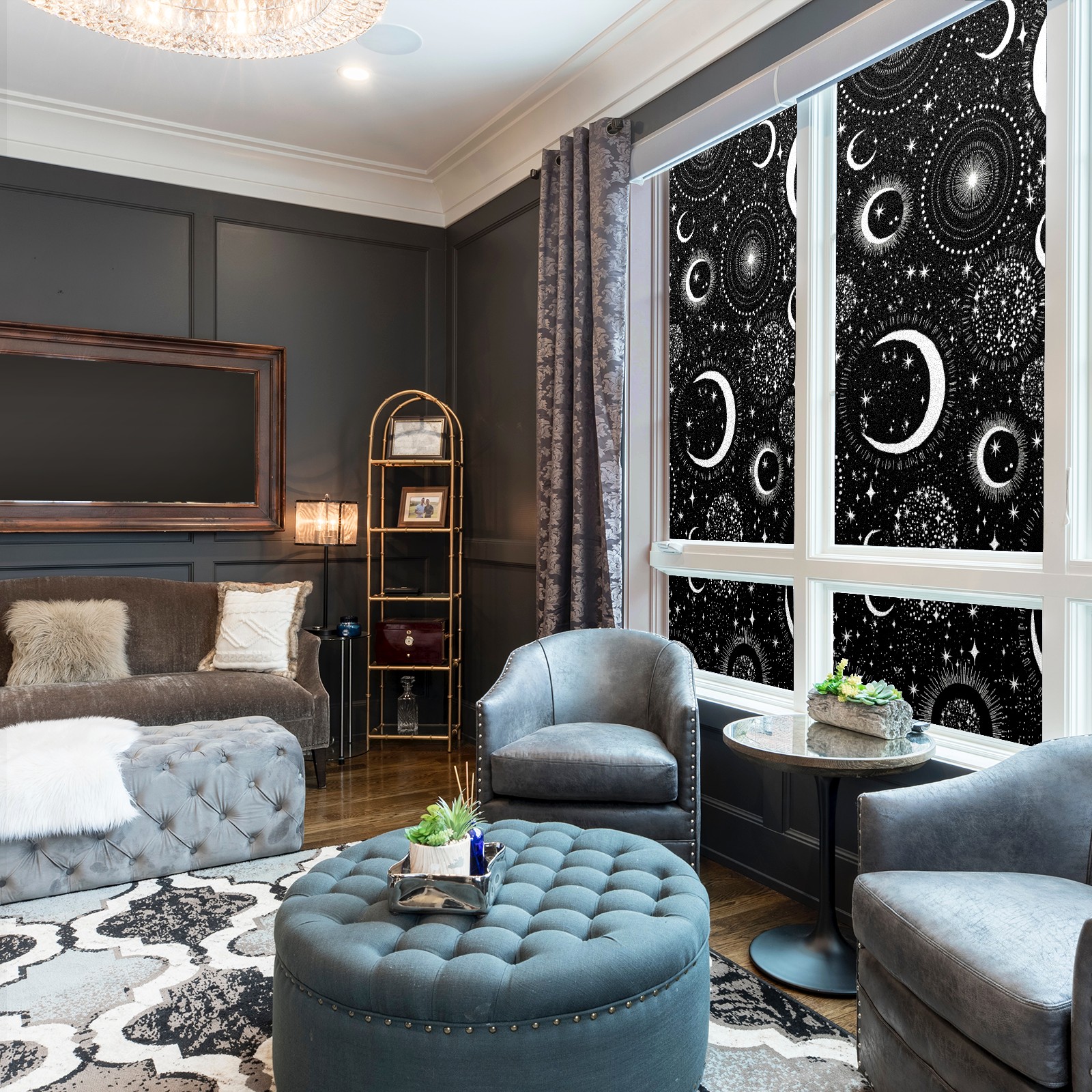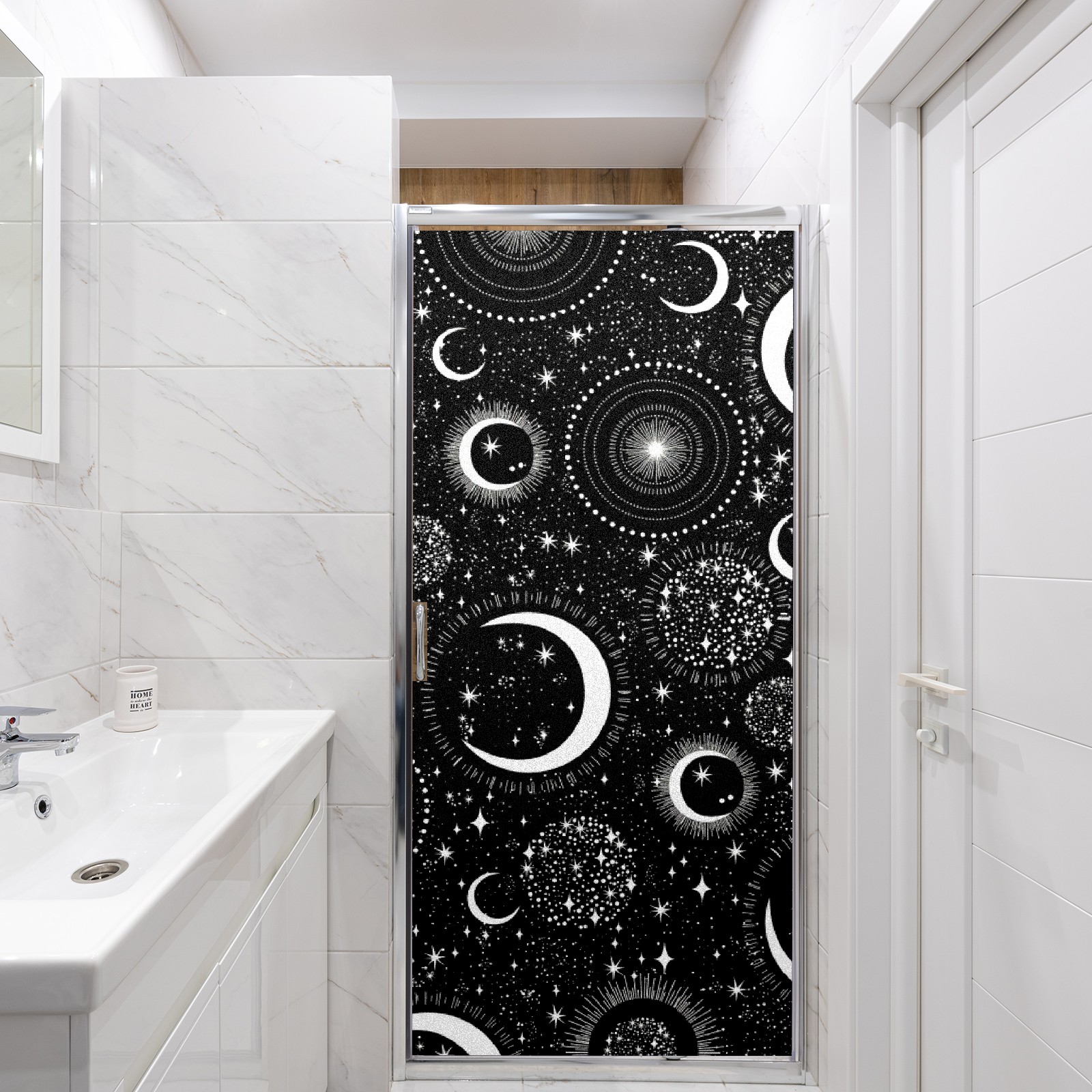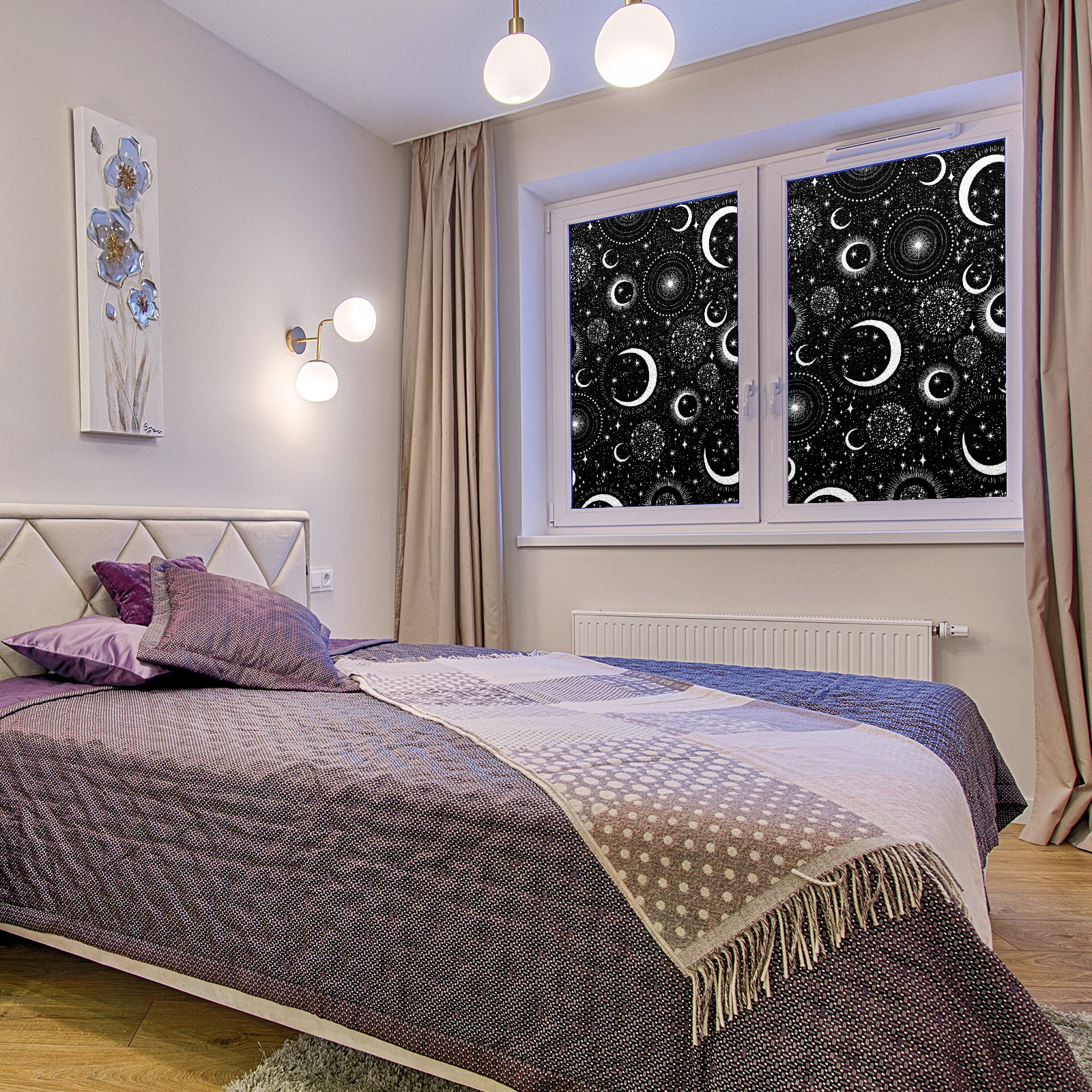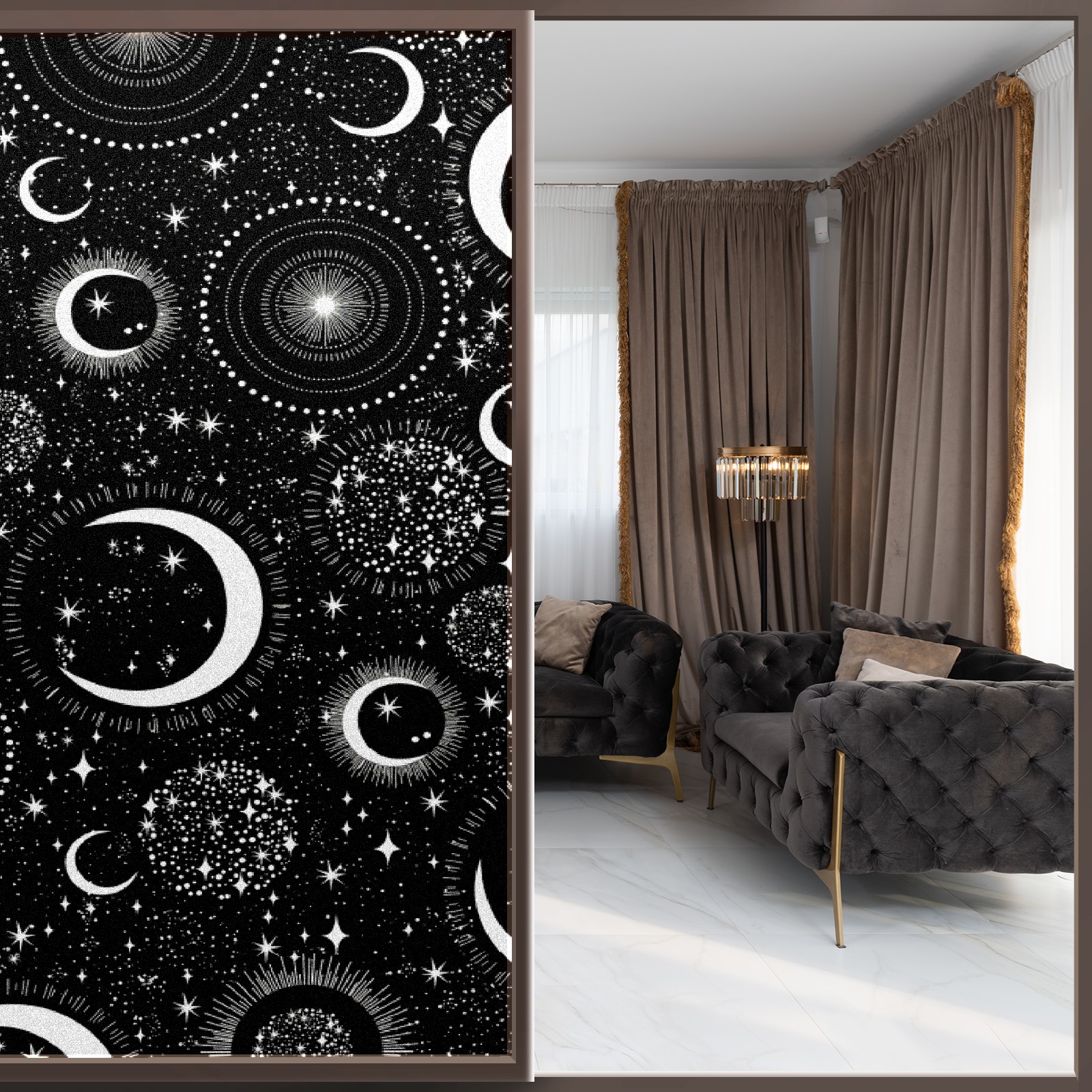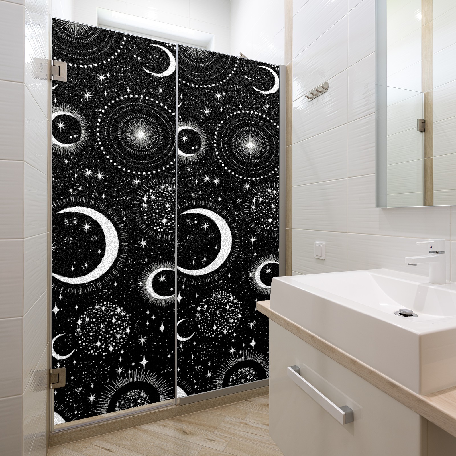 Static Cling Decorative Window Film Frosted Privacy Film Window Clings for Glass Windows No Glue Window Sticker for Bathroom Bedroom Office Gothic Moon Stars Boho