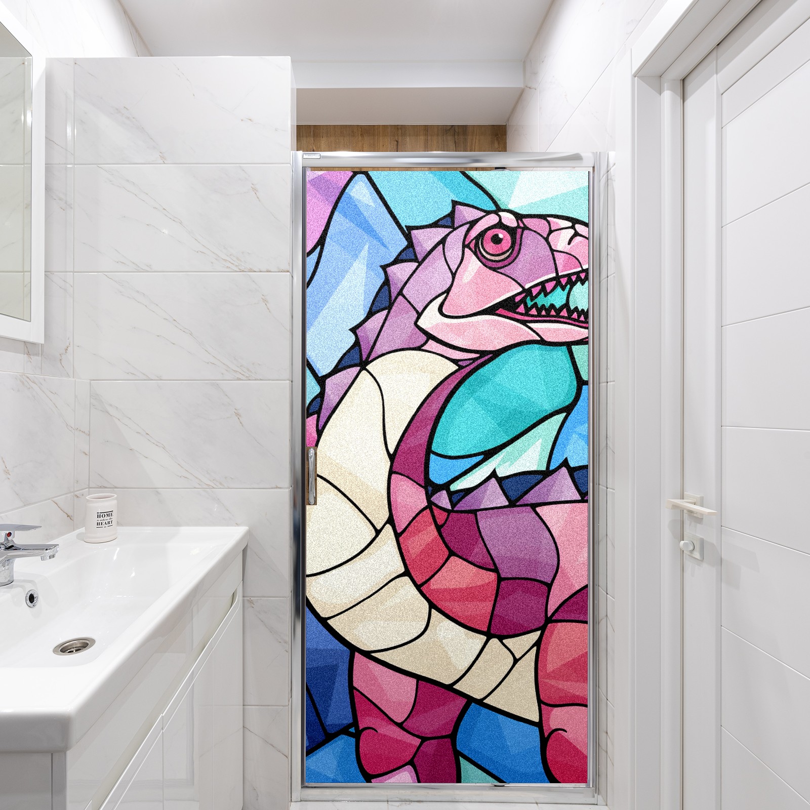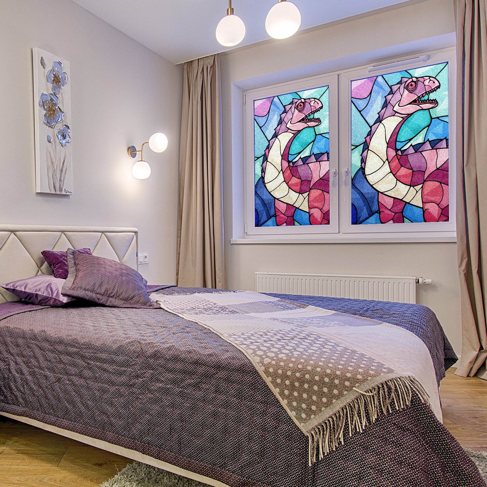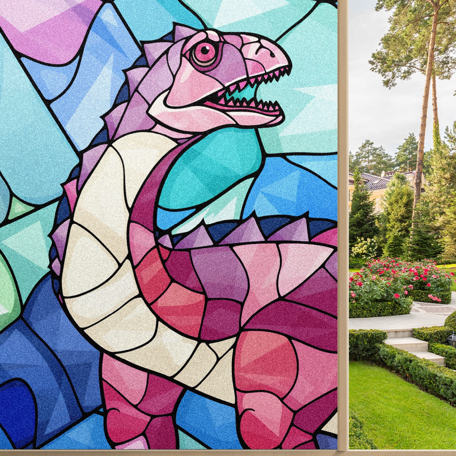 Static Cling Decorative Window Film Frosted Privacy Film Window Clings for Glass Windows No Glue Window Sticker for Bathroom Bedroom Office Stained Glass Dinosaur (3)
