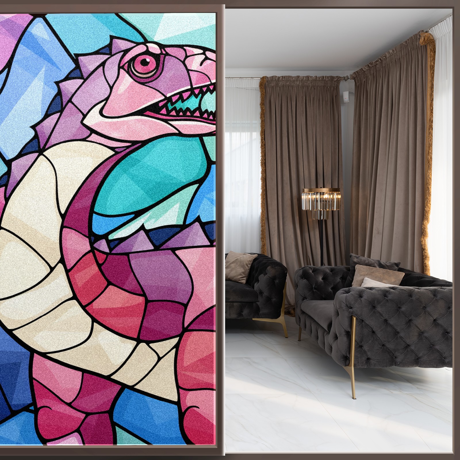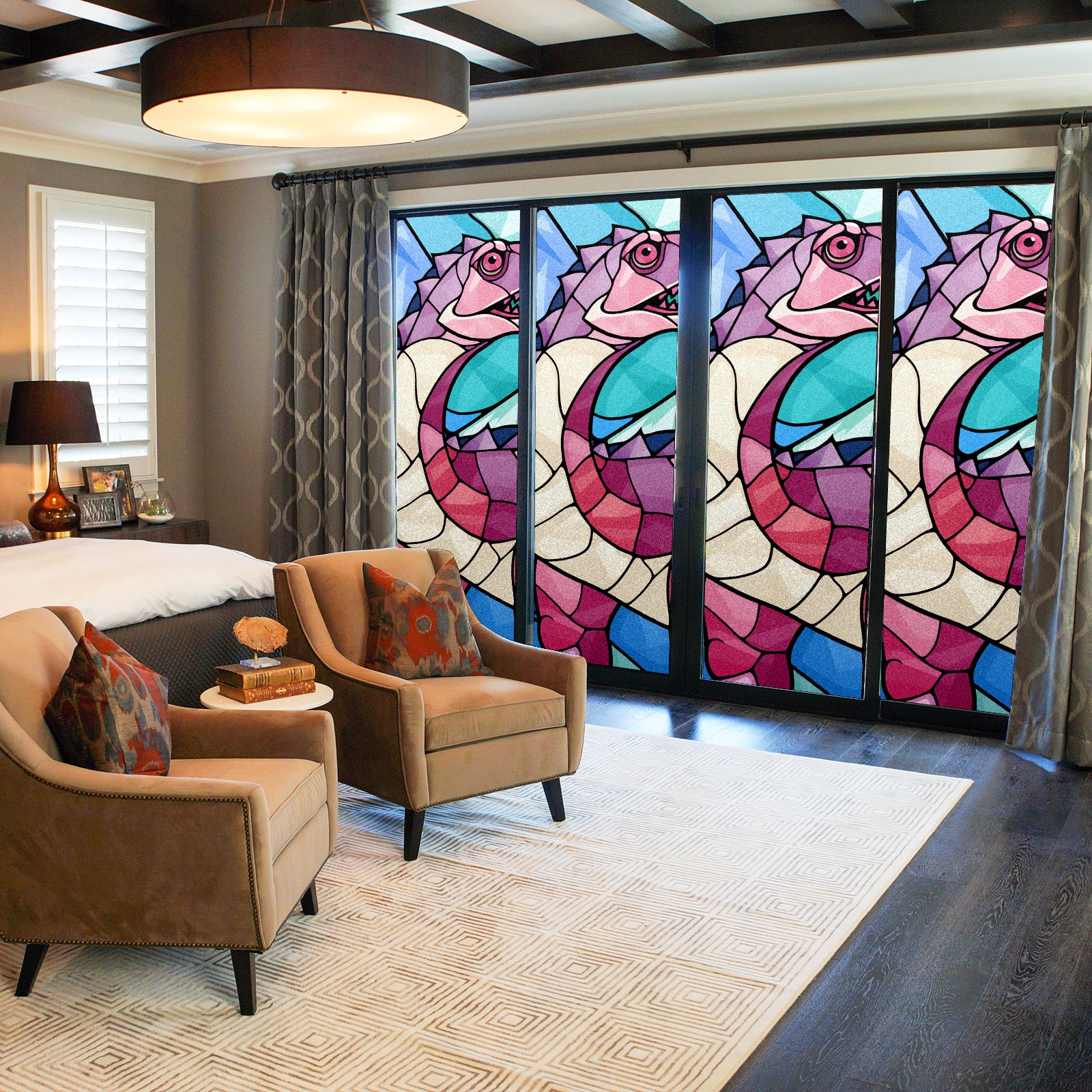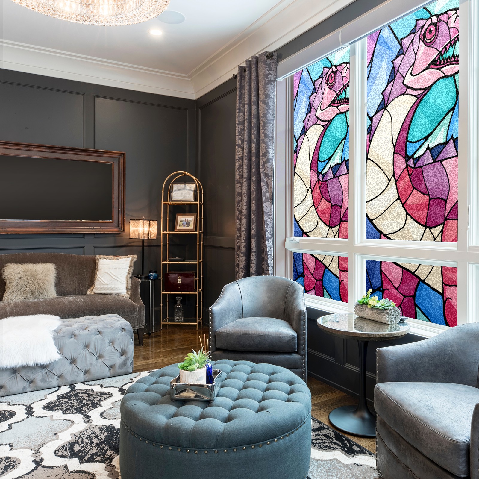 Static Cling Decorative Window Film Frosted Privacy Film Window Clings for Glass Windows No Glue Window Sticker for Bathroom Bedroom Office Stained Glass Dinosaur (3)