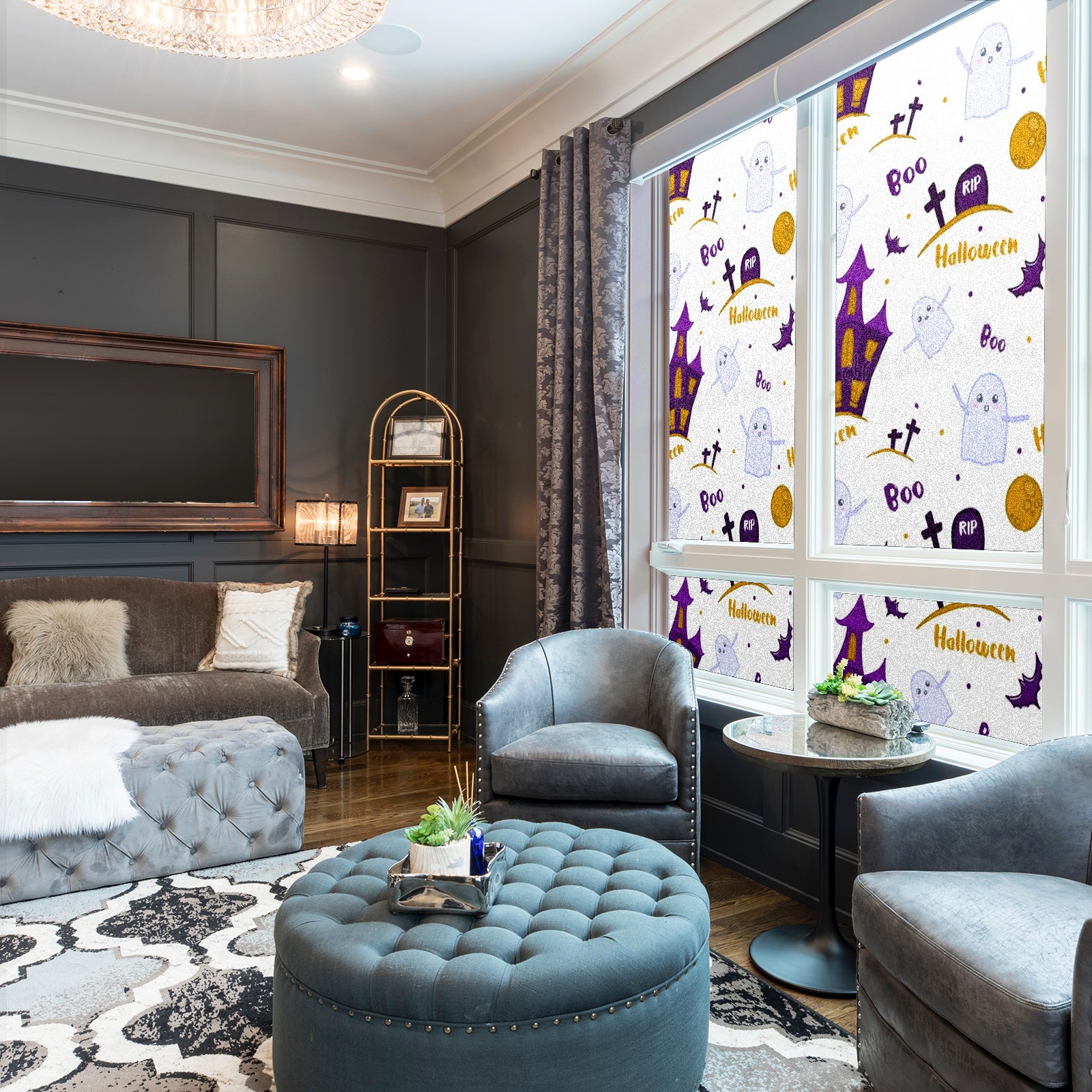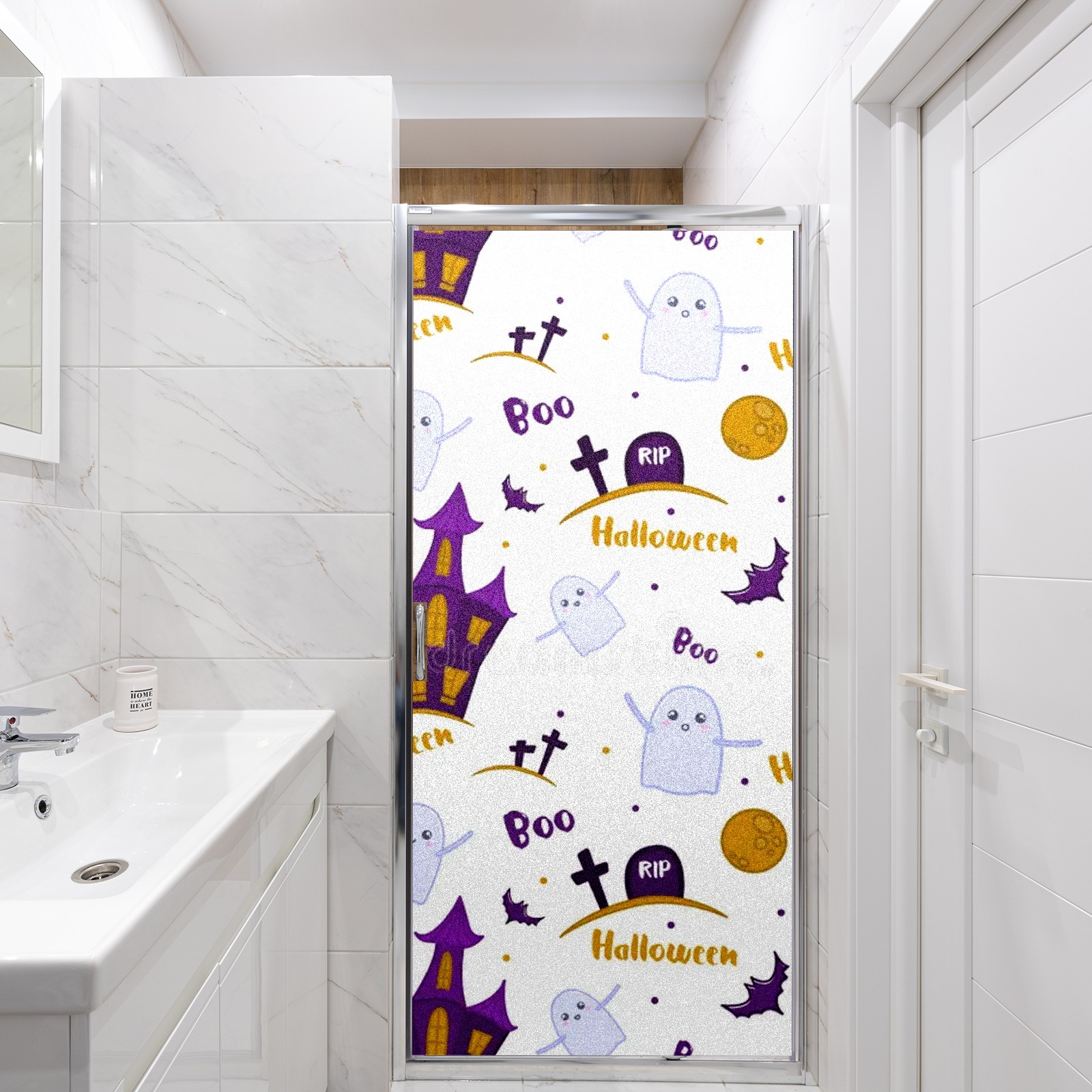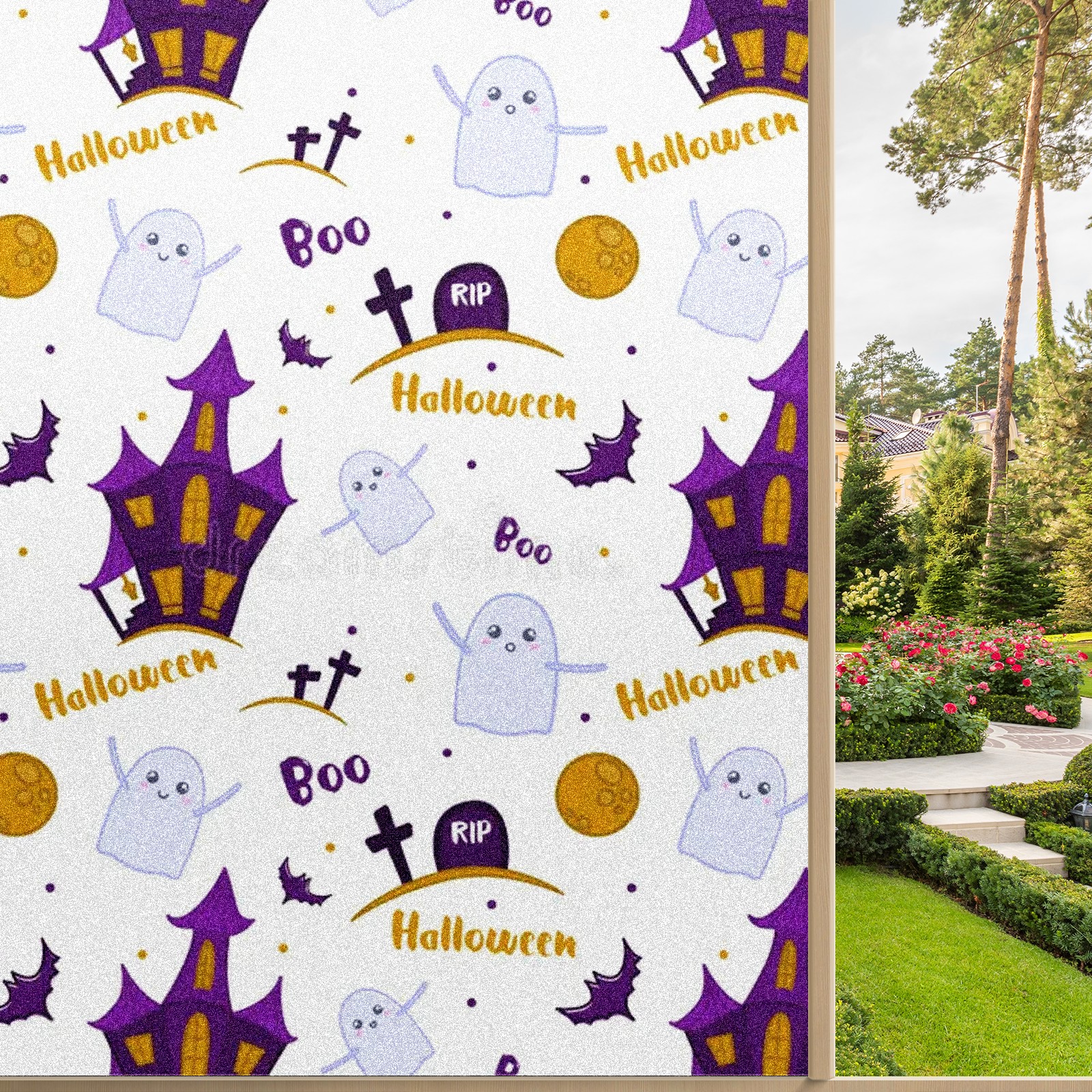 Static Cling Decorative Window Film Frosted Privacy Film Window Clings for Glass Windows No Glue Window Sticker for Bathroom Bedroom Office Ghosts Moon