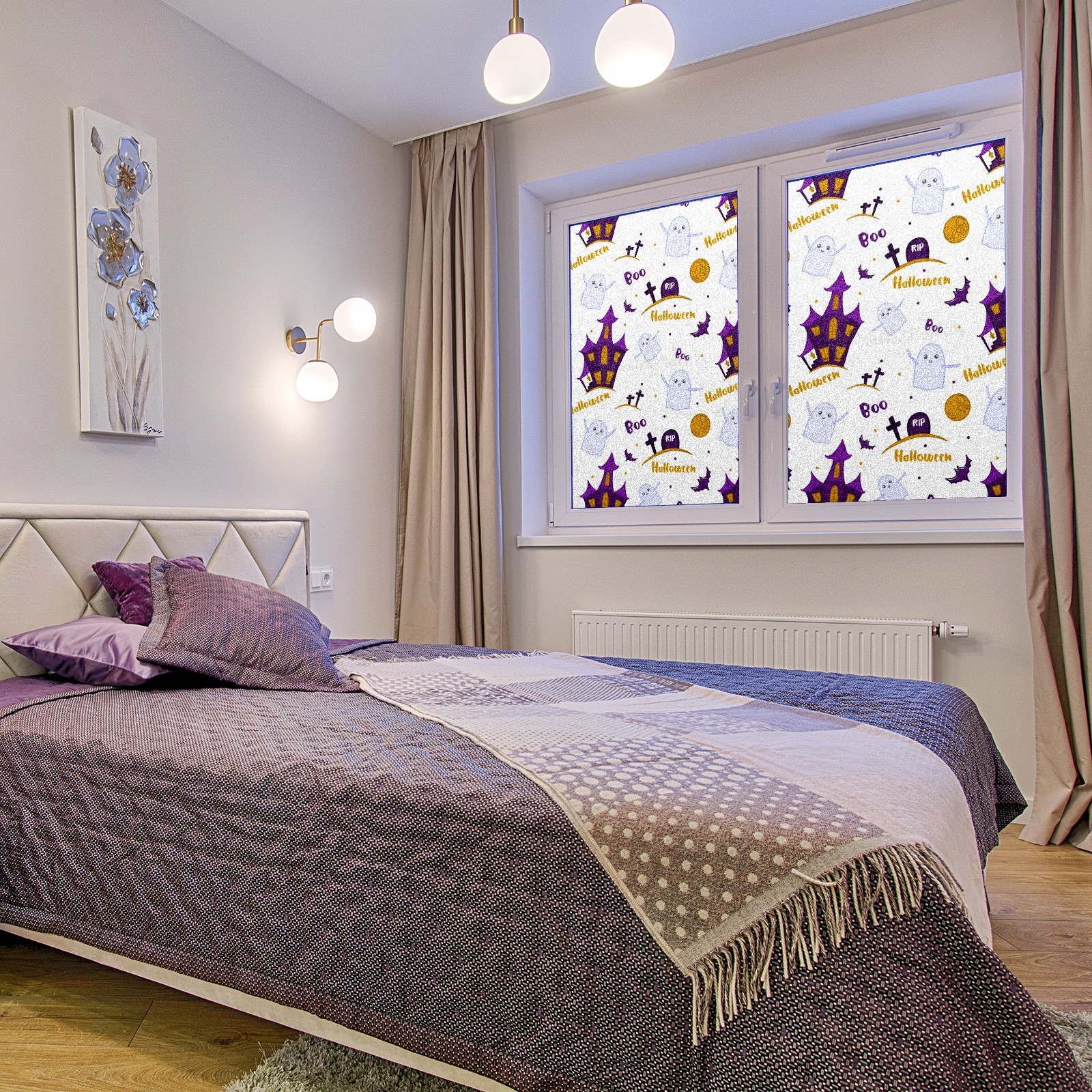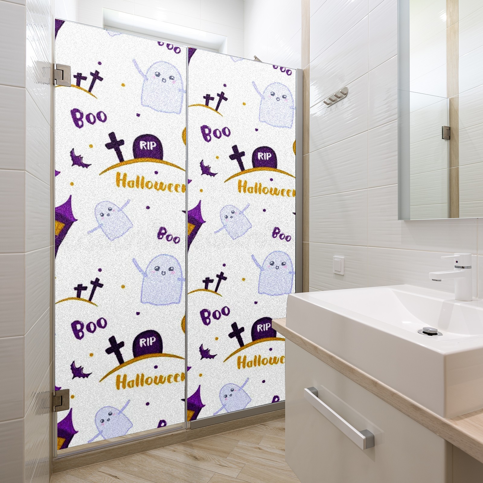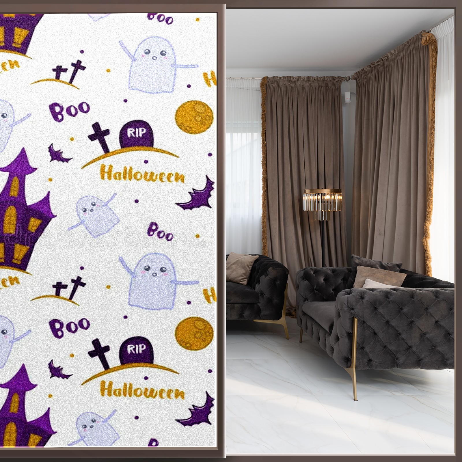 Static Cling Decorative Window Film Frosted Privacy Film Window Clings for Glass Windows No Glue Window Sticker for Bathroom Bedroom Office Ghosts Moon