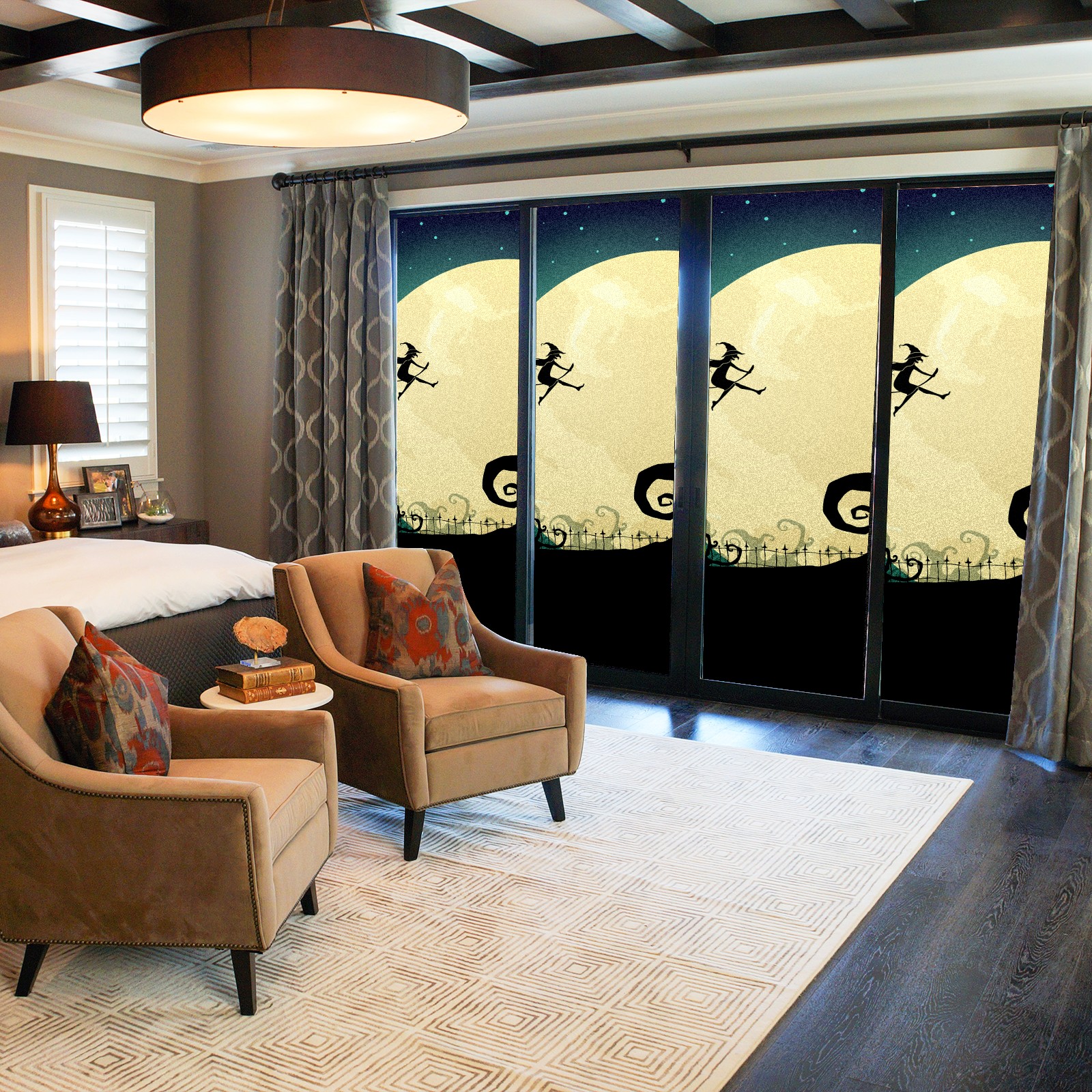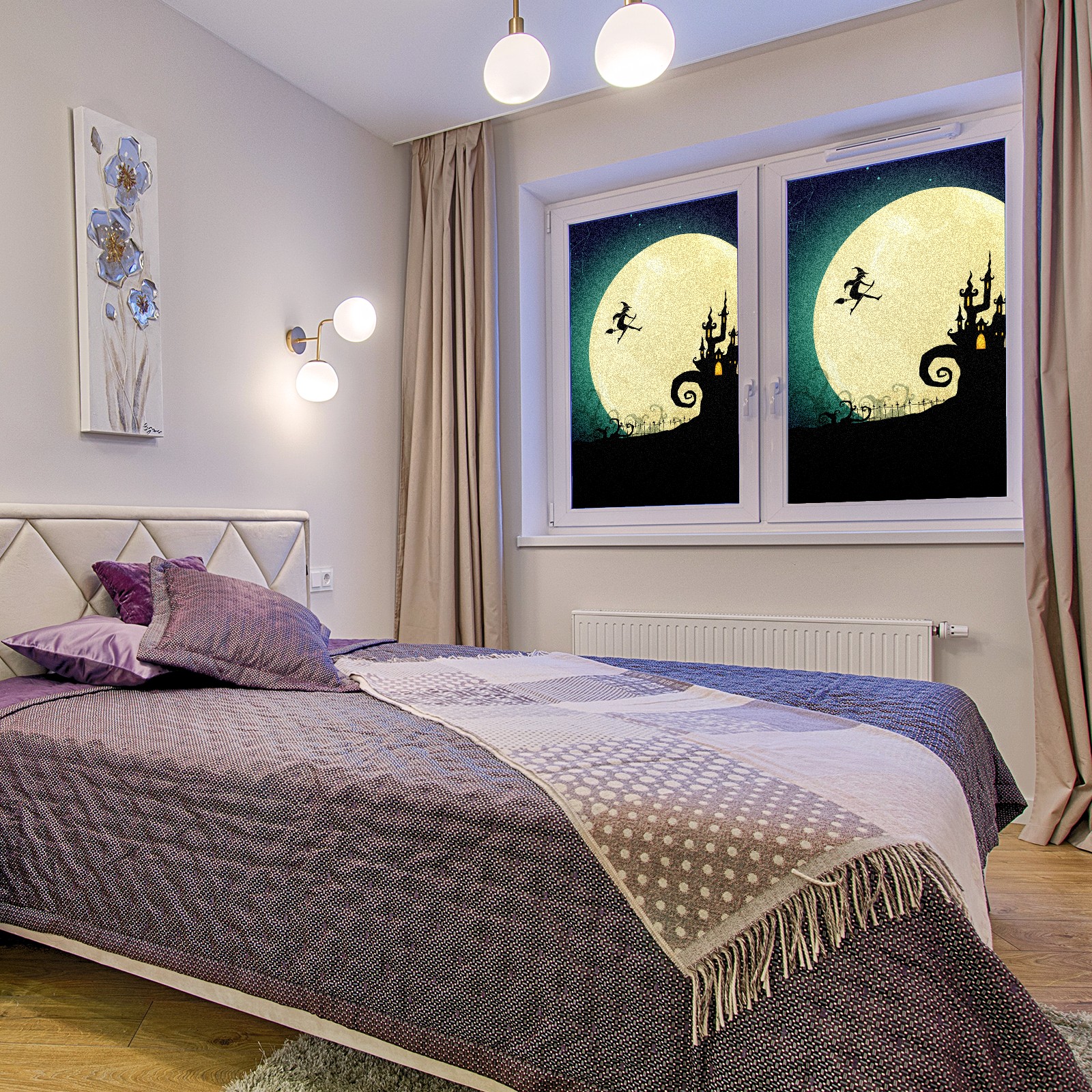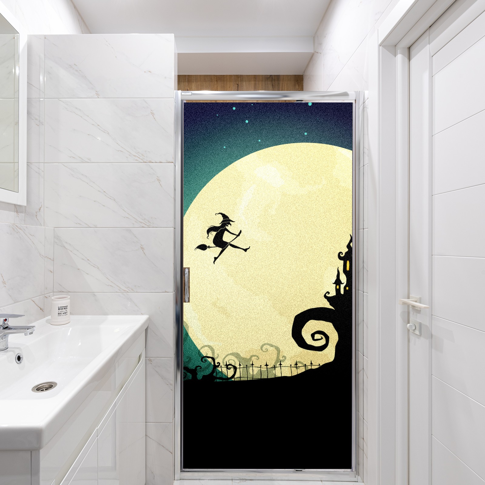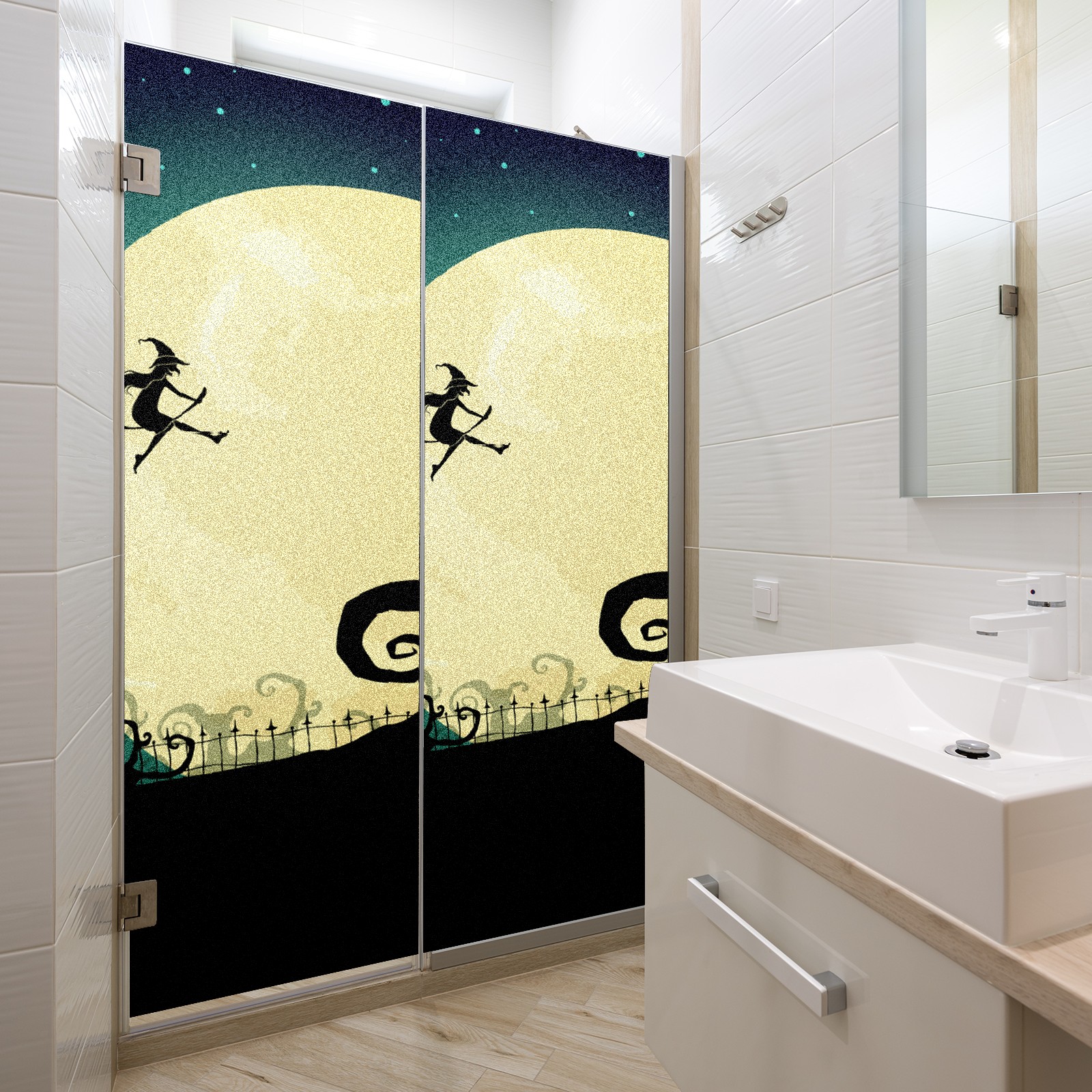 Static Cling Decorative Window Film Frosted Privacy Film Window Clings for Glass Windows No Glue Window Sticker for Bathroom Bedroom Office Witch On Moon Halloween