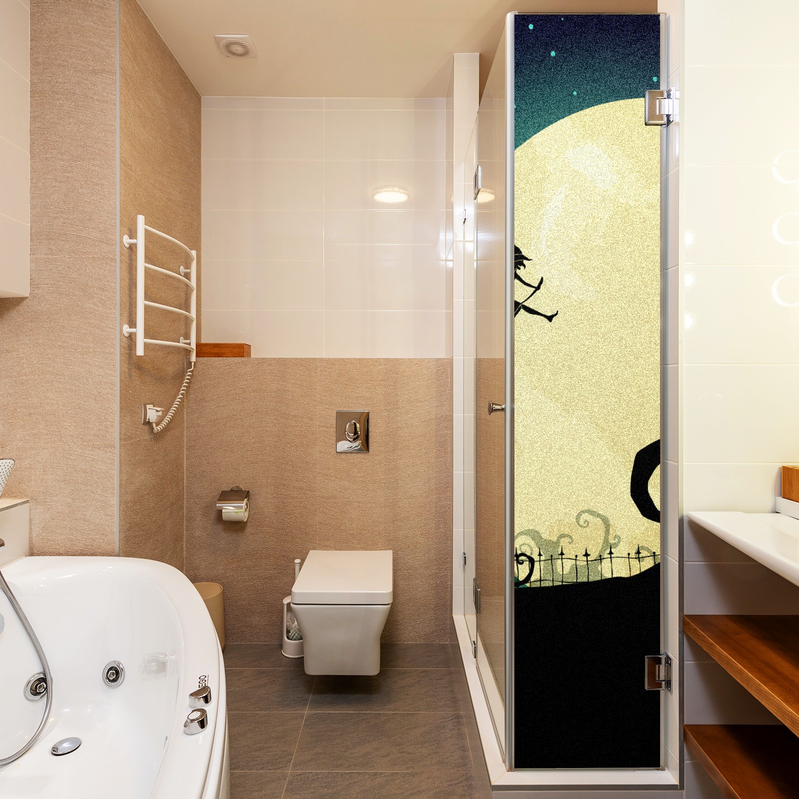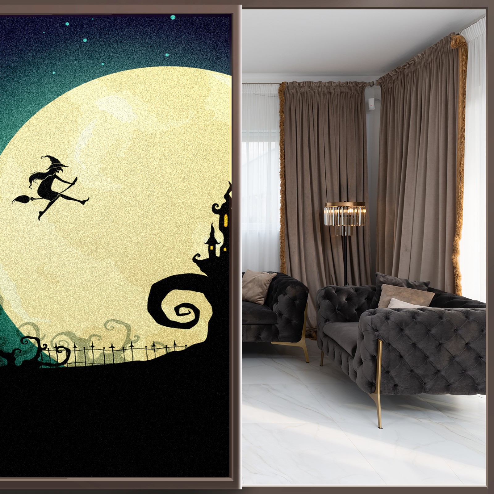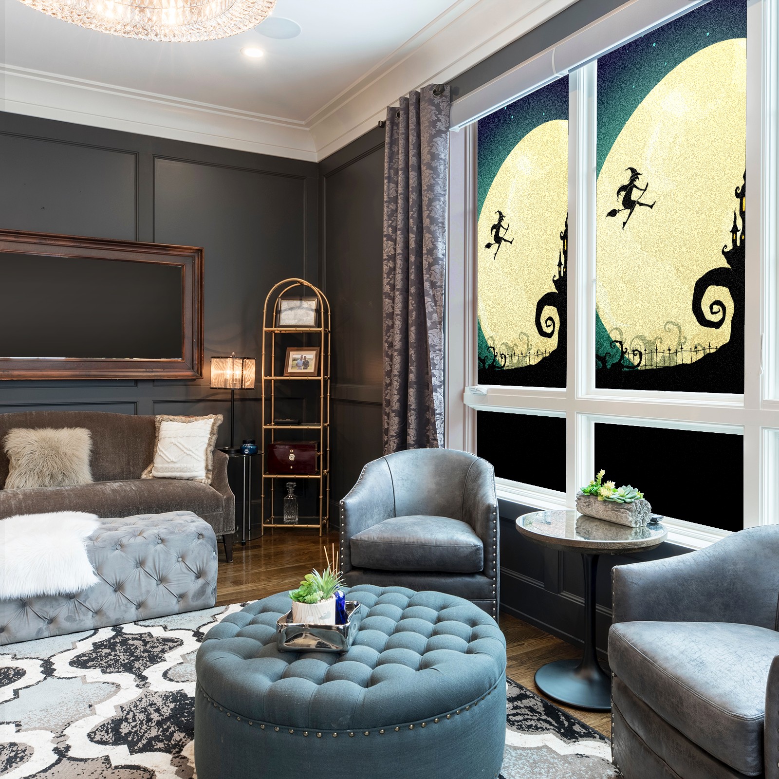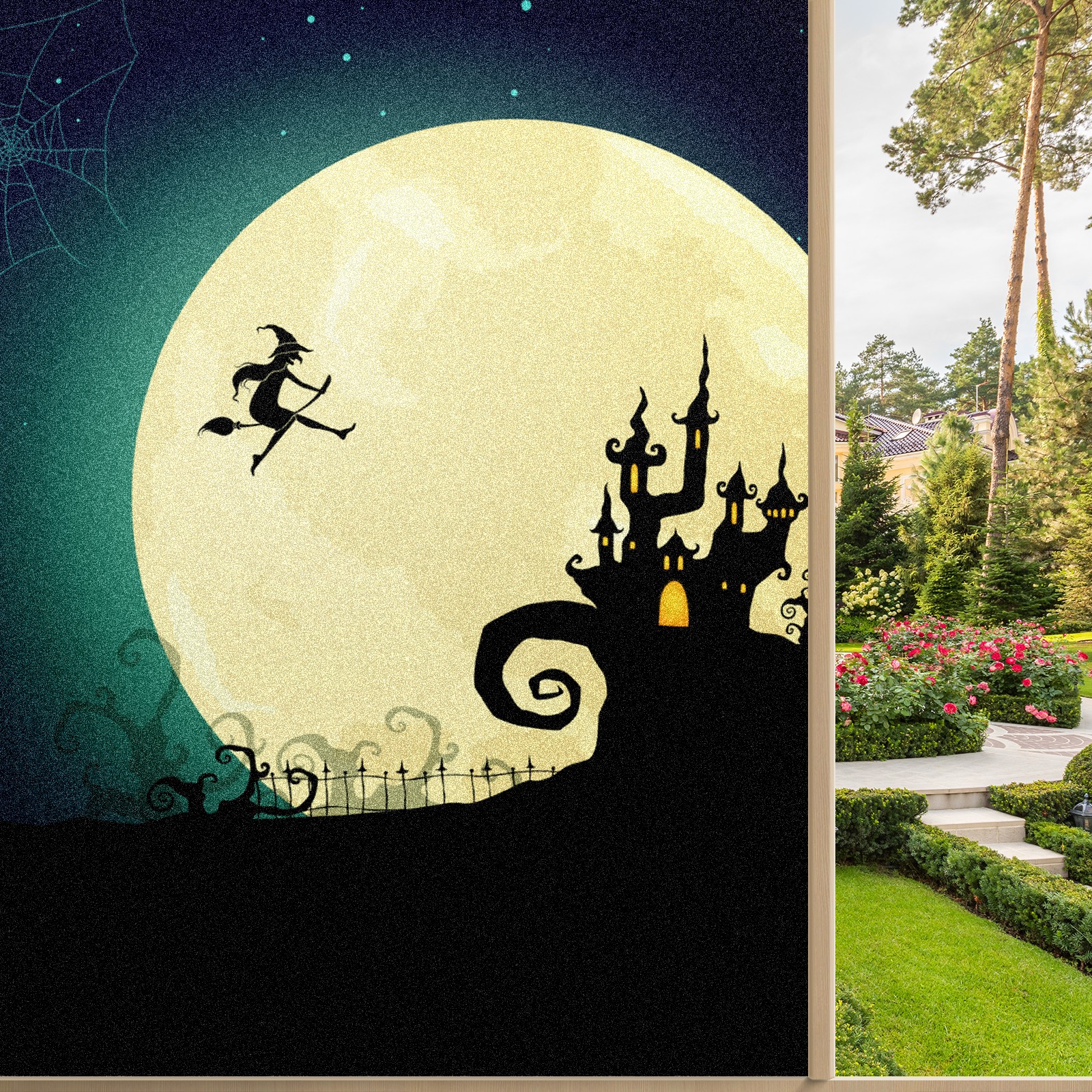 Static Cling Decorative Window Film Frosted Privacy Film Window Clings for Glass Windows No Glue Window Sticker for Bathroom Bedroom Office Witch On Moon Halloween