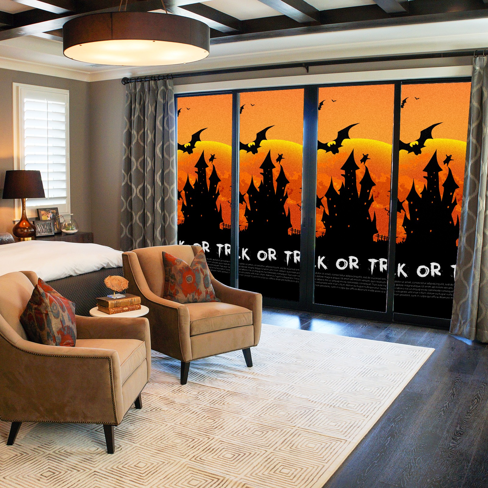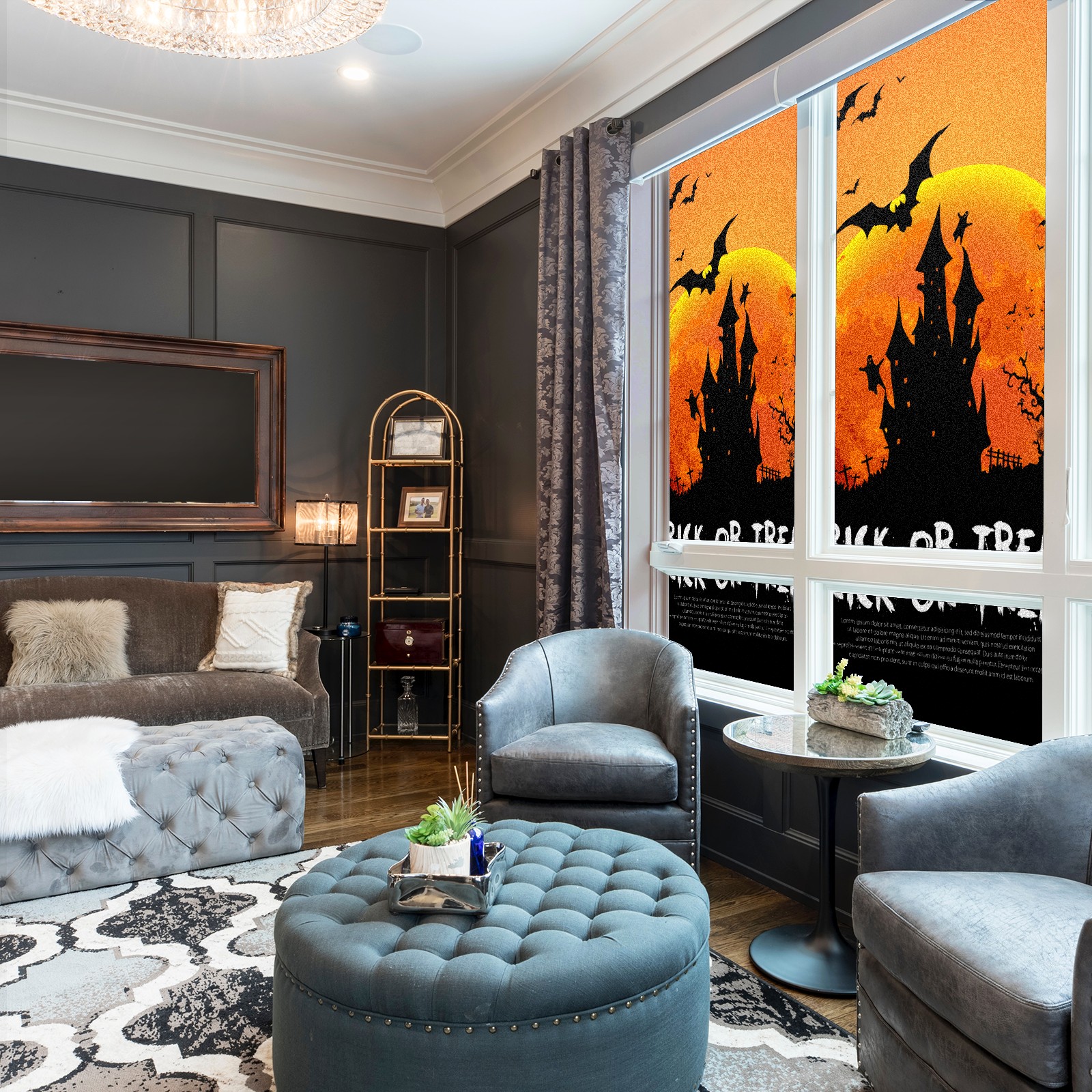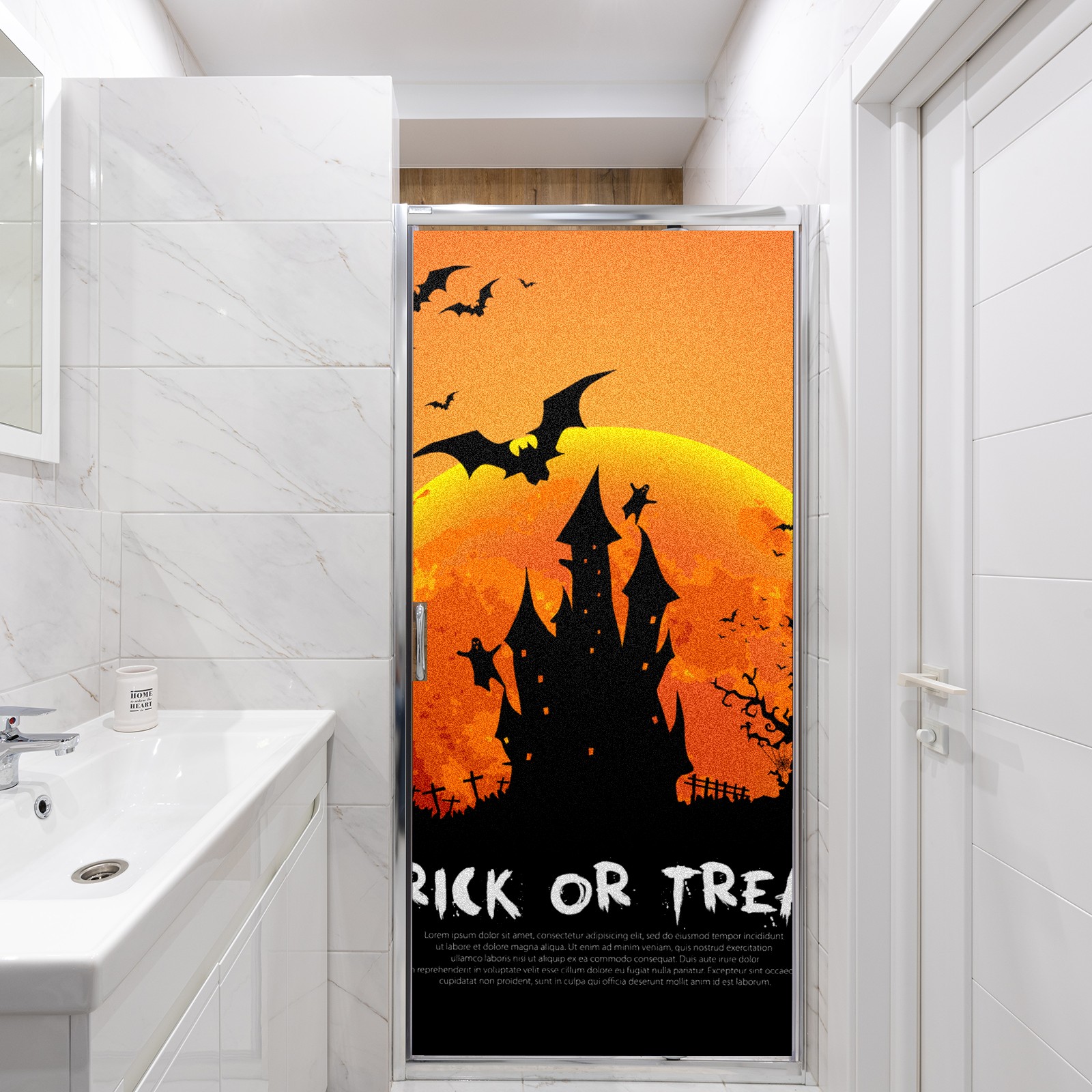 Static Cling Decorative Window Film Frosted Privacy Film Window Clings for Glass Windows No Glue Window Sticker for Bathroom Bedroom Office Halloween Moon Castle