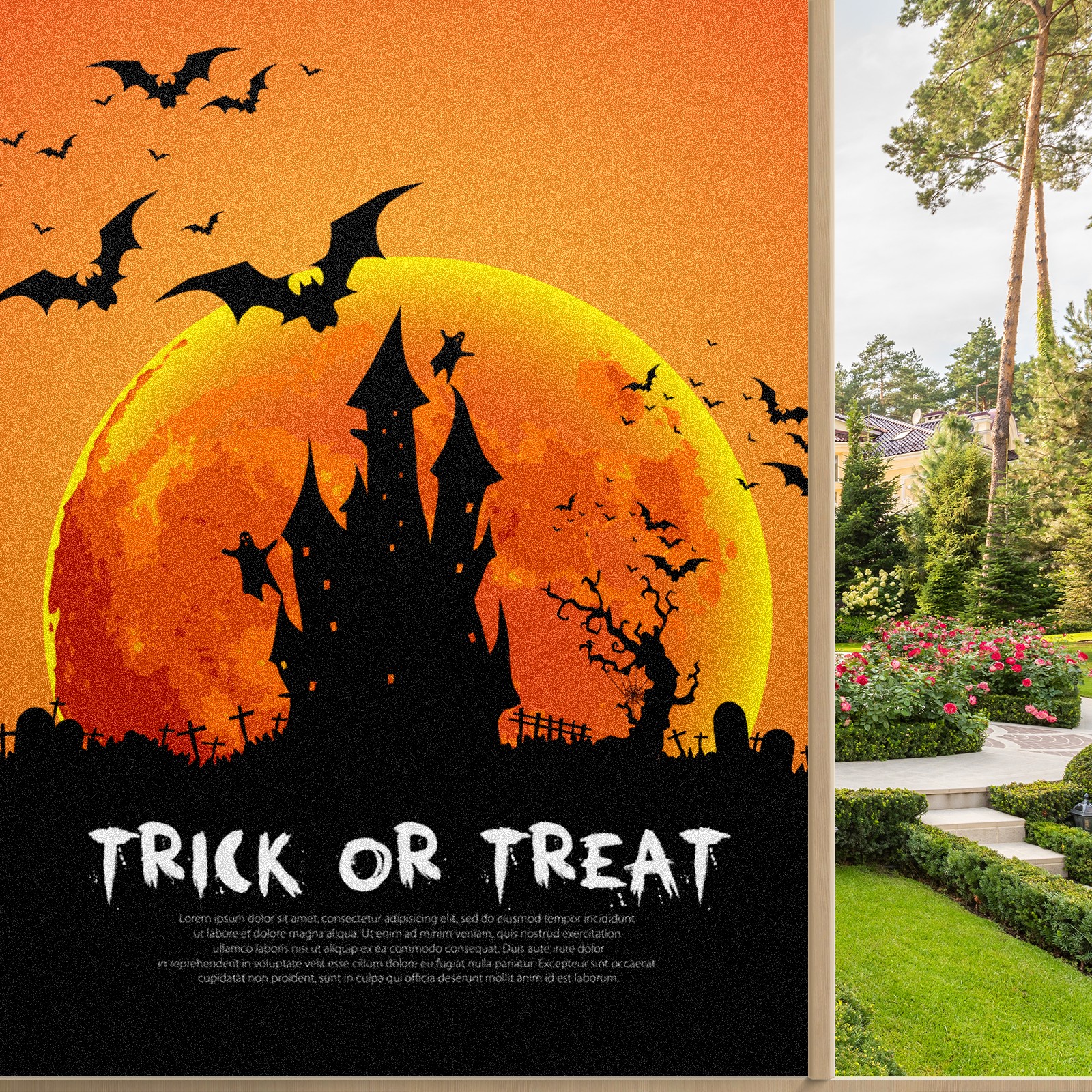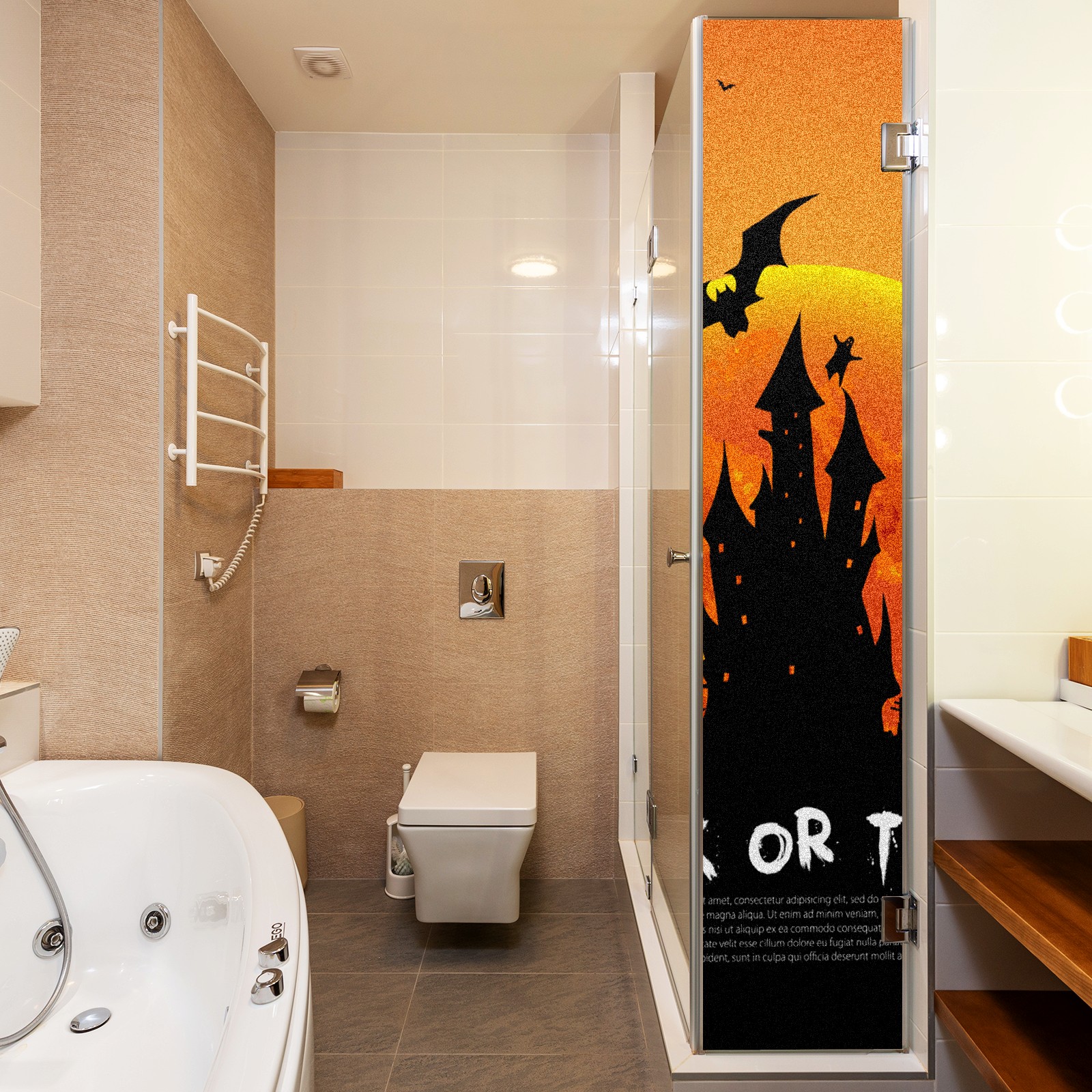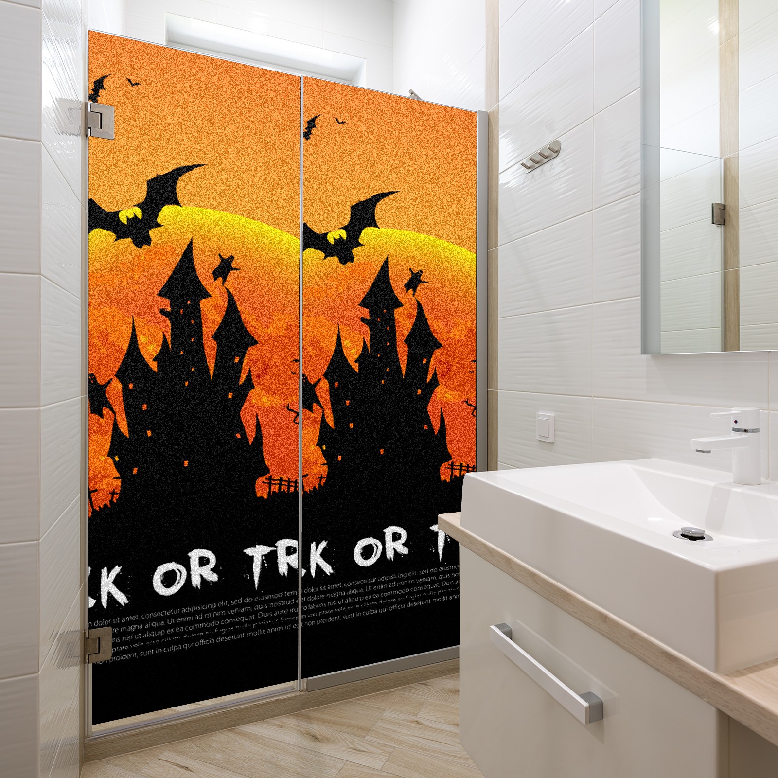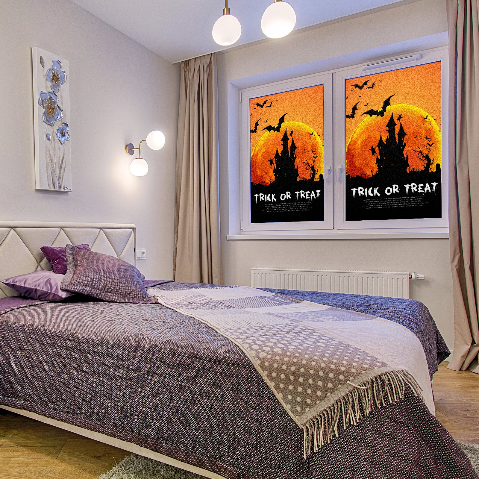 Static Cling Decorative Window Film Frosted Privacy Film Window Clings for Glass Windows No Glue Window Sticker for Bathroom Bedroom Office Halloween Moon Castle