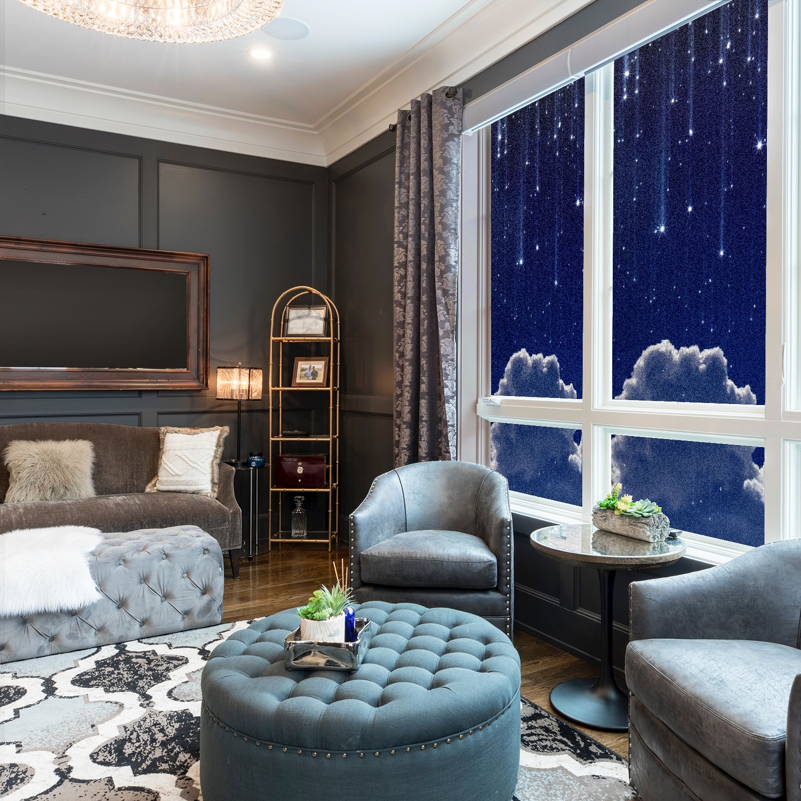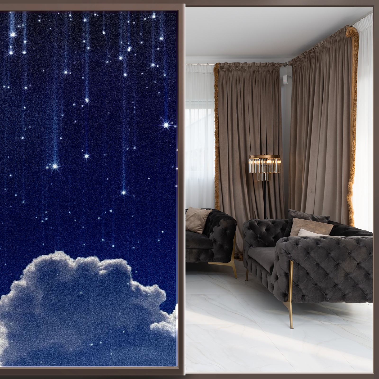 Static Cling Decorative Window Film Frosted Privacy Film Window Clings for Glass Windows No Glue Window Sticker for Bathroom Bedroom Office Sky Moon Stars