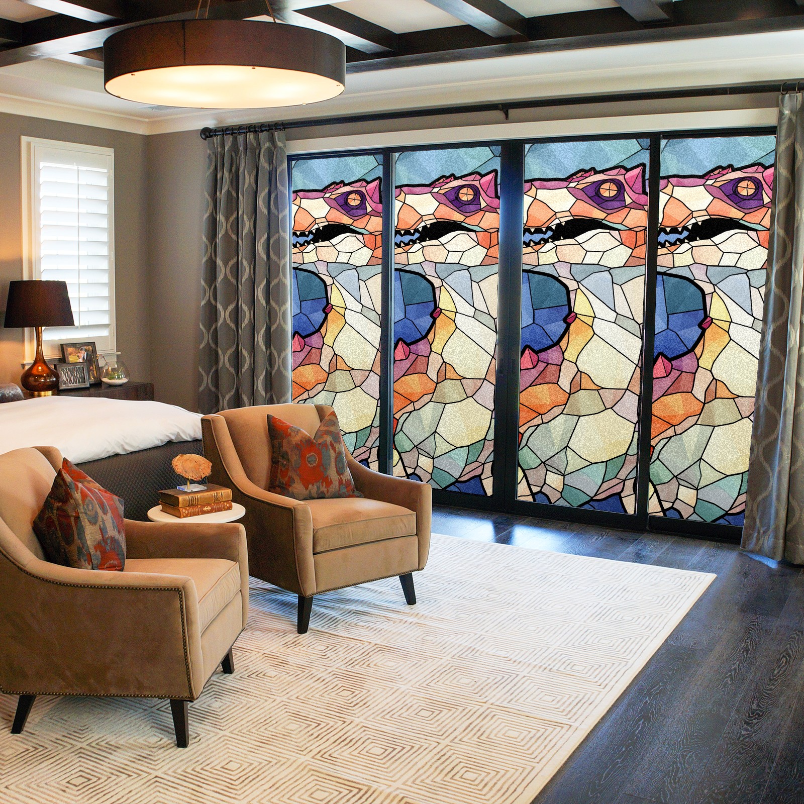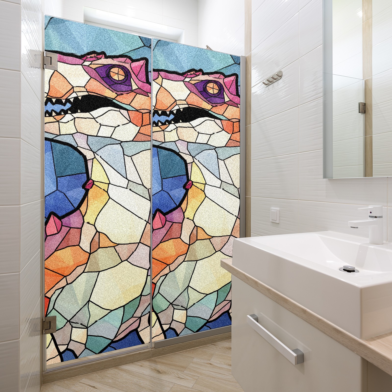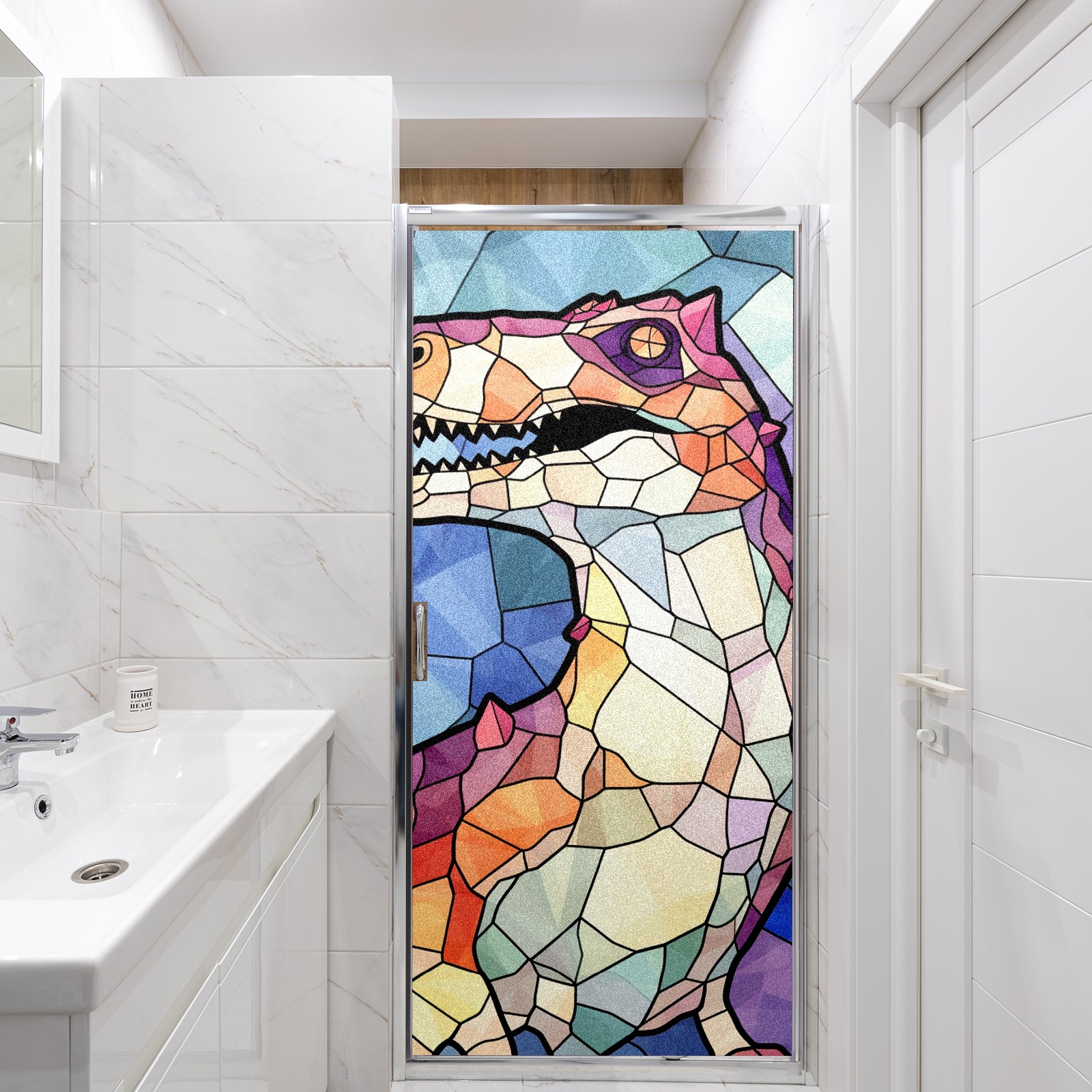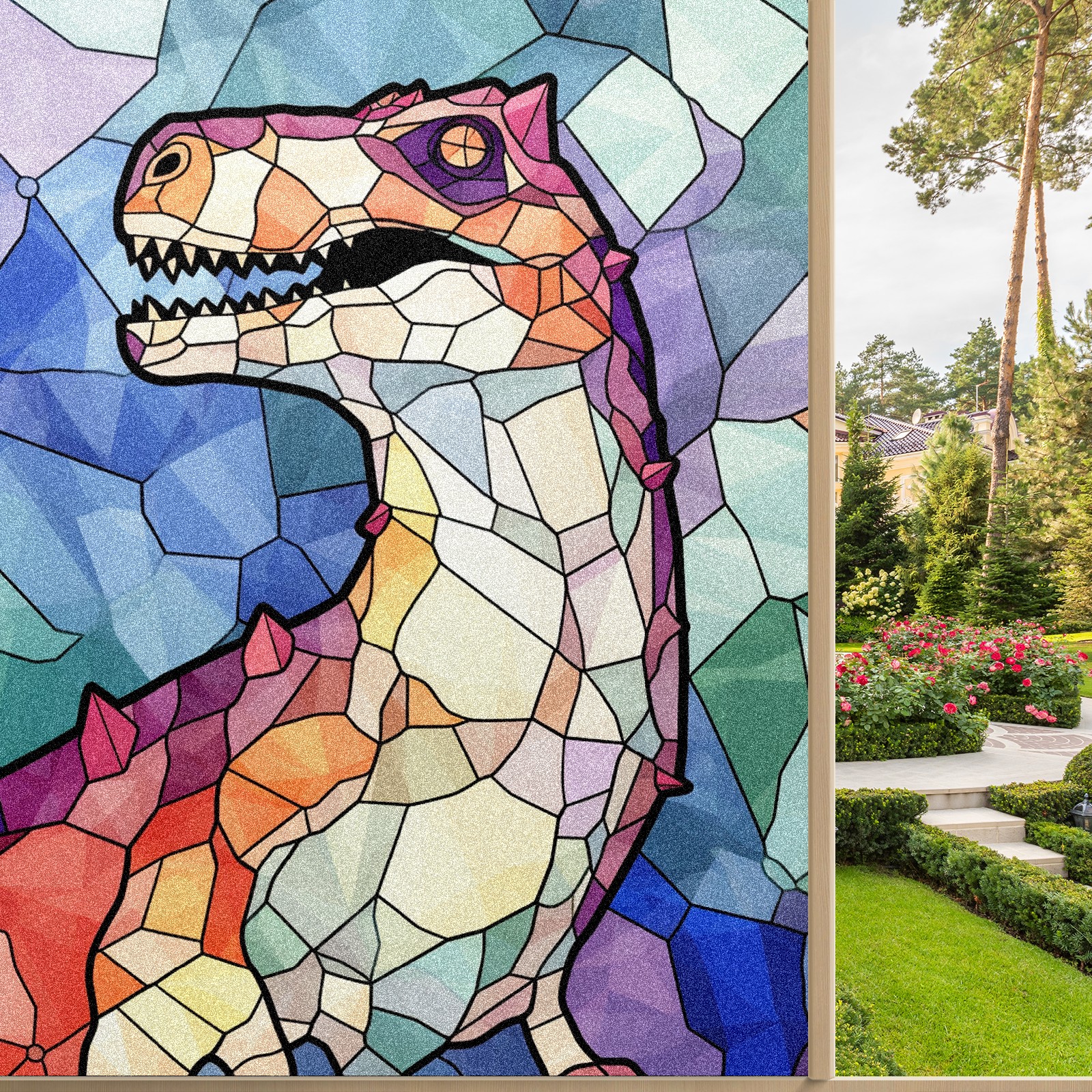 Static Cling Decorative Window Film Frosted Privacy Film Window Clings for Glass Windows No Glue Window Sticker for Bathroom Bedroom Office Stained Glass Dinosaur (8)