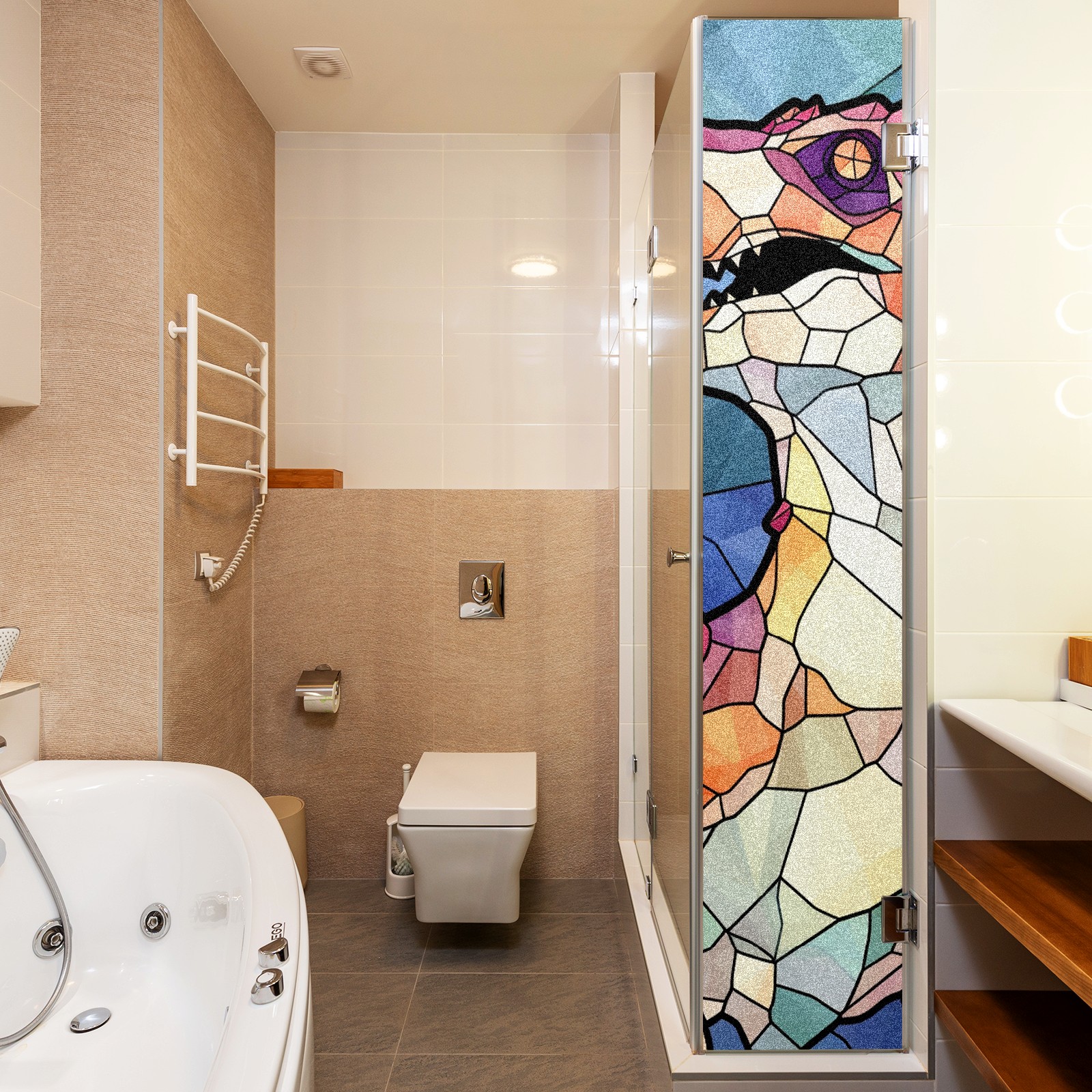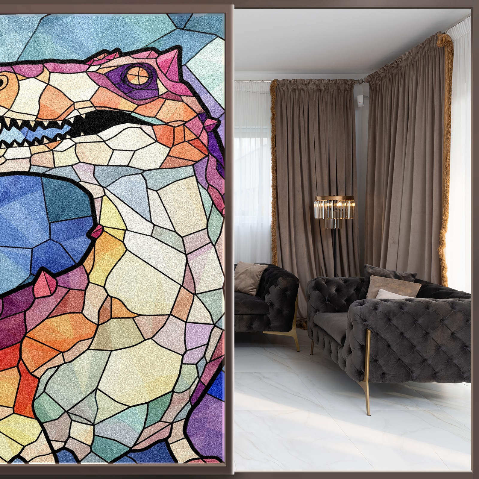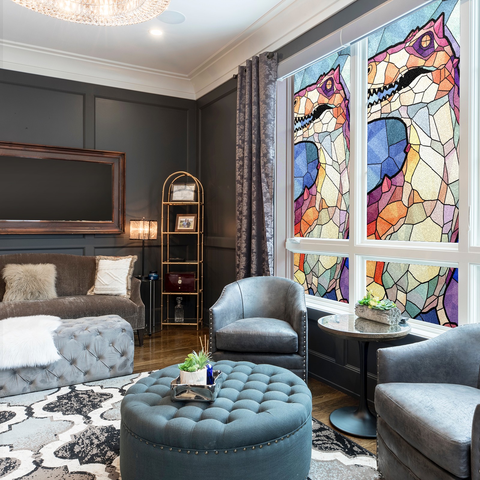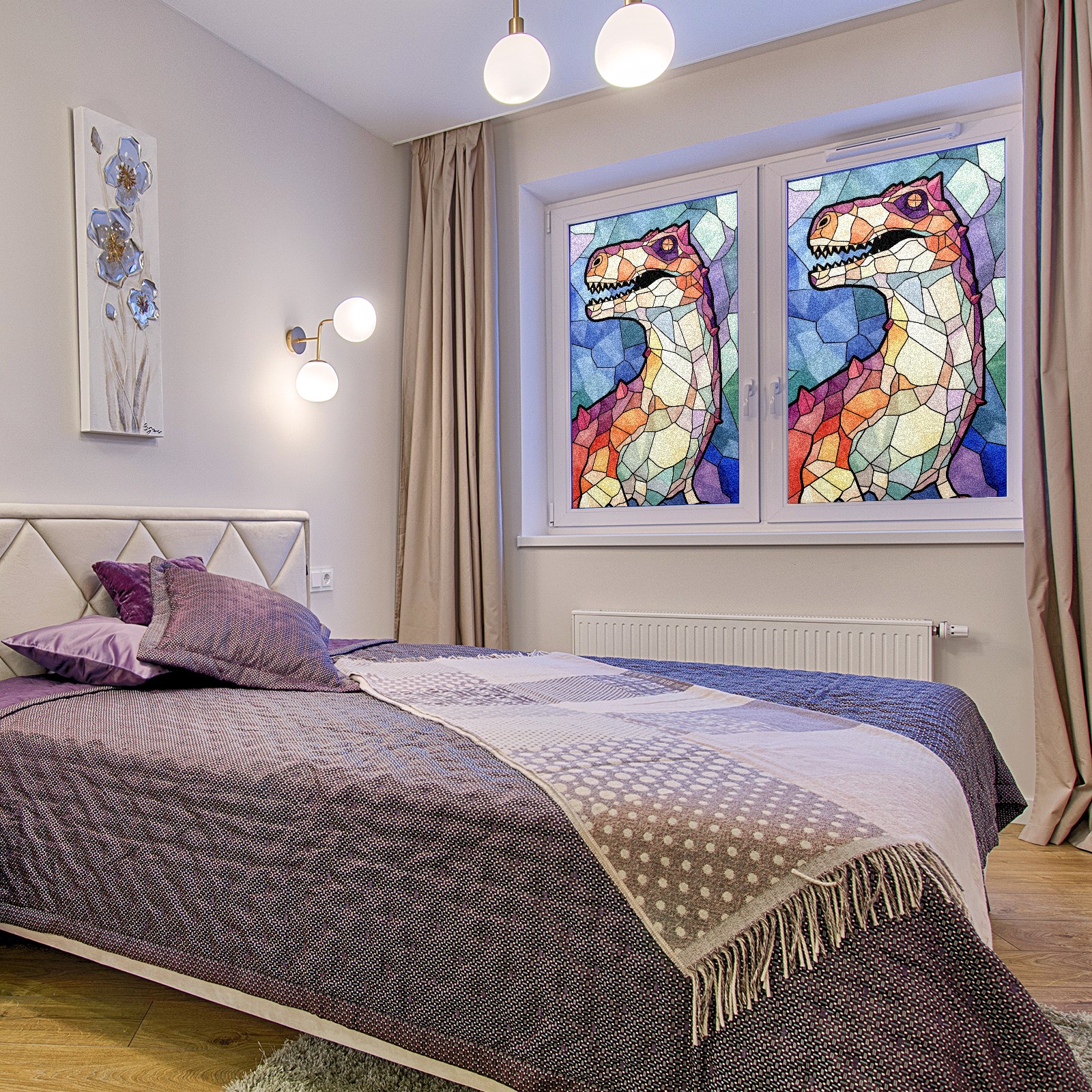 Static Cling Decorative Window Film Frosted Privacy Film Window Clings for Glass Windows No Glue Window Sticker for Bathroom Bedroom Office Stained Glass Dinosaur (8)