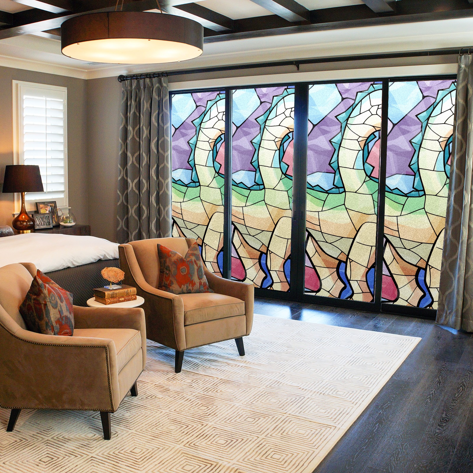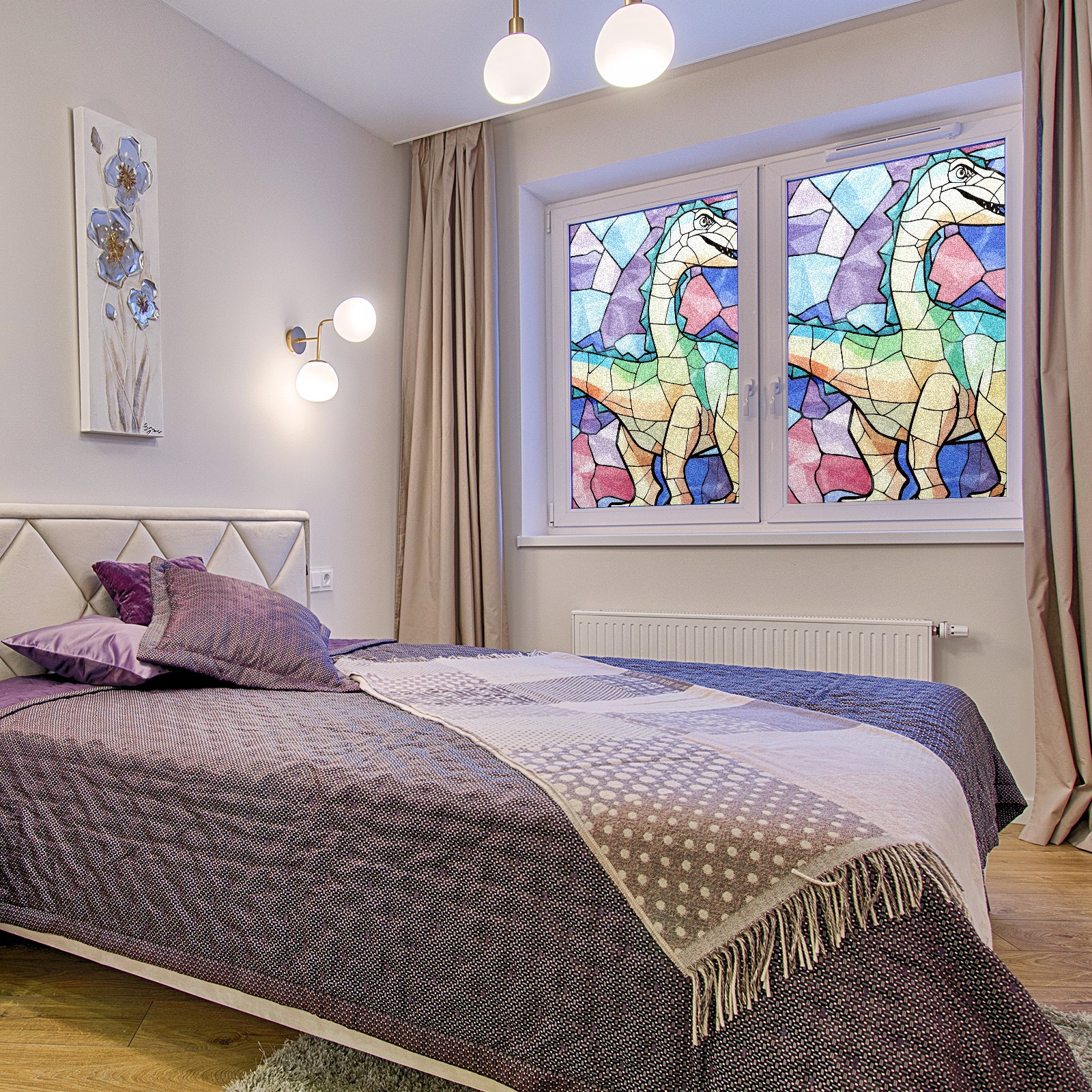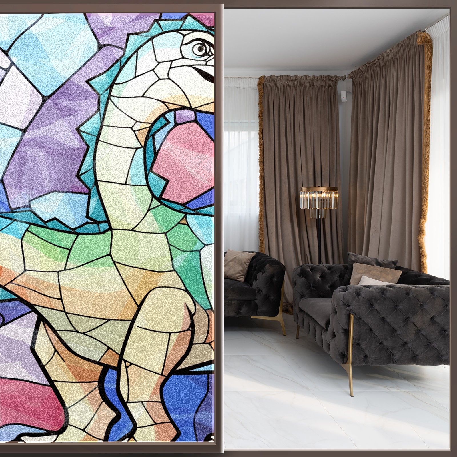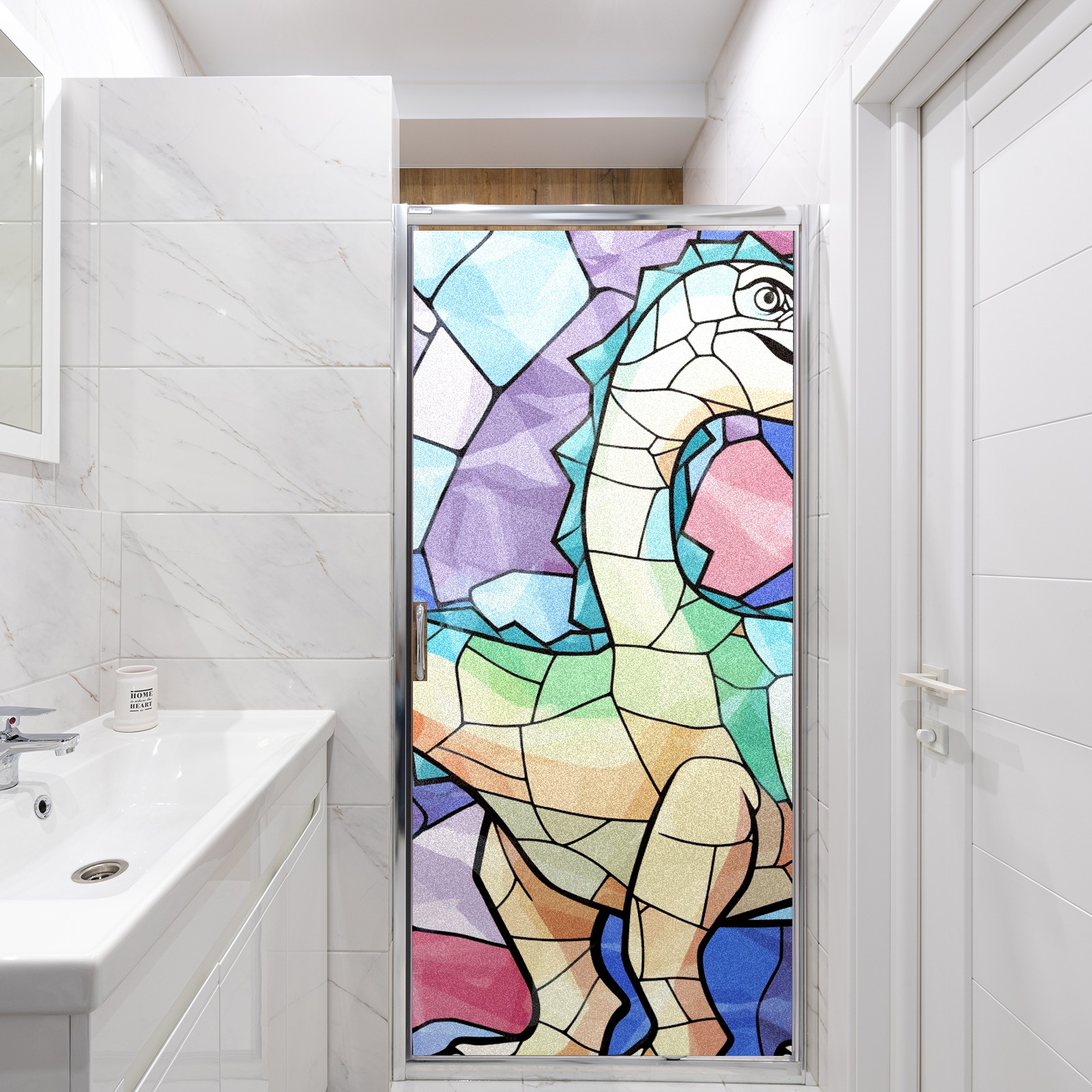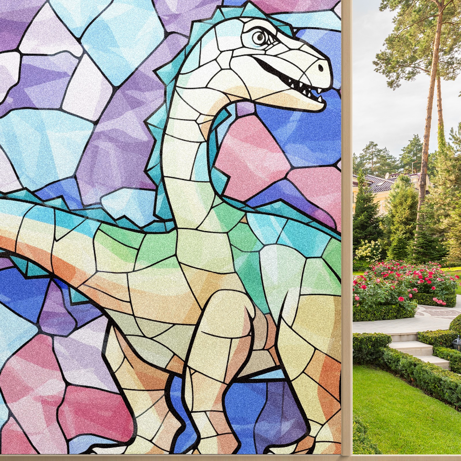 Static Cling Decorative Window Film Frosted Privacy Film Window Clings for Glass Windows No Glue Window Sticker for Bathroom Bedroom Office Stained Glass Dinosaur (6)