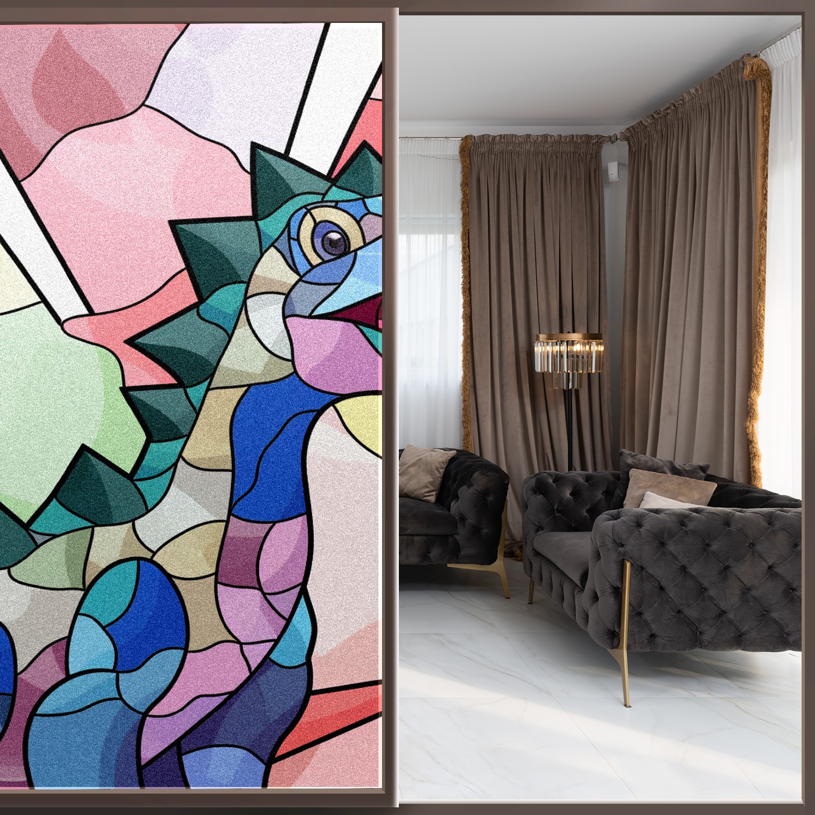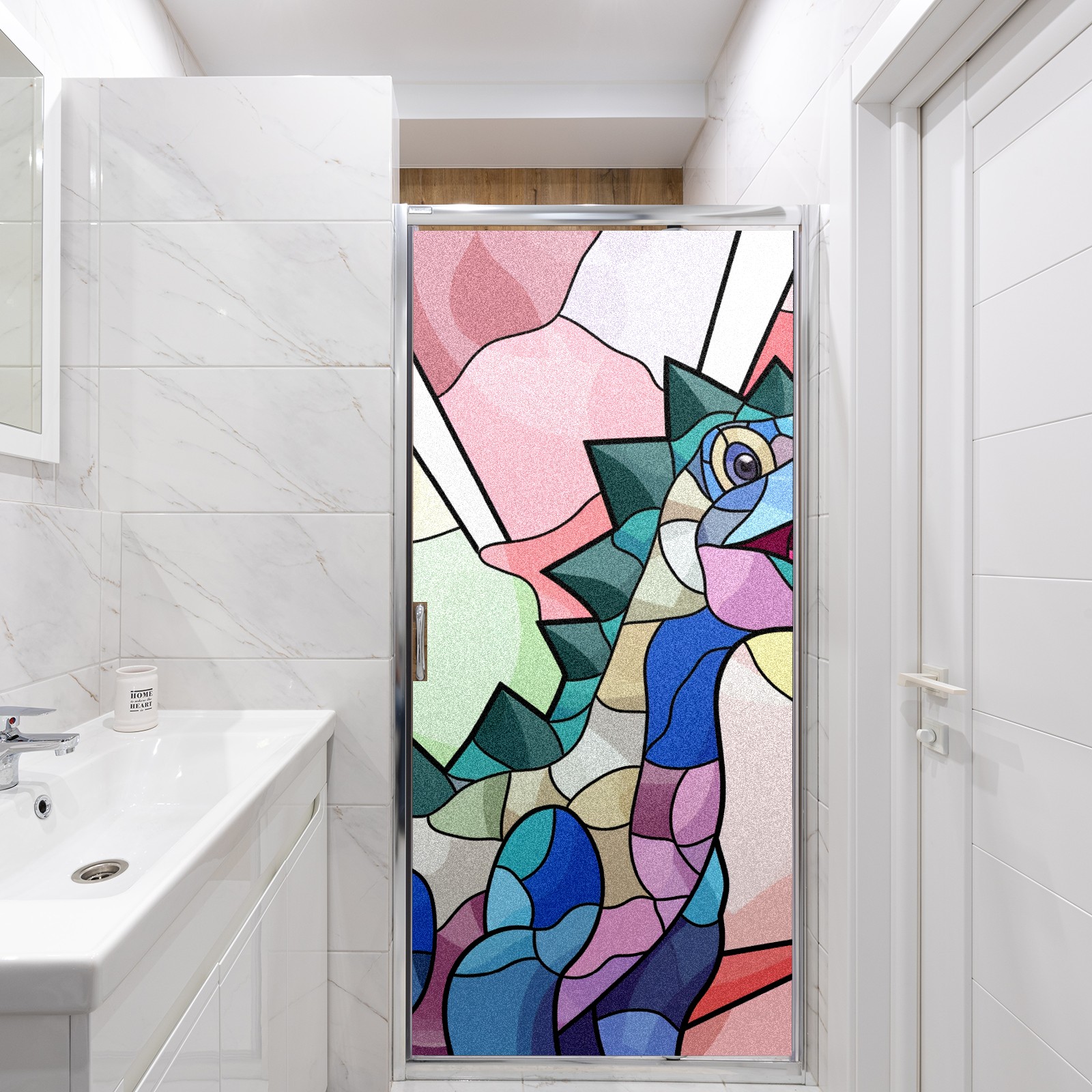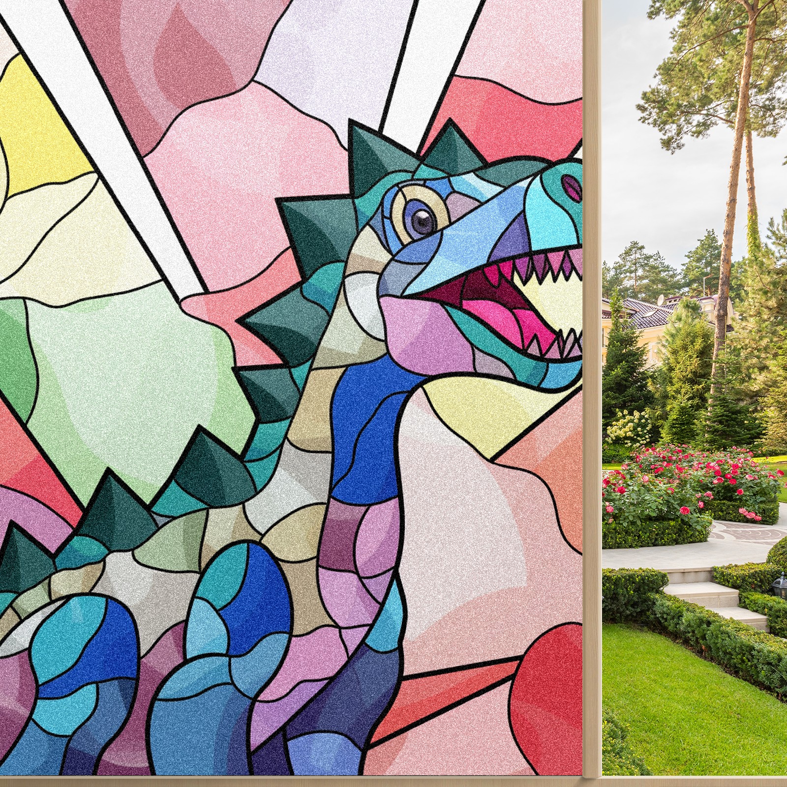 Static Cling Decorative Window Film Frosted Privacy Film Window Clings for Glass Windows No Glue Window Sticker for Bathroom Bedroom Office Stained Glass Dinosaur (7)
