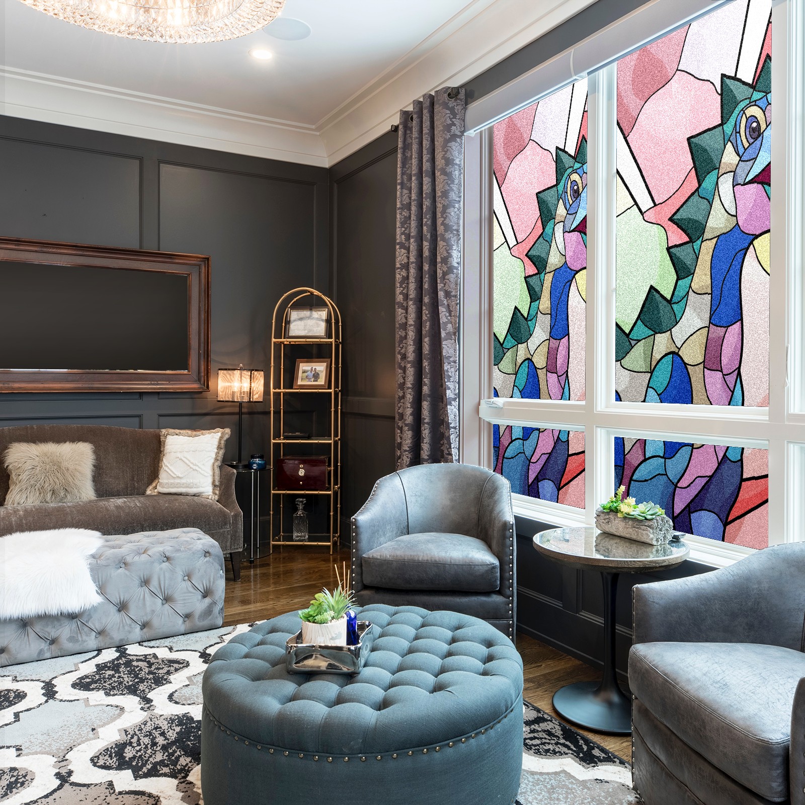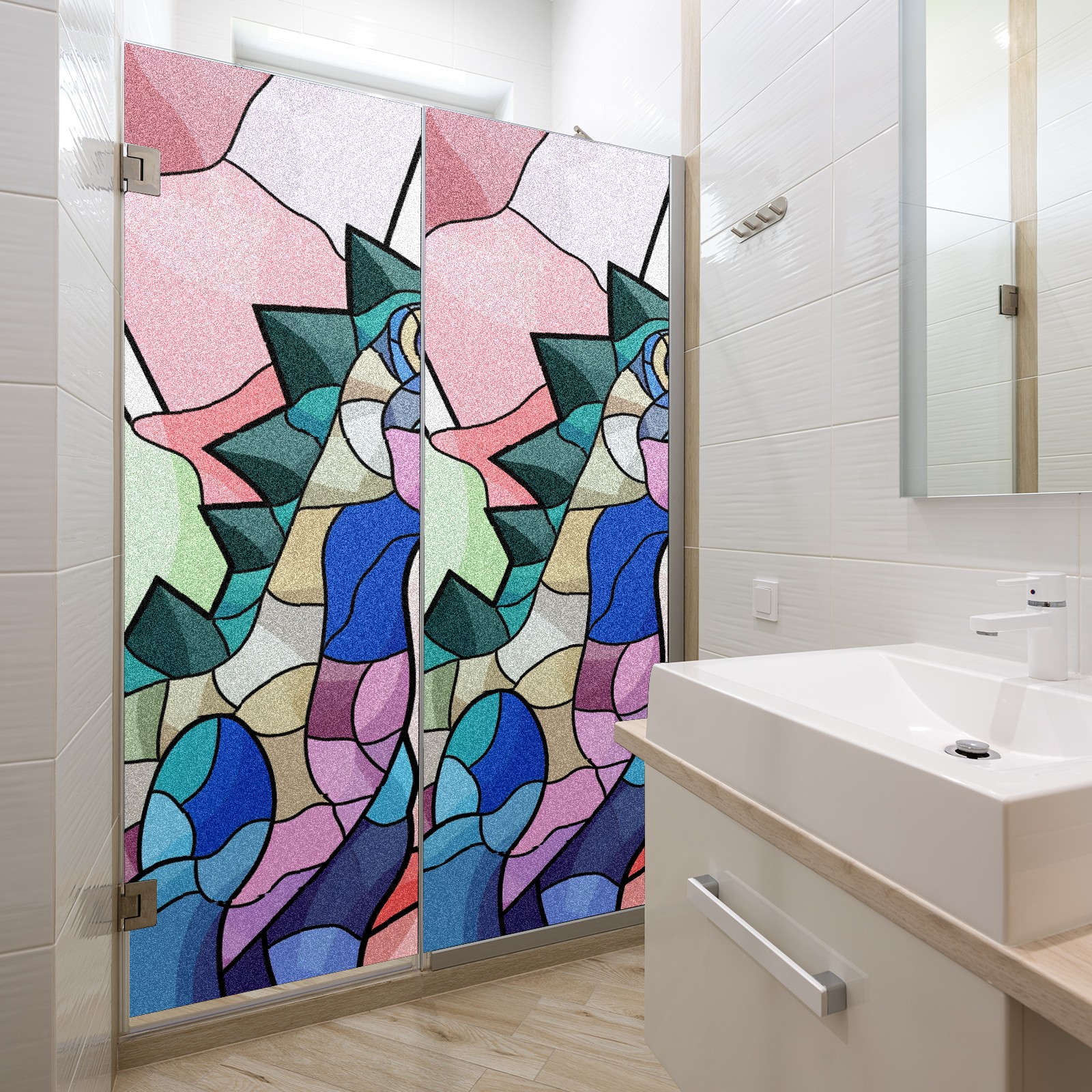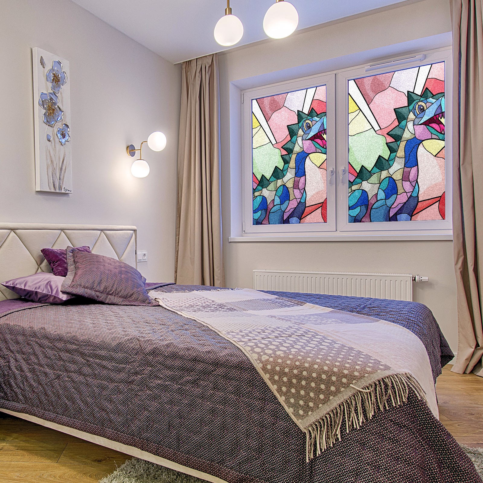 Static Cling Decorative Window Film Frosted Privacy Film Window Clings for Glass Windows No Glue Window Sticker for Bathroom Bedroom Office Stained Glass Dinosaur (7)