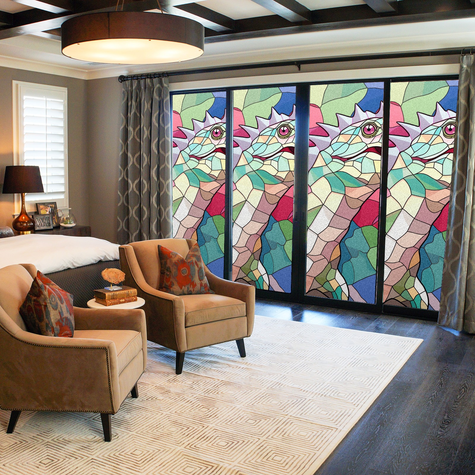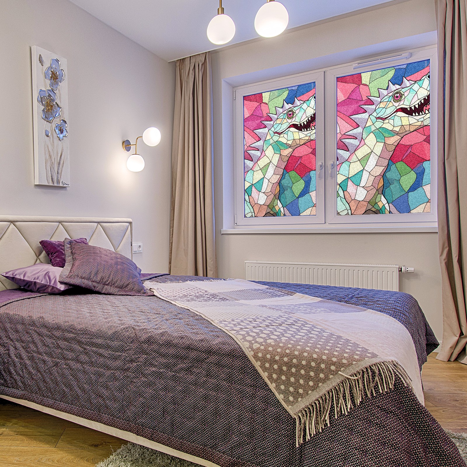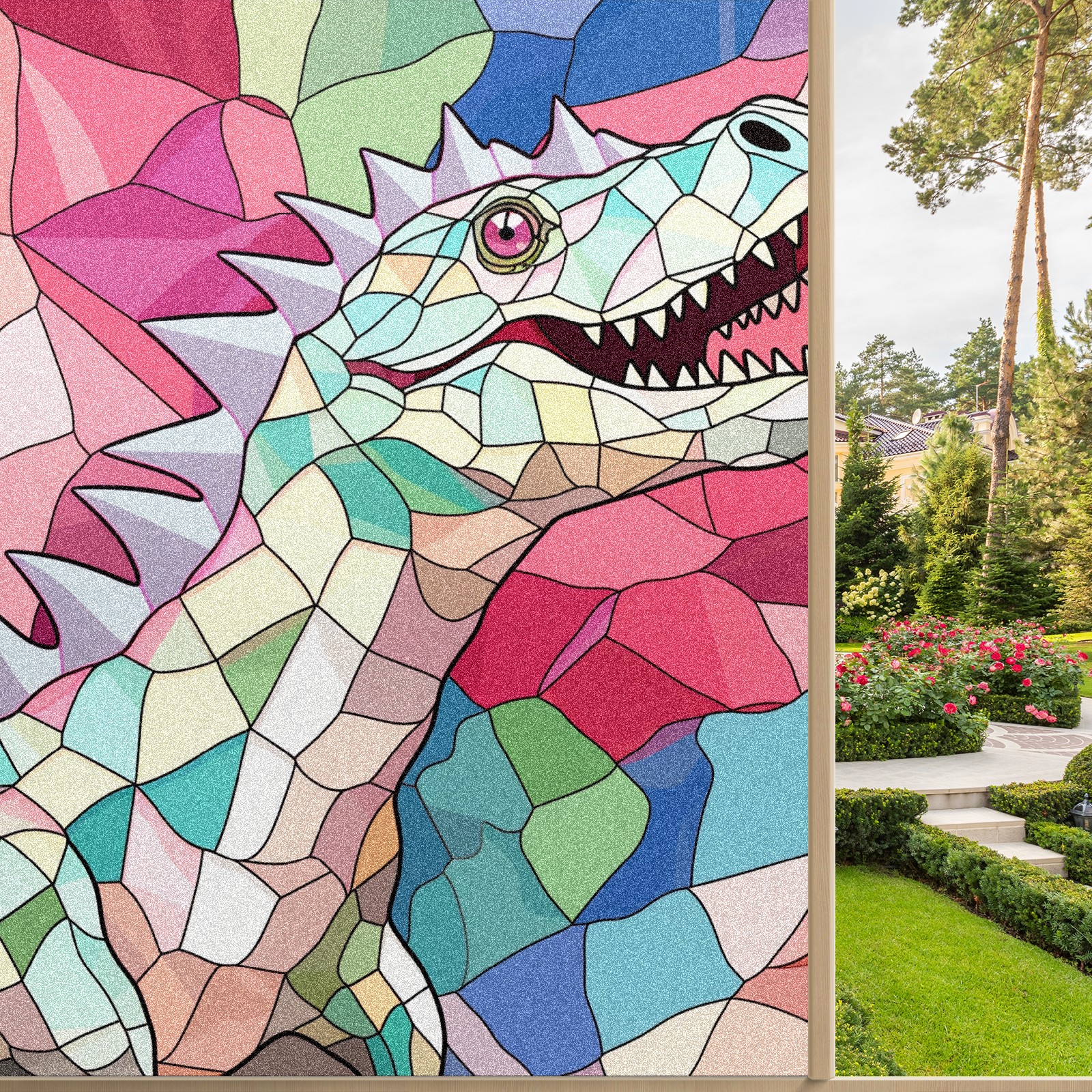 Static Cling Decorative Window Film Frosted Privacy Film Window Clings for Glass Windows No Glue Window Sticker for Bathroom Bedroom Office Stained Glass Dinosaur (1)