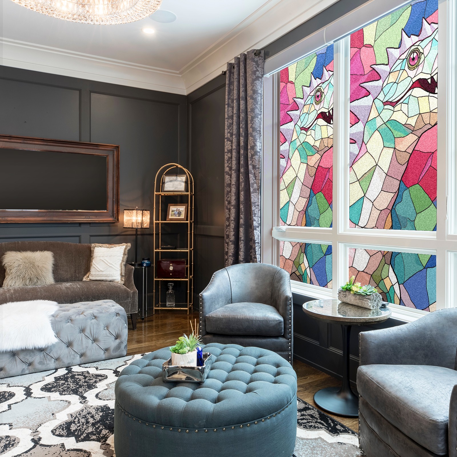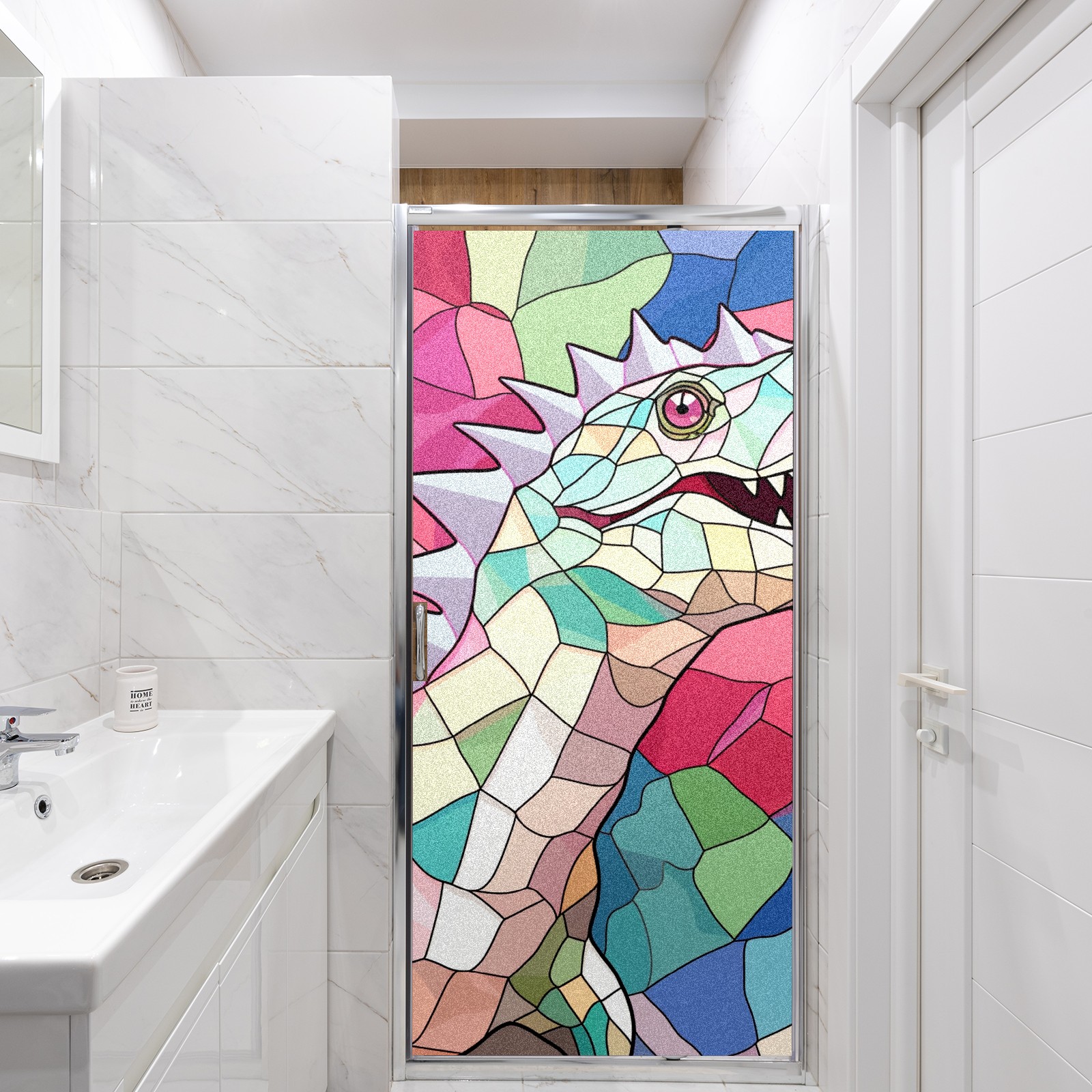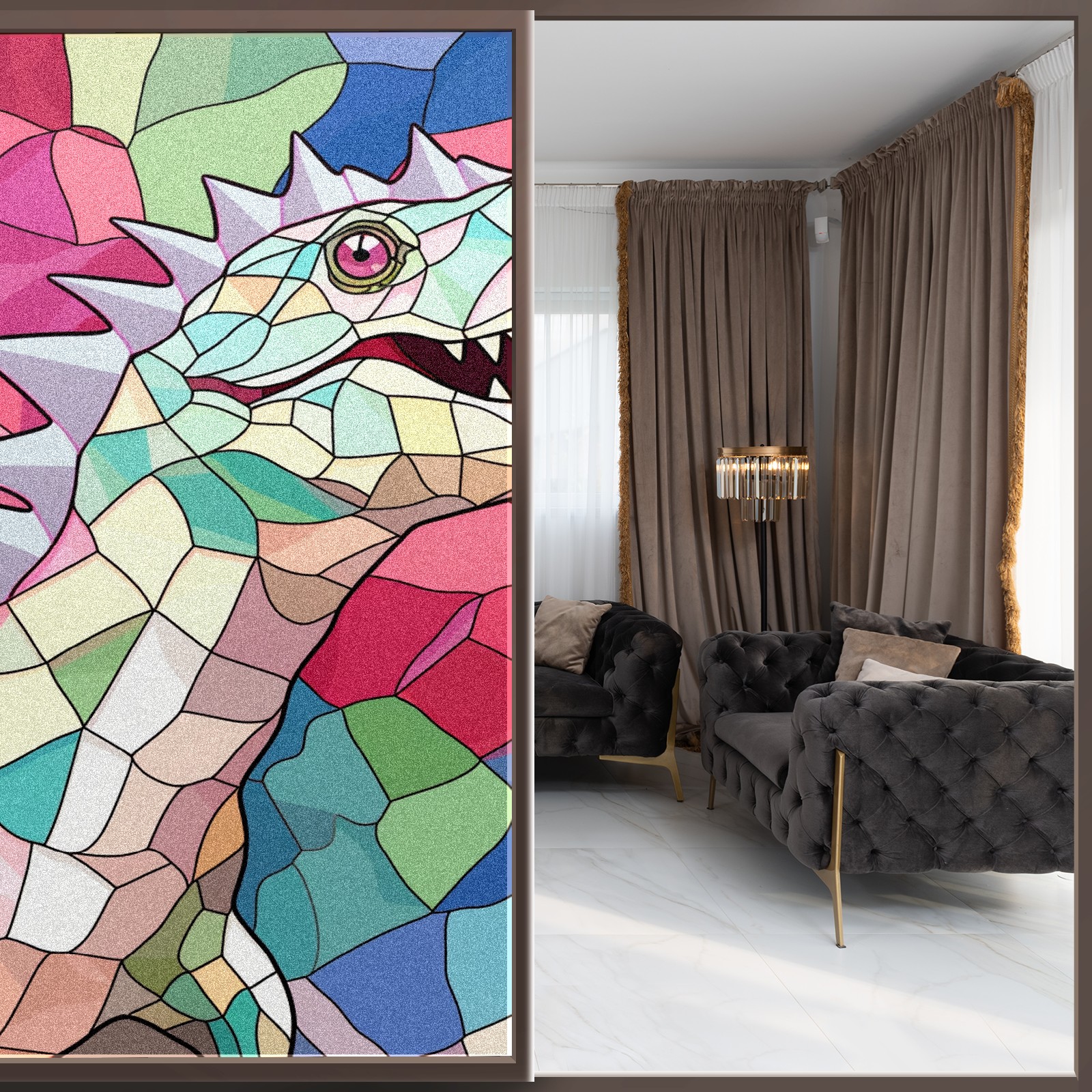 Static Cling Decorative Window Film Frosted Privacy Film Window Clings for Glass Windows No Glue Window Sticker for Bathroom Bedroom Office Stained Glass Dinosaur (1)
