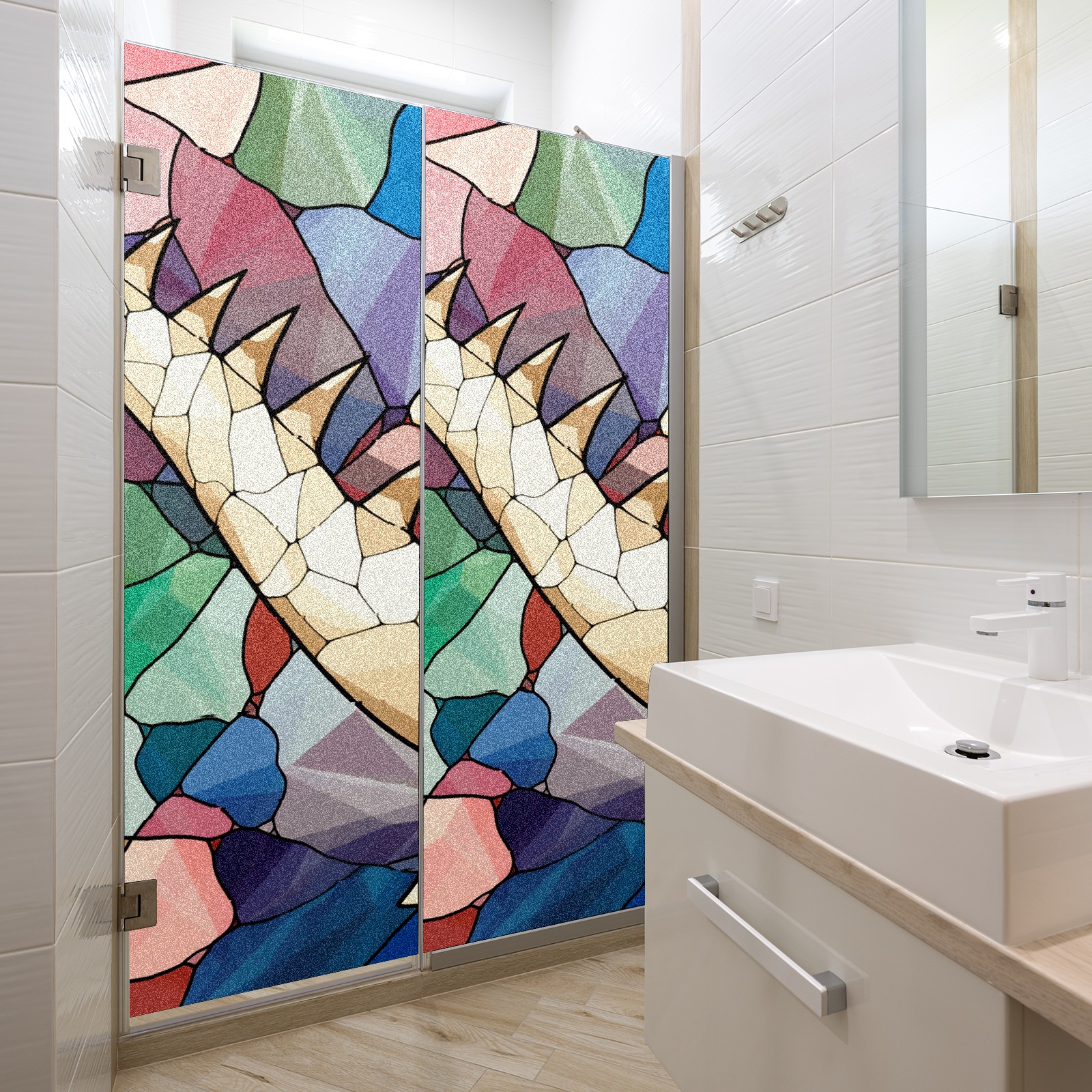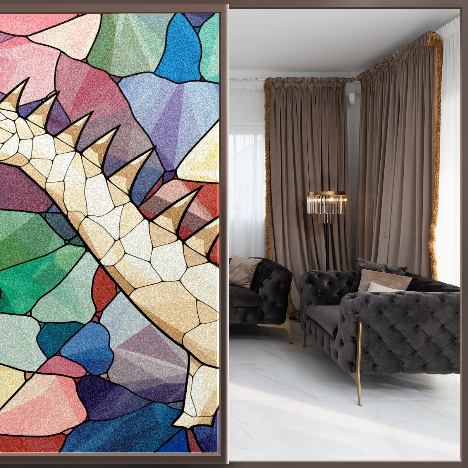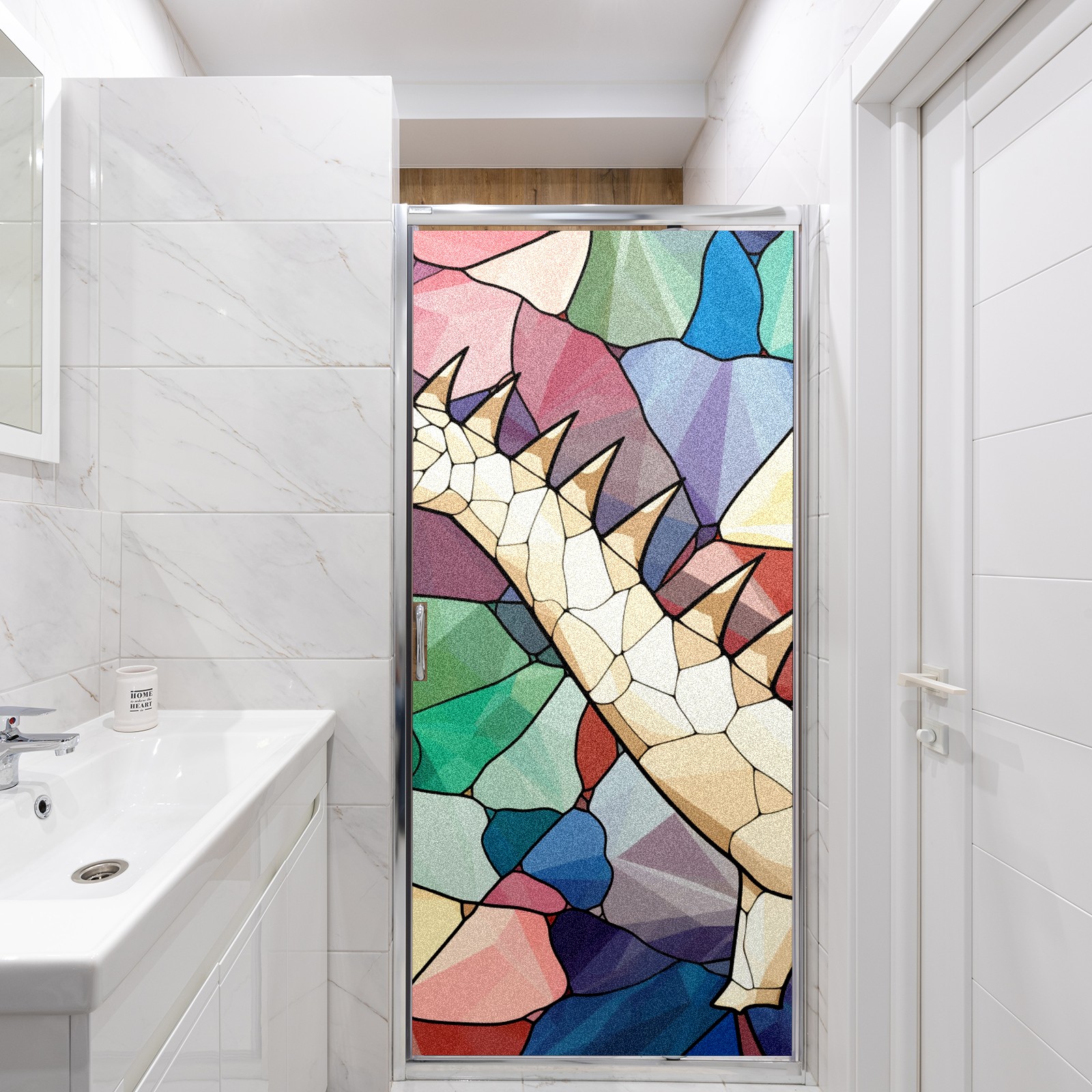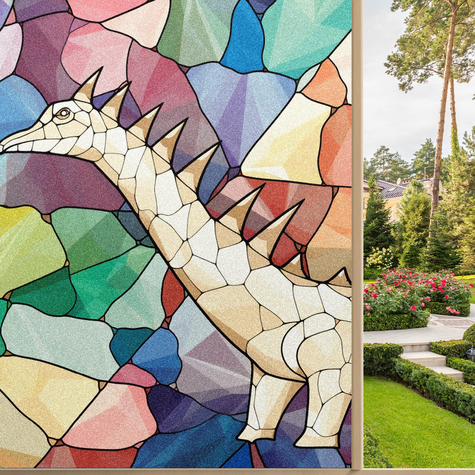 Static Cling Decorative Window Film Frosted Privacy Film Window Clings for Glass Windows No Glue Window Sticker for Bathroom Bedroom Office Stained Glass Dinosaur (21)