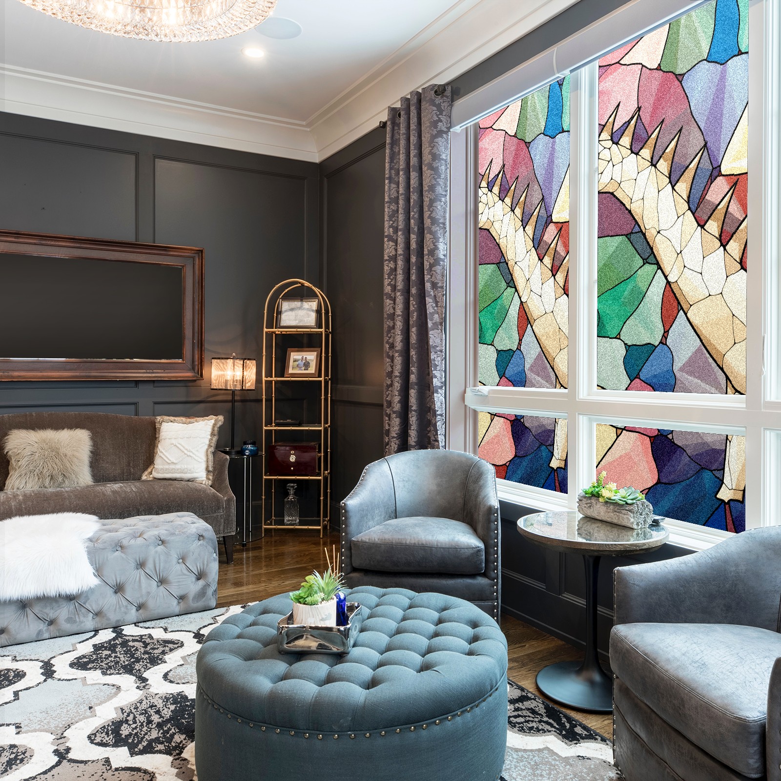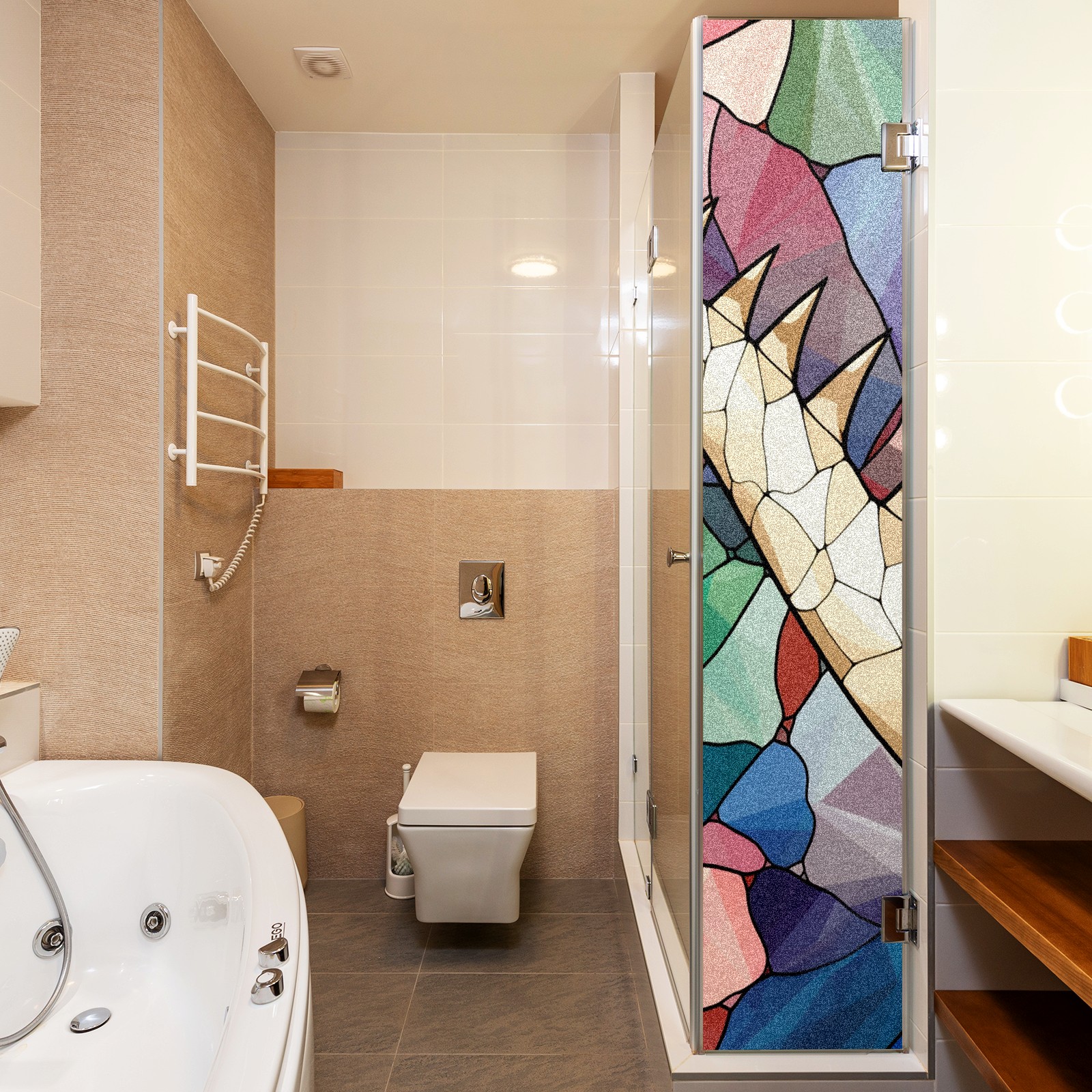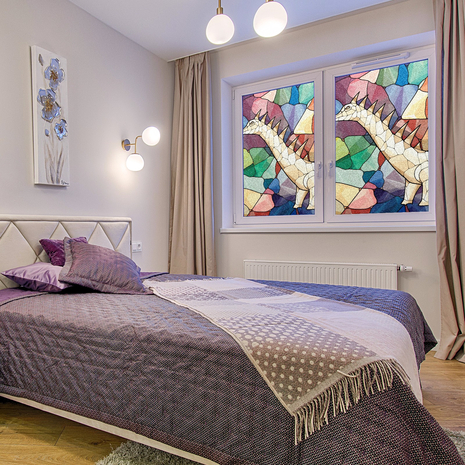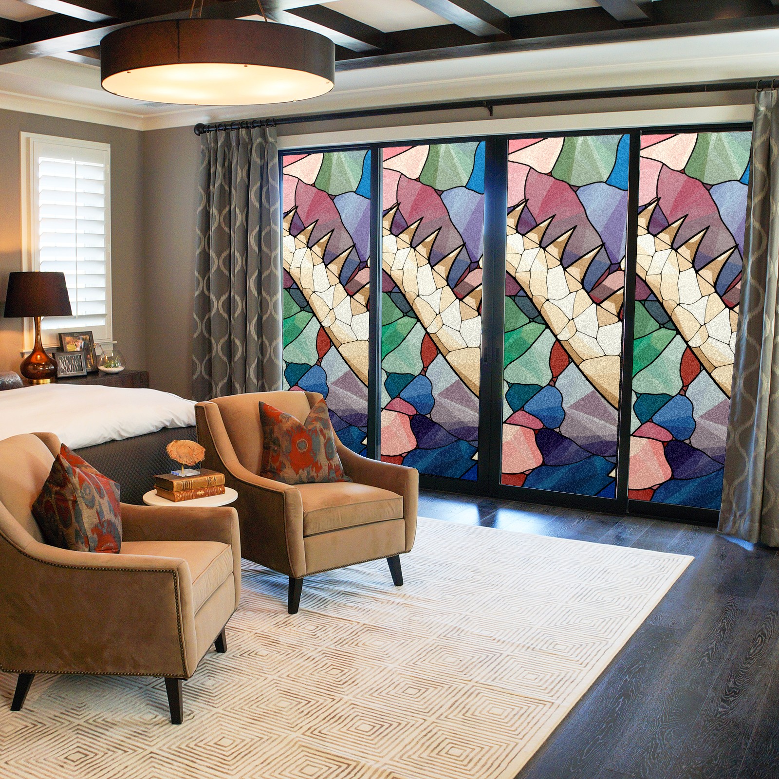 Static Cling Decorative Window Film Frosted Privacy Film Window Clings for Glass Windows No Glue Window Sticker for Bathroom Bedroom Office Stained Glass Dinosaur (21)