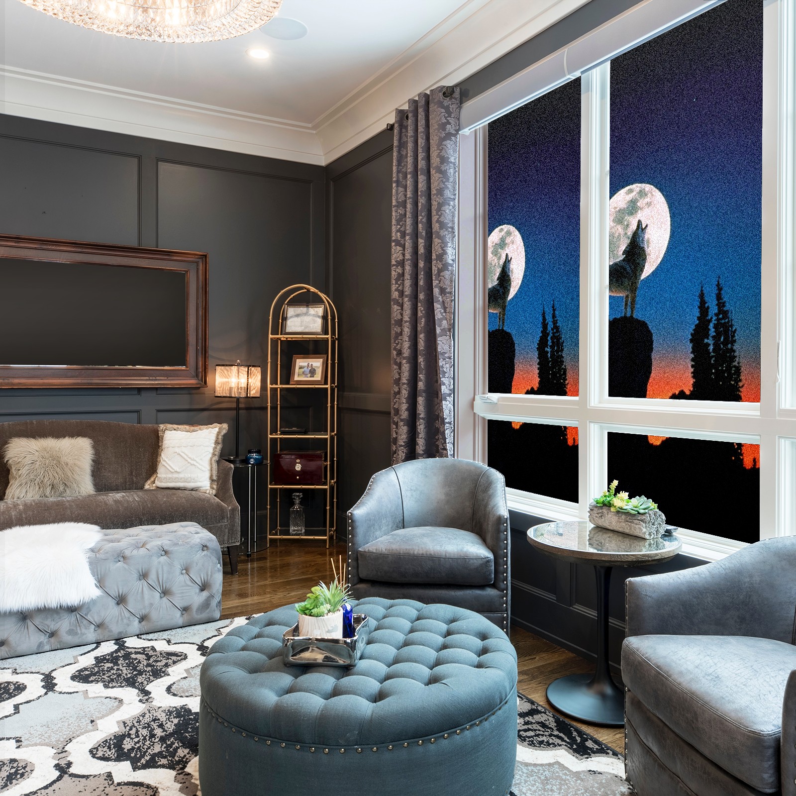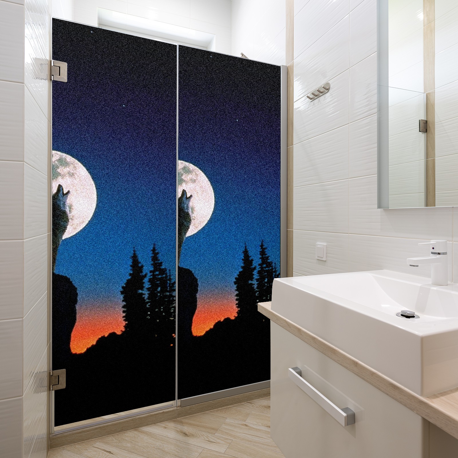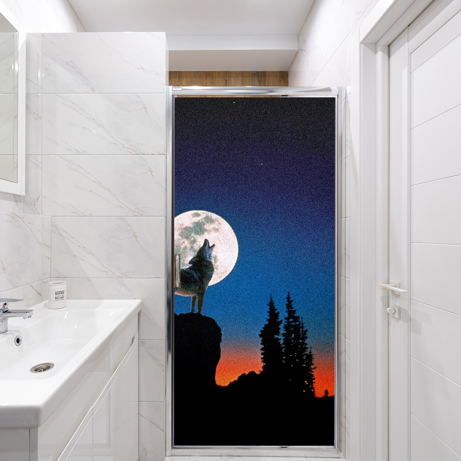 Static Cling Decorative Window Film Frosted Privacy Film Window Clings for Glass Windows No Glue Window Sticker for Bathroom Bedroom Office Wolf Moon