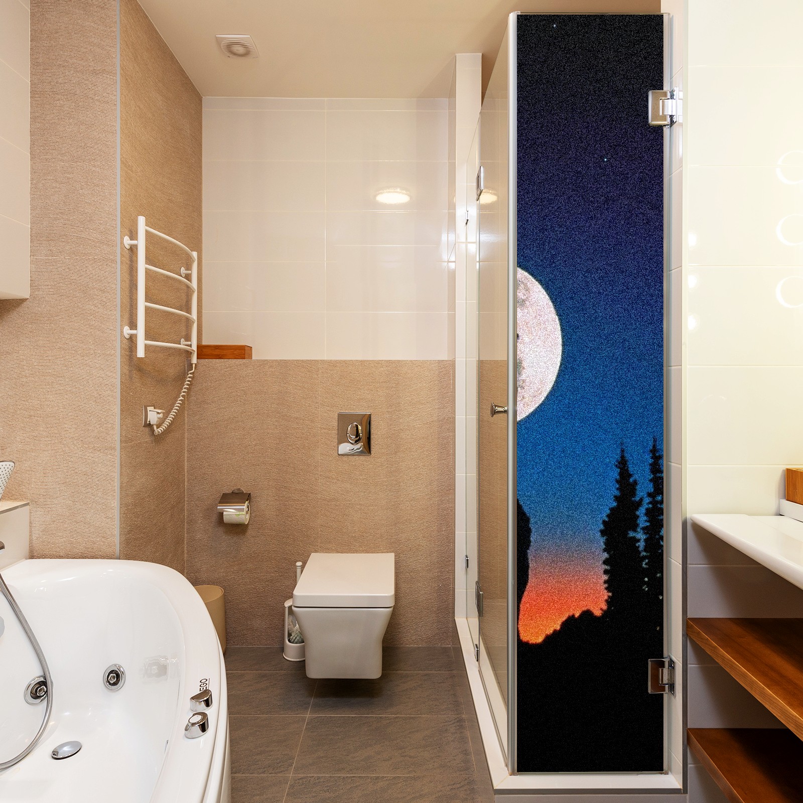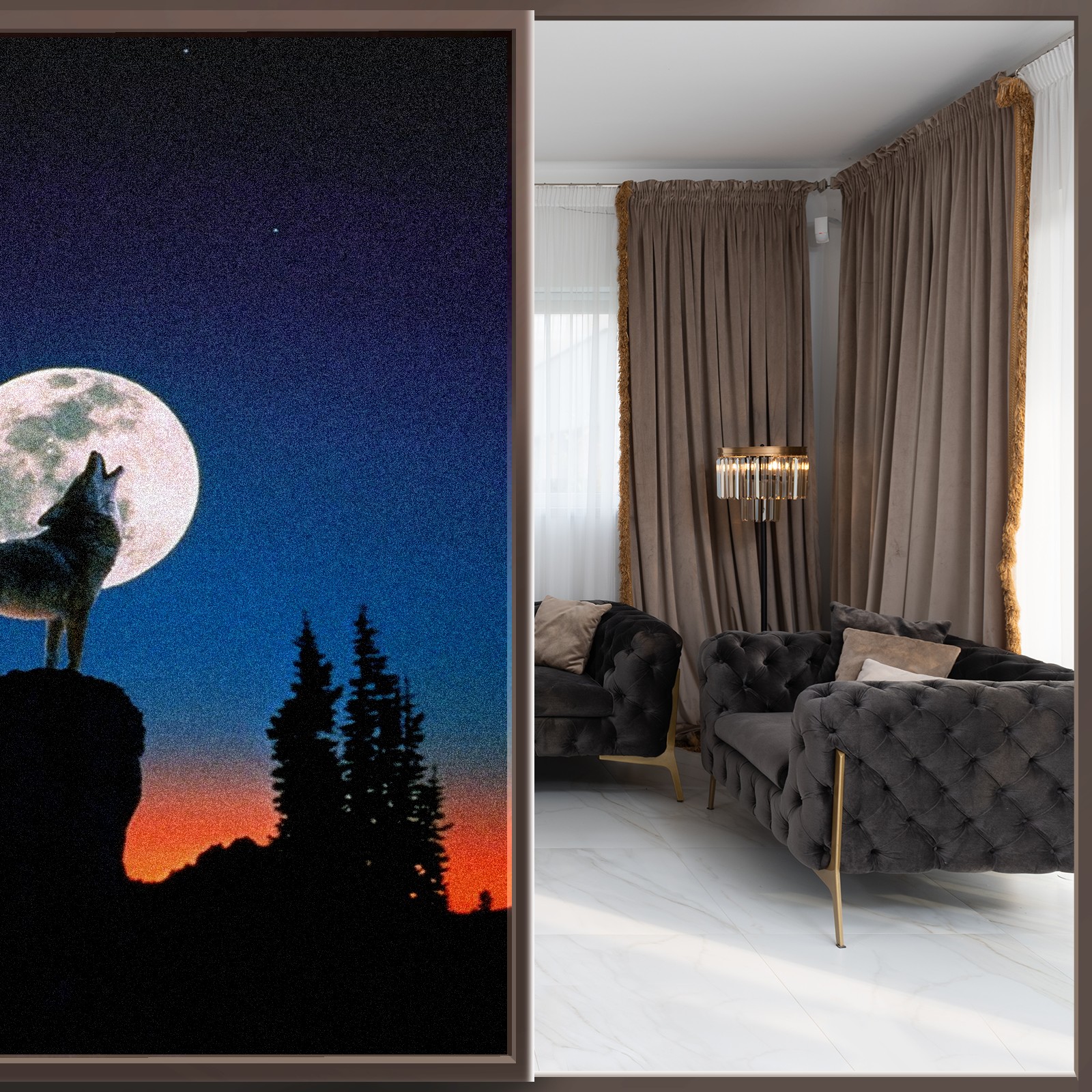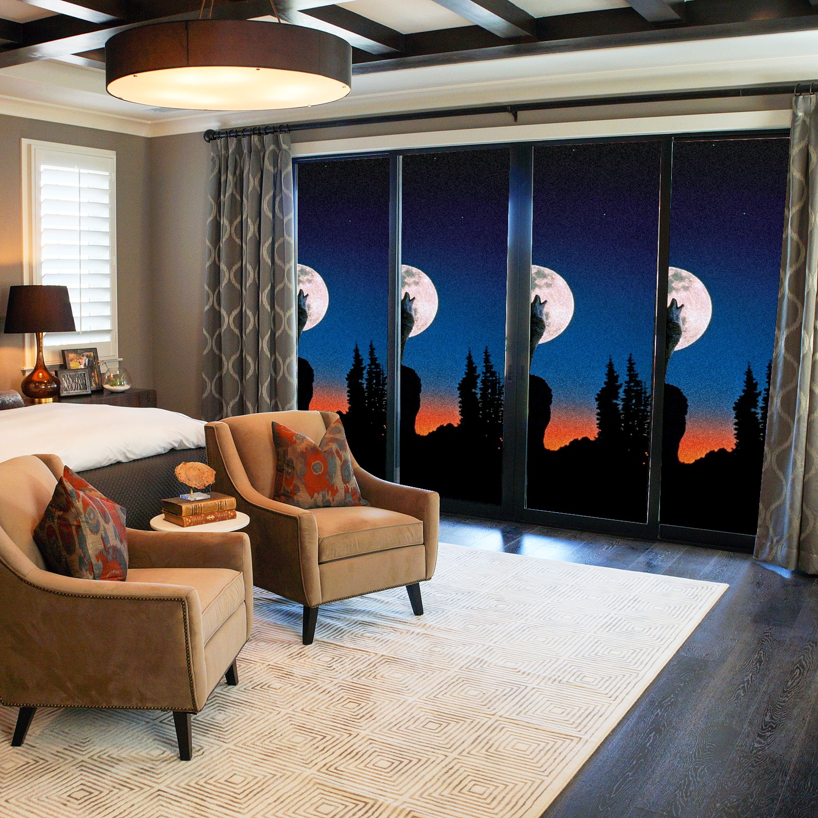 Static Cling Decorative Window Film Frosted Privacy Film Window Clings for Glass Windows No Glue Window Sticker for Bathroom Bedroom Office Wolf Moon