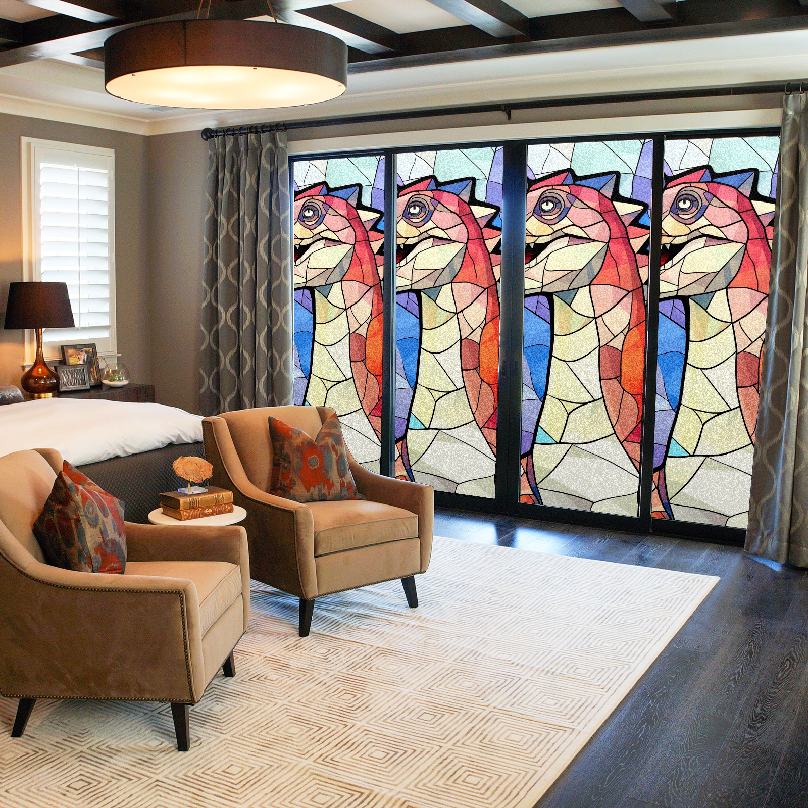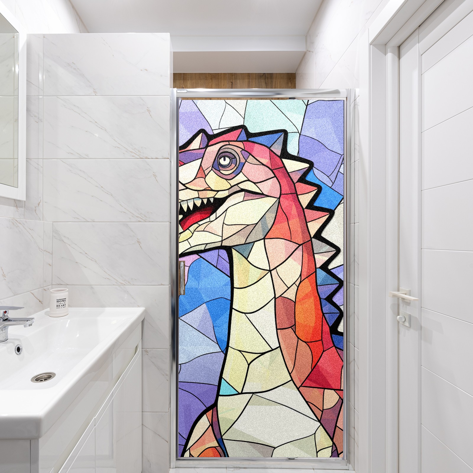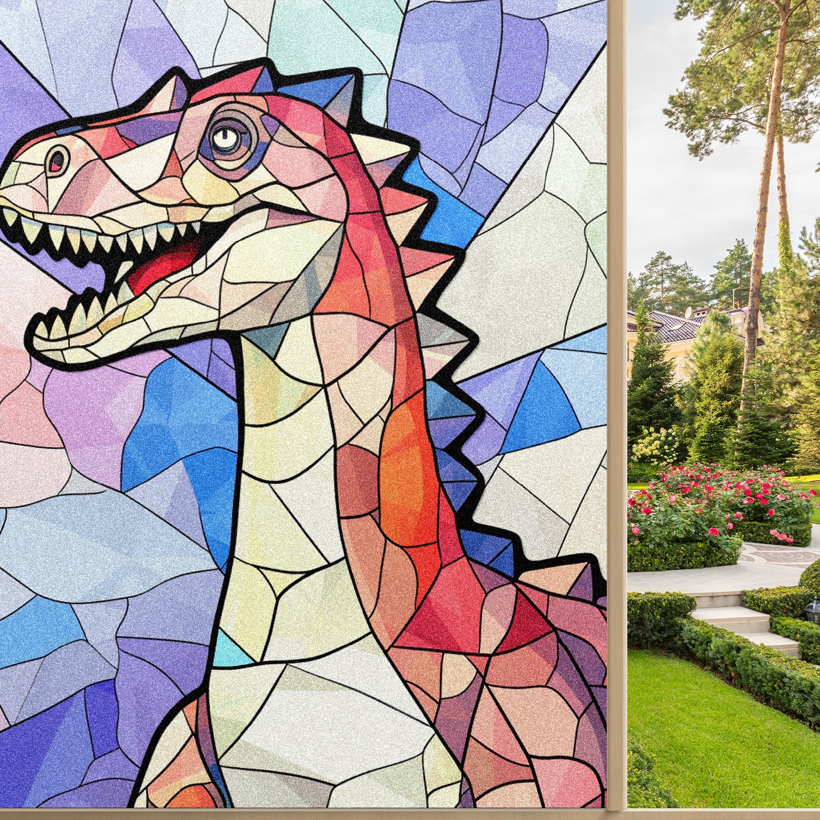 Static Cling Decorative Window Film Frosted Privacy Film Window Clings for Glass Windows No Glue Window Sticker for Bathroom Bedroom Office Stained Glass Dinosaur (20)
