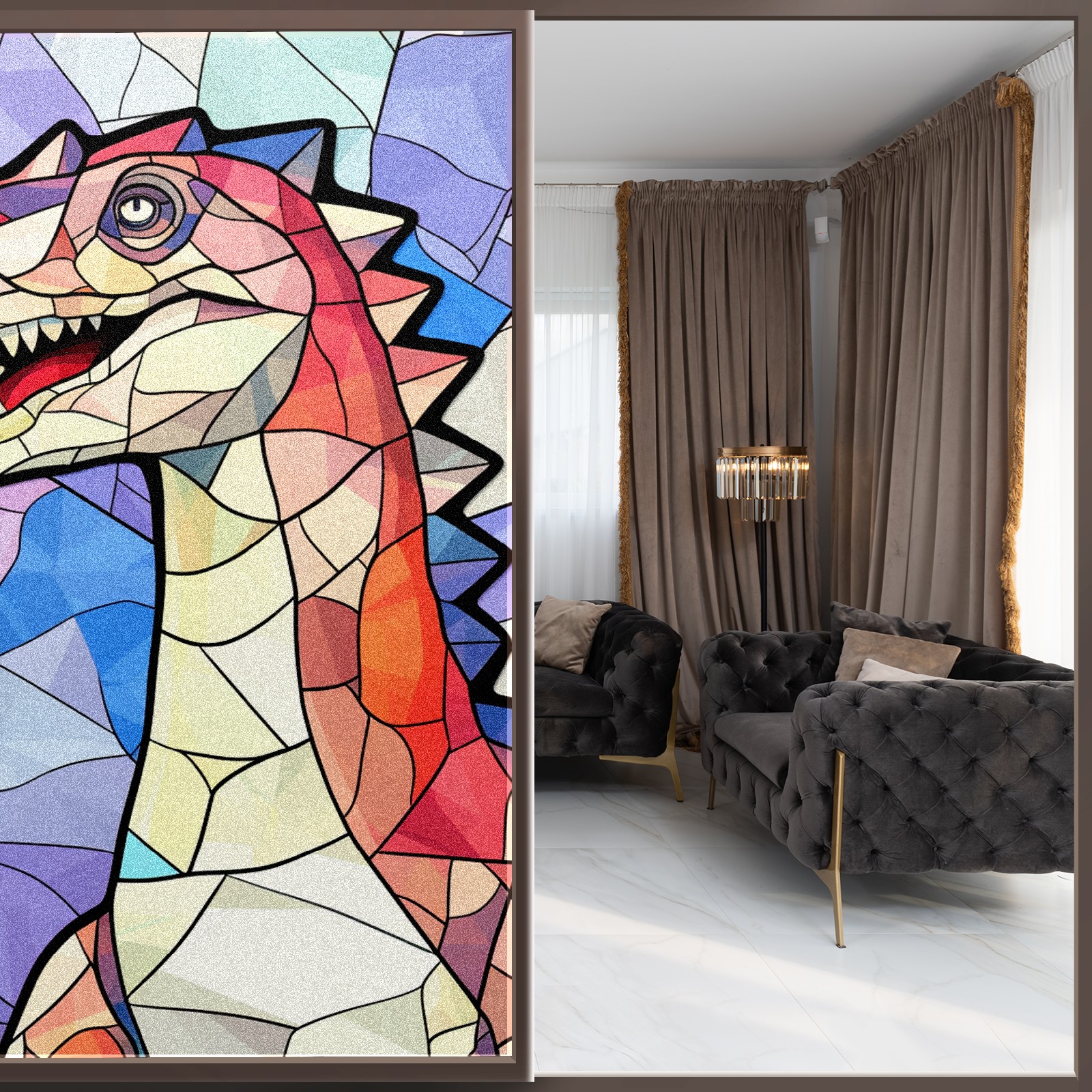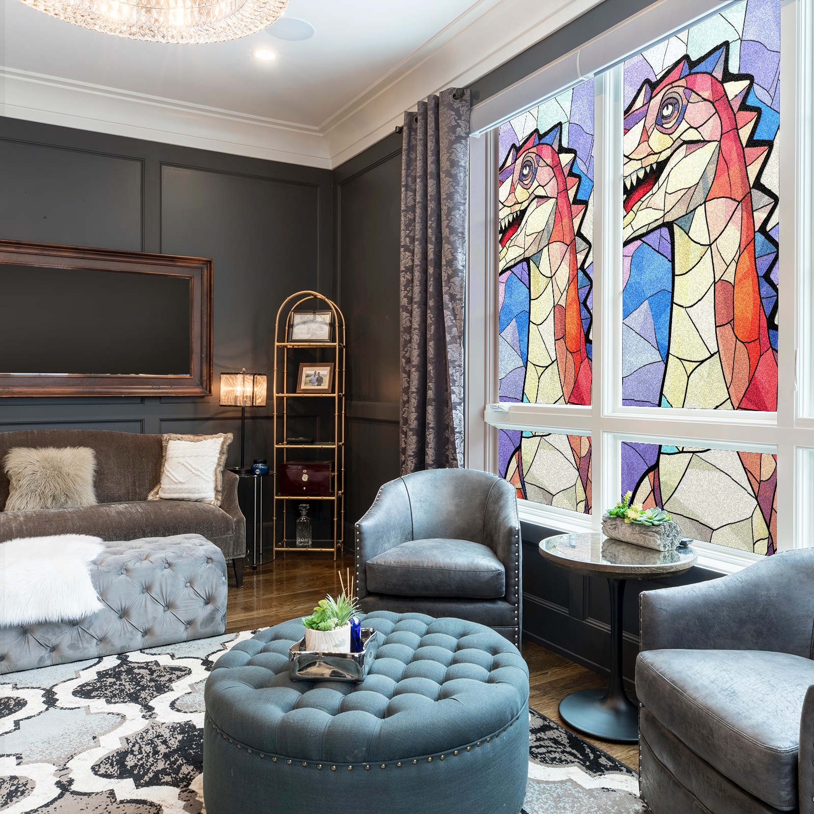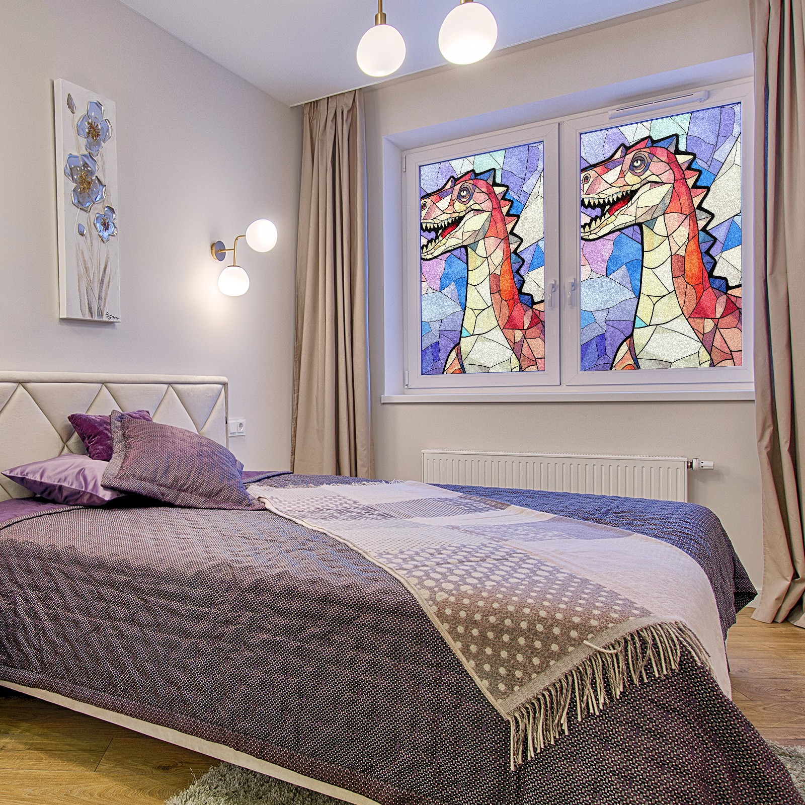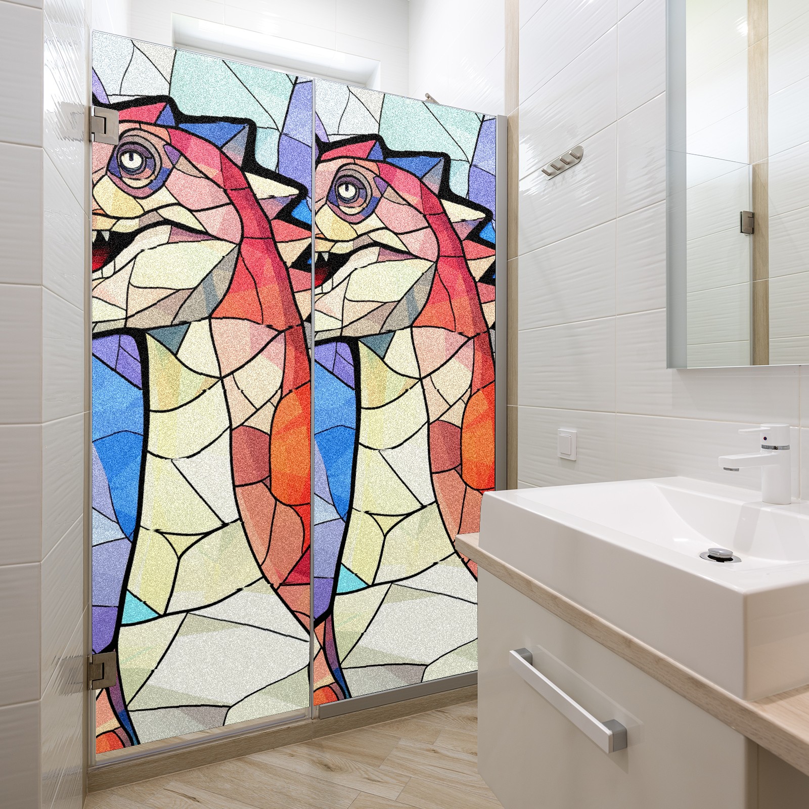 Static Cling Decorative Window Film Frosted Privacy Film Window Clings for Glass Windows No Glue Window Sticker for Bathroom Bedroom Office Stained Glass Dinosaur (20)