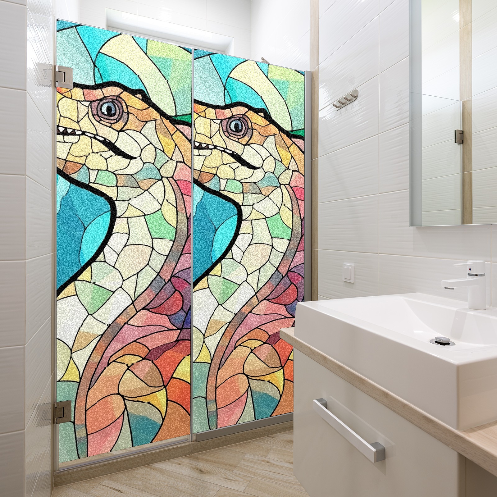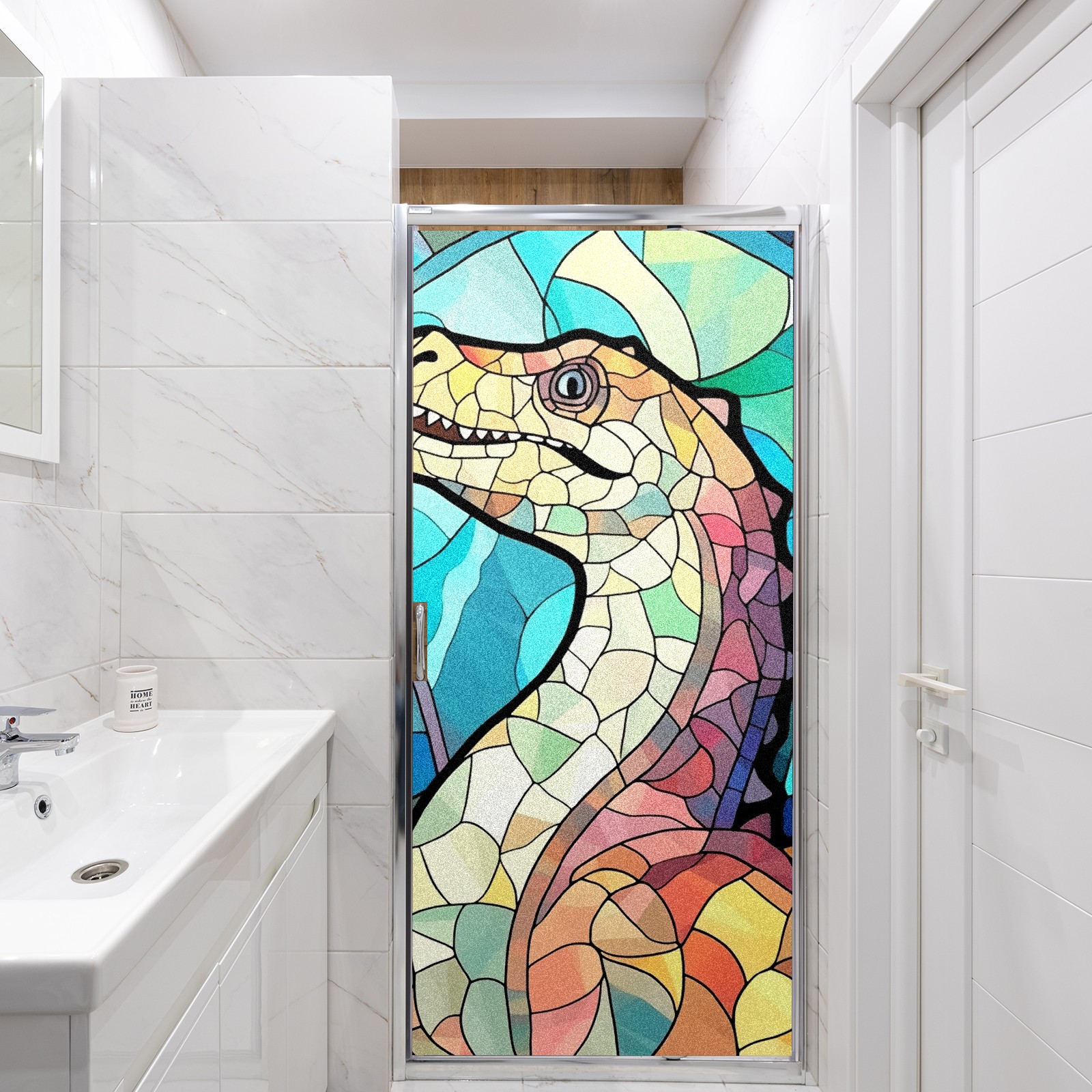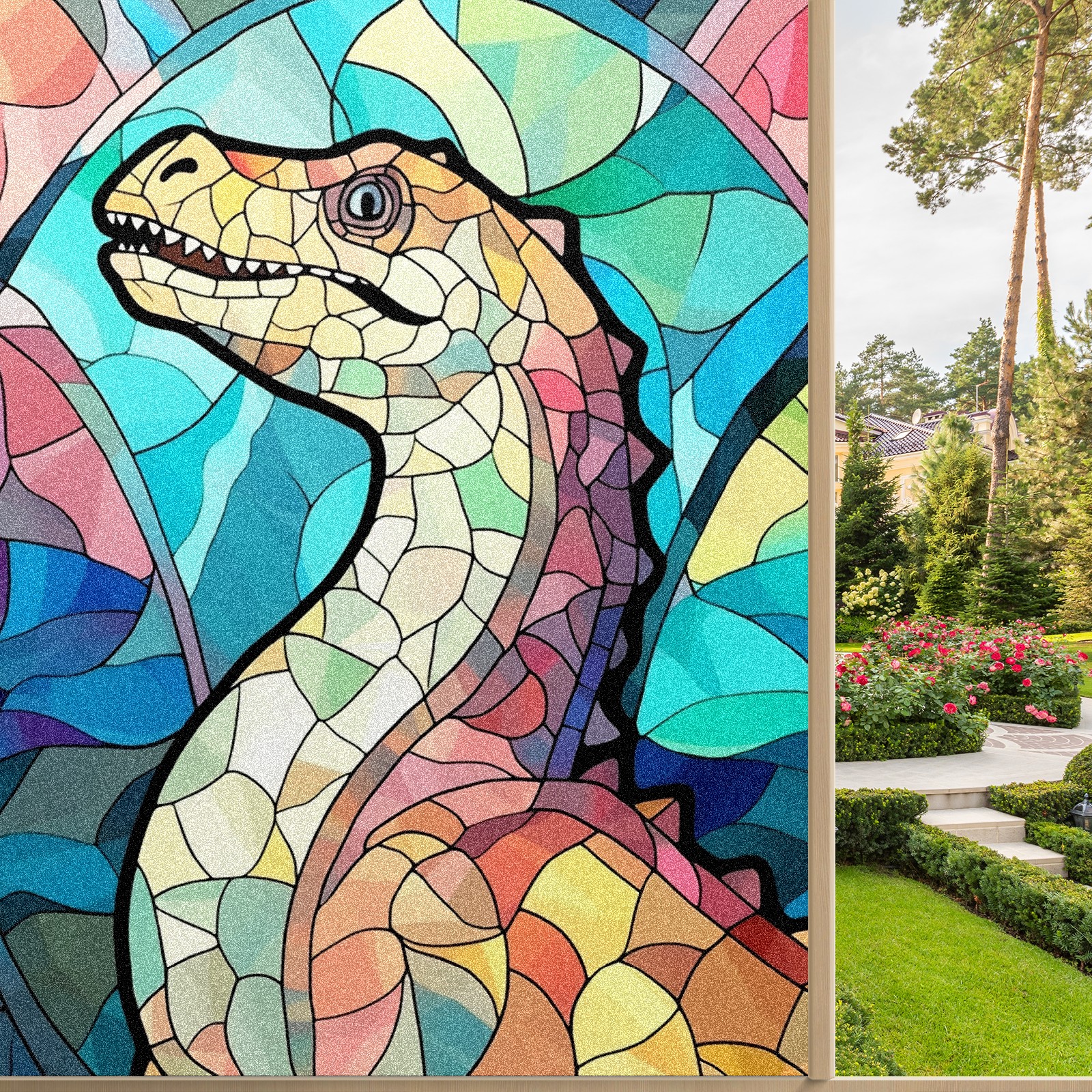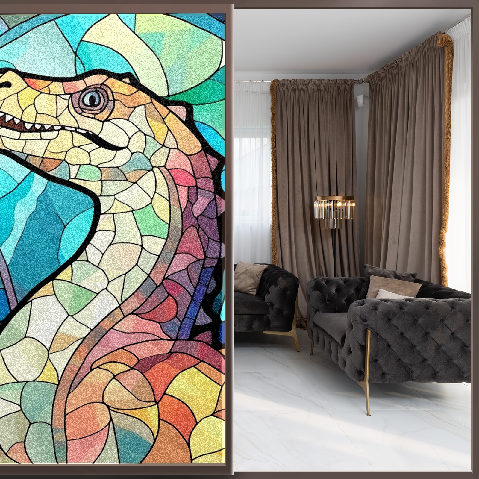Static Cling Decorative Window Film Frosted Privacy Film Window Clings for Glass Windows No Glue Window Sticker for Bathroom Bedroom Office Stained Glass Dinosaur (18)