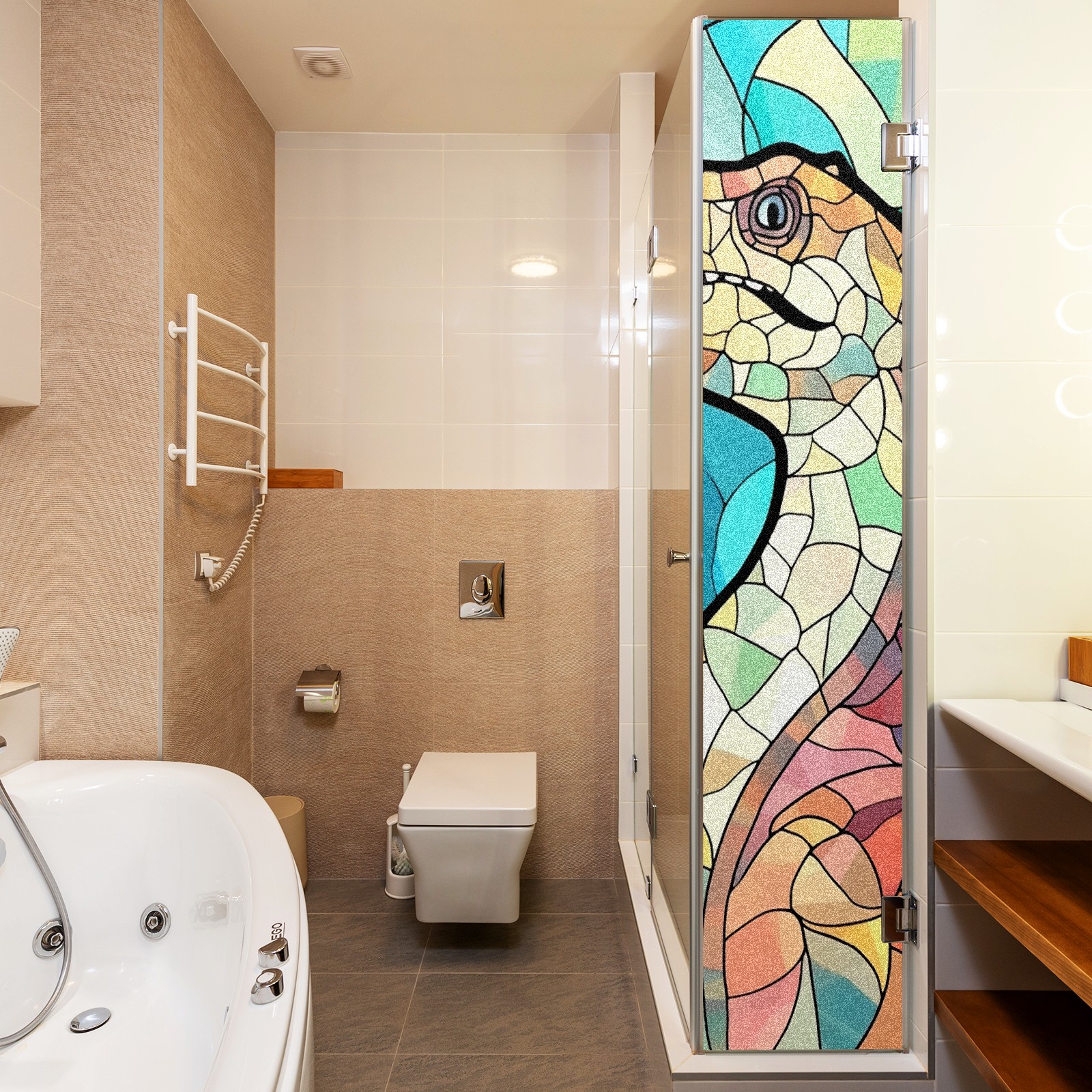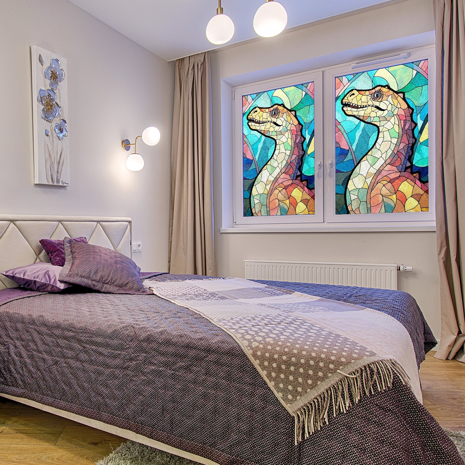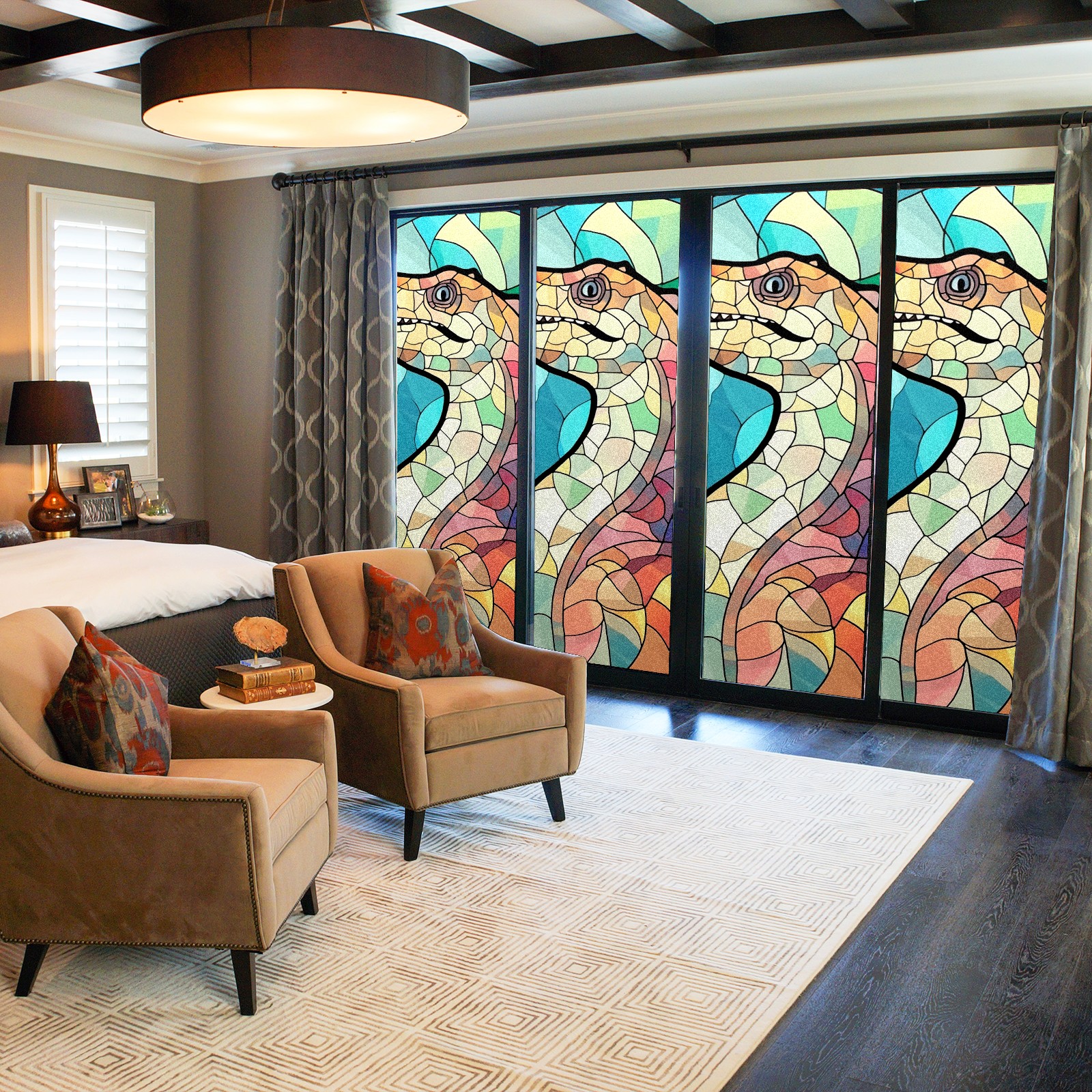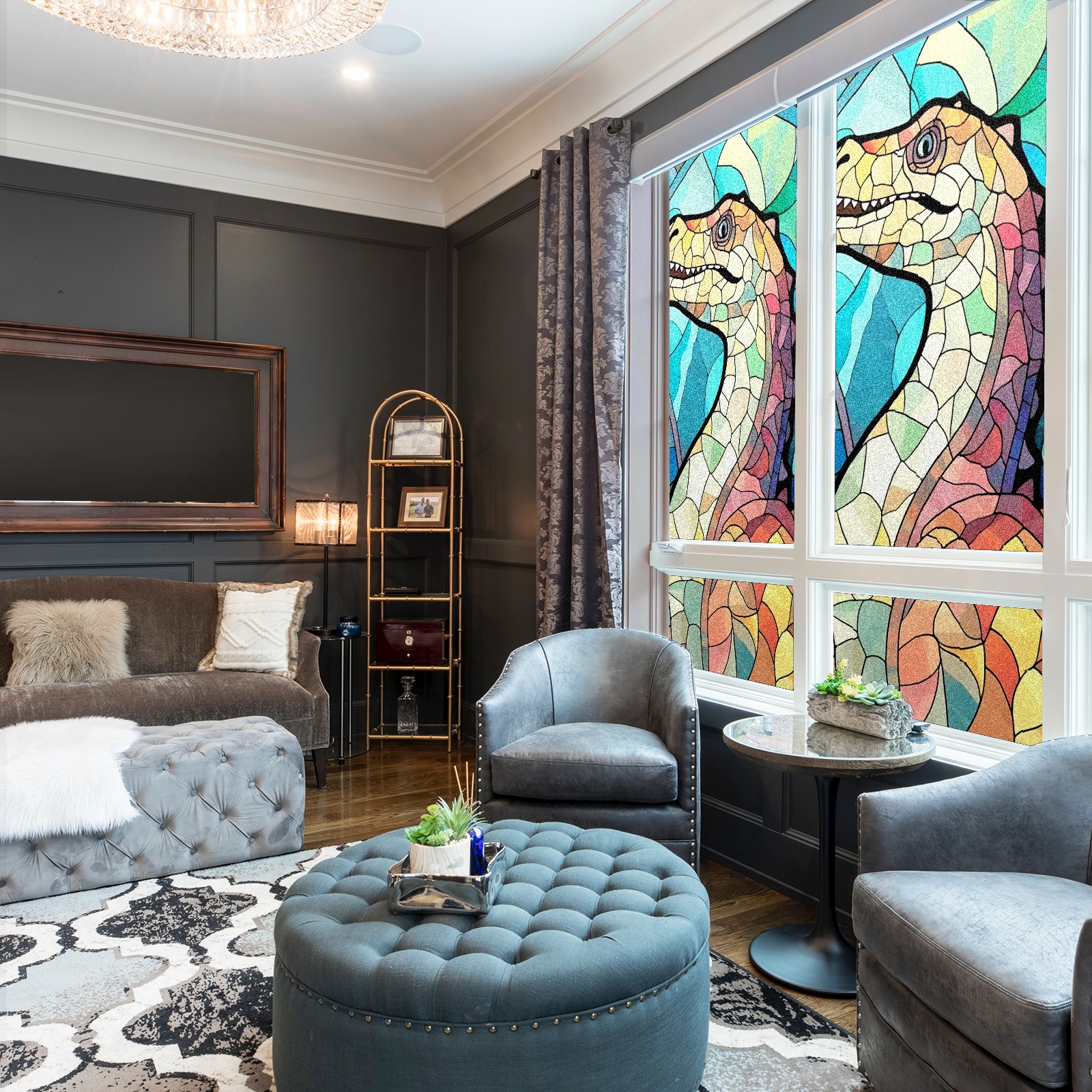 Static Cling Decorative Window Film Frosted Privacy Film Window Clings for Glass Windows No Glue Window Sticker for Bathroom Bedroom Office Stained Glass Dinosaur (18)