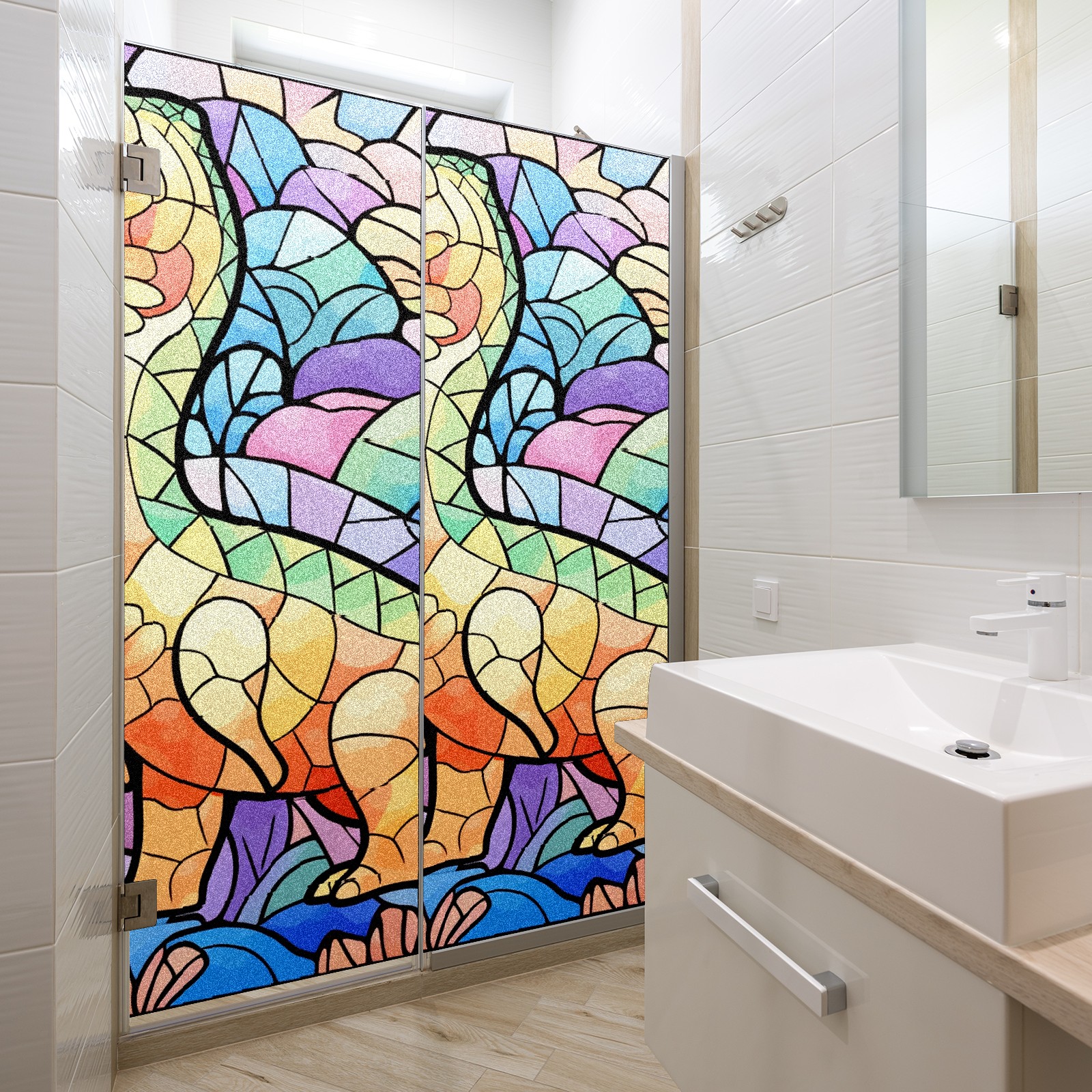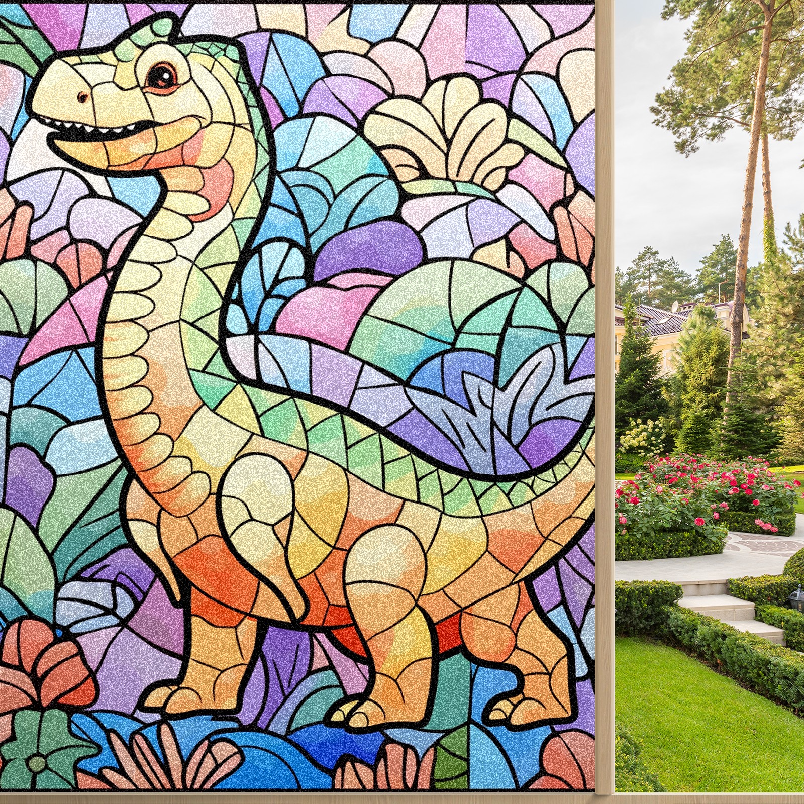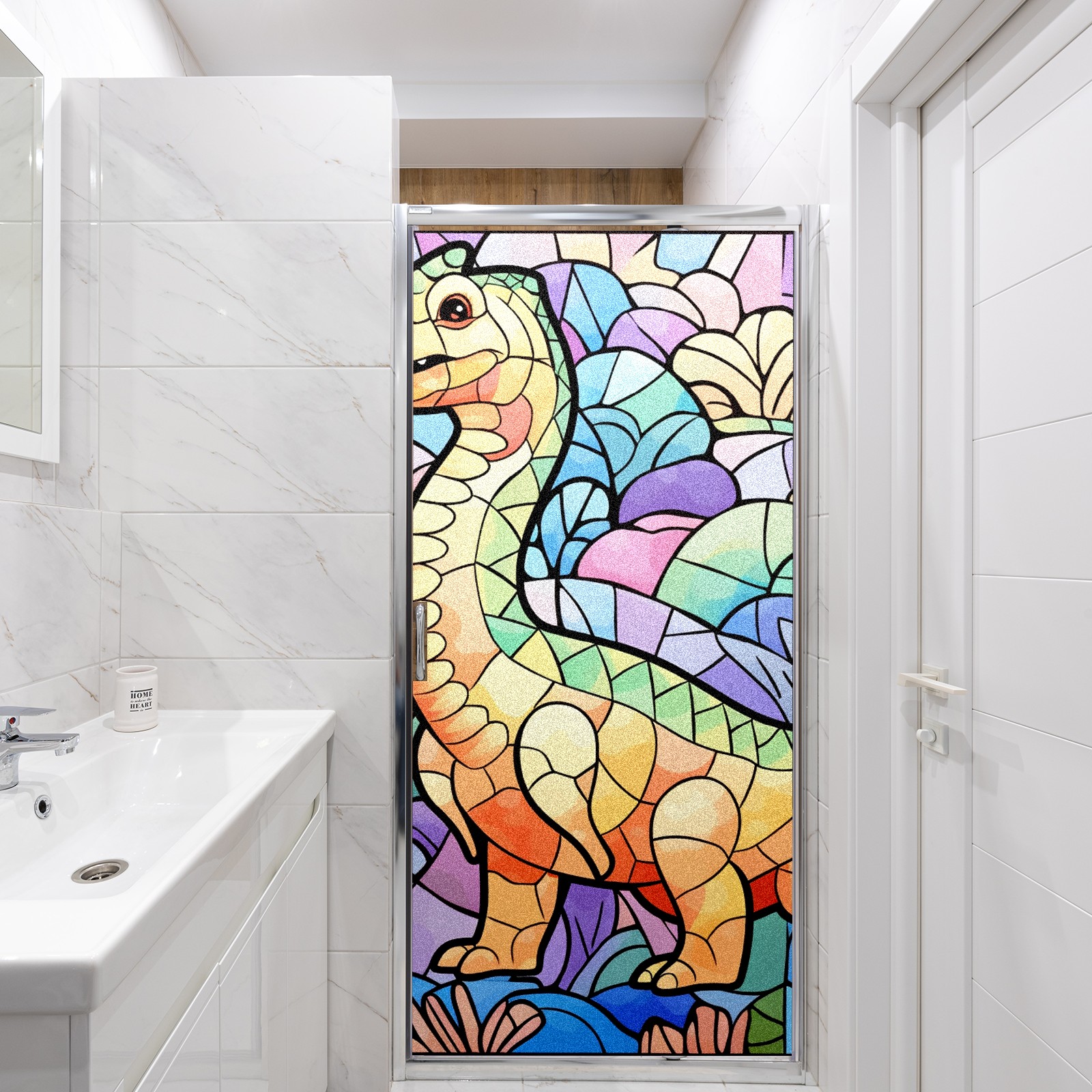 Static Cling Decorative Window Film Frosted Privacy Film Window Clings for Glass Windows No Glue Window Sticker for Bathroom Bedroom Office Stained Glass Dinosaur (19)