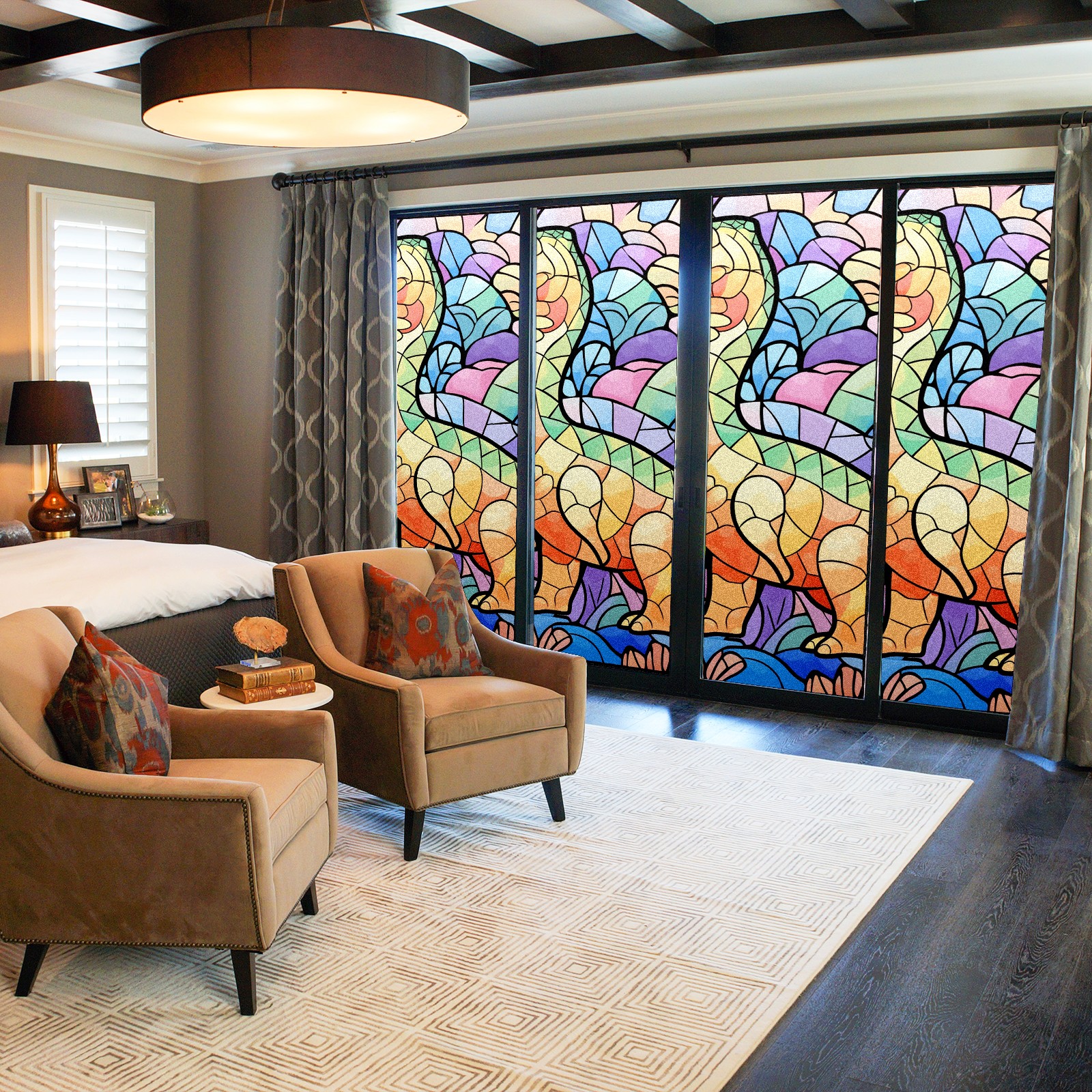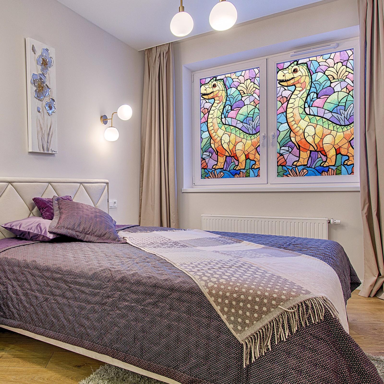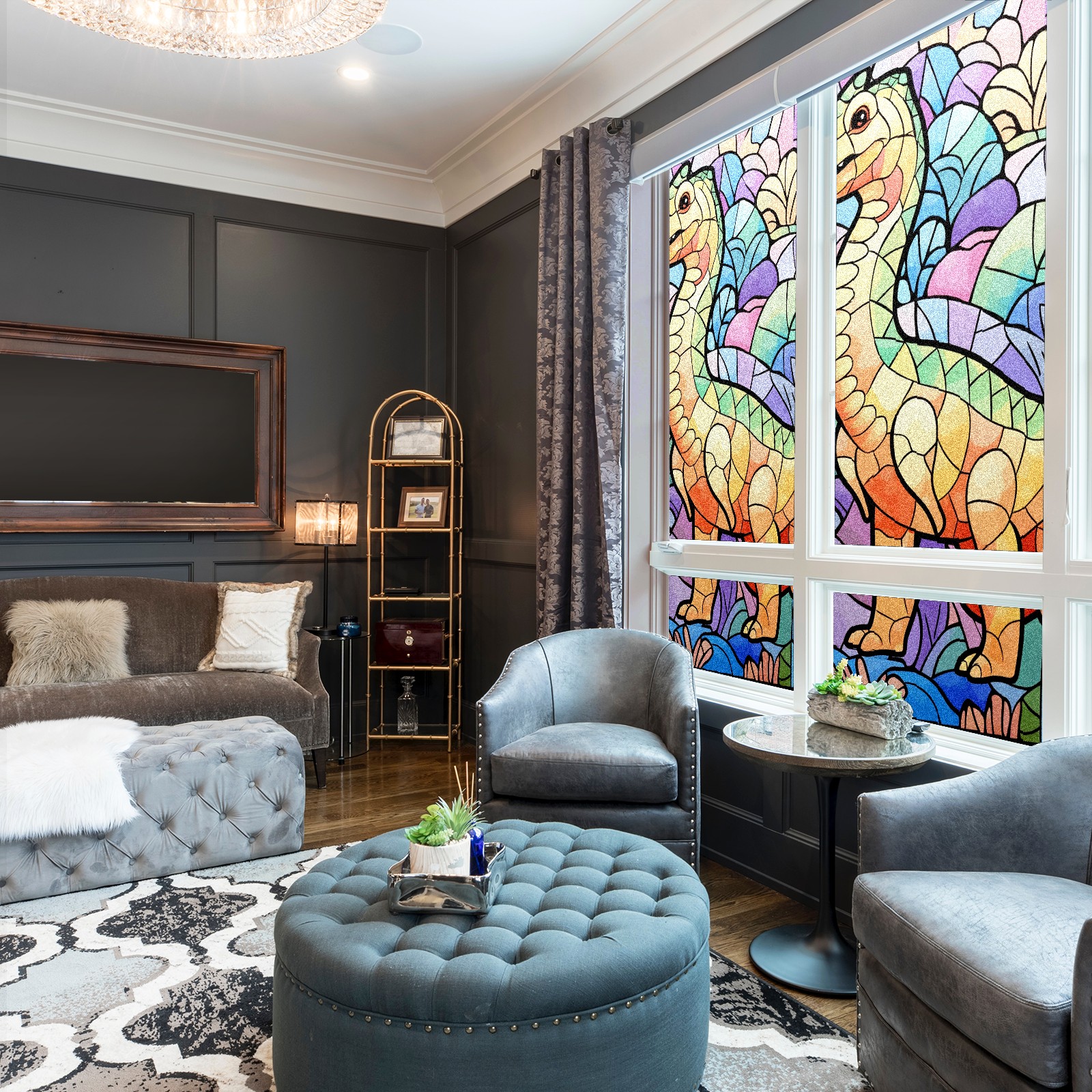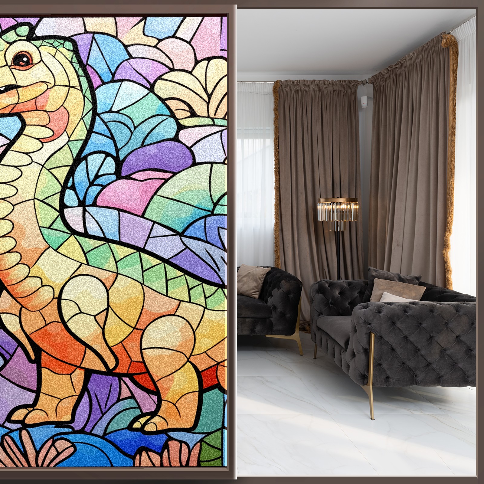 Static Cling Decorative Window Film Frosted Privacy Film Window Clings for Glass Windows No Glue Window Sticker for Bathroom Bedroom Office Stained Glass Dinosaur (19)