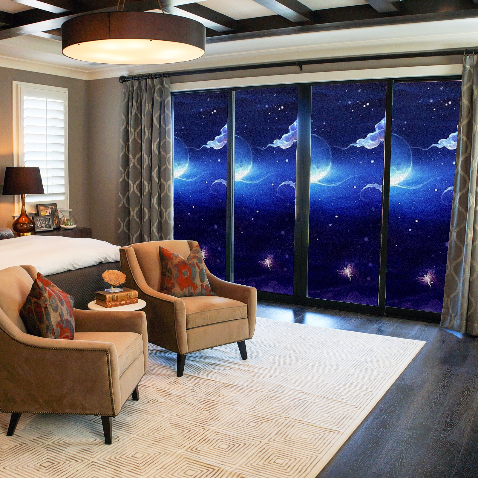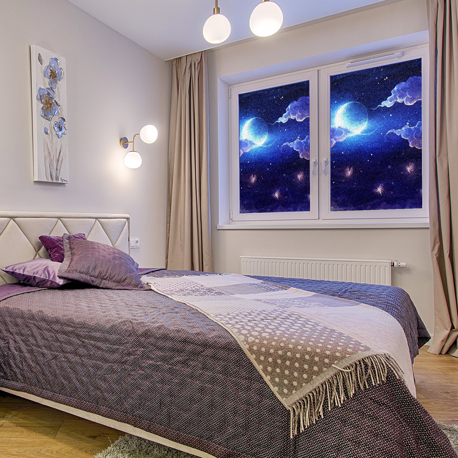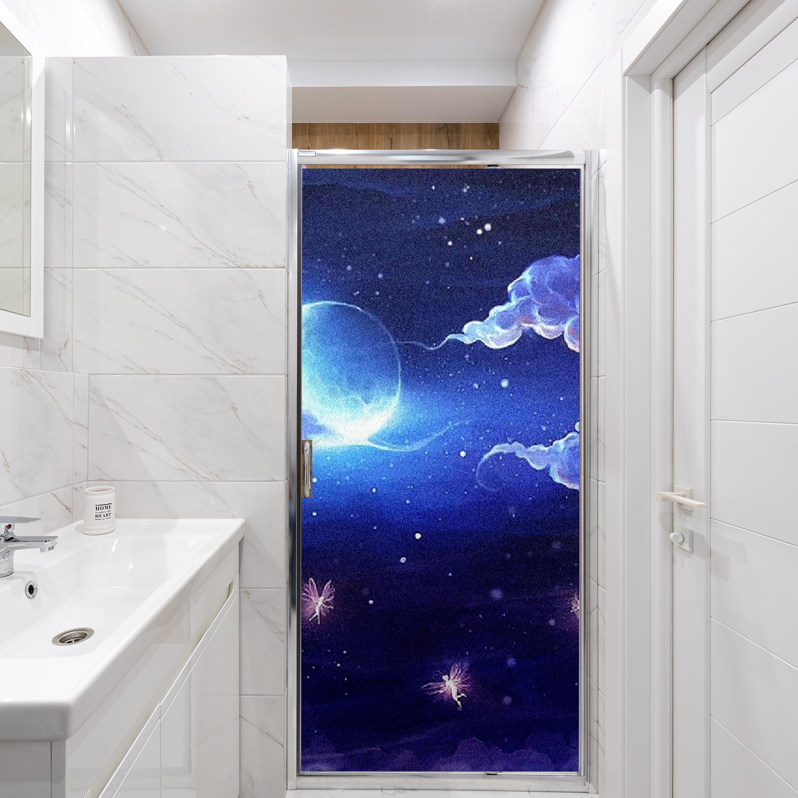 Static Cling Decorative Window Film Frosted Privacy Film Window Clings for Glass Windows No Glue Window Sticker for Bathroom Bedroom Office Night Bright Moon Clouds(1)