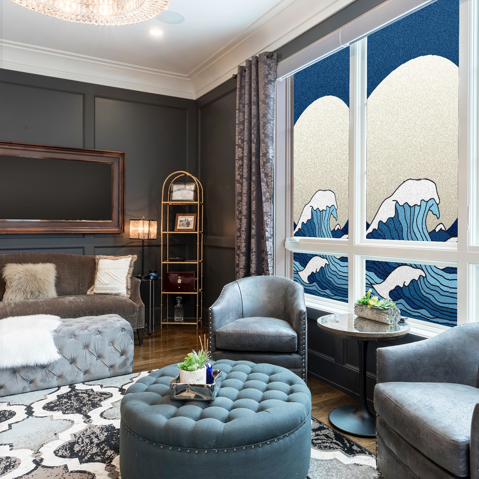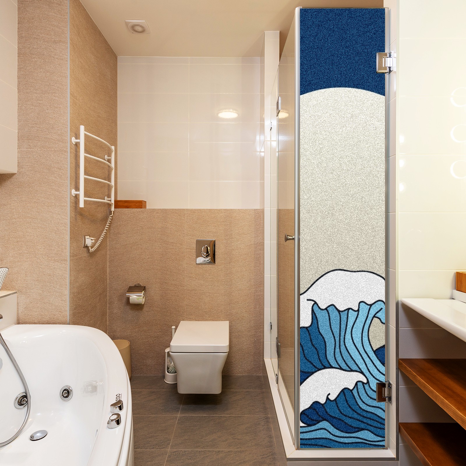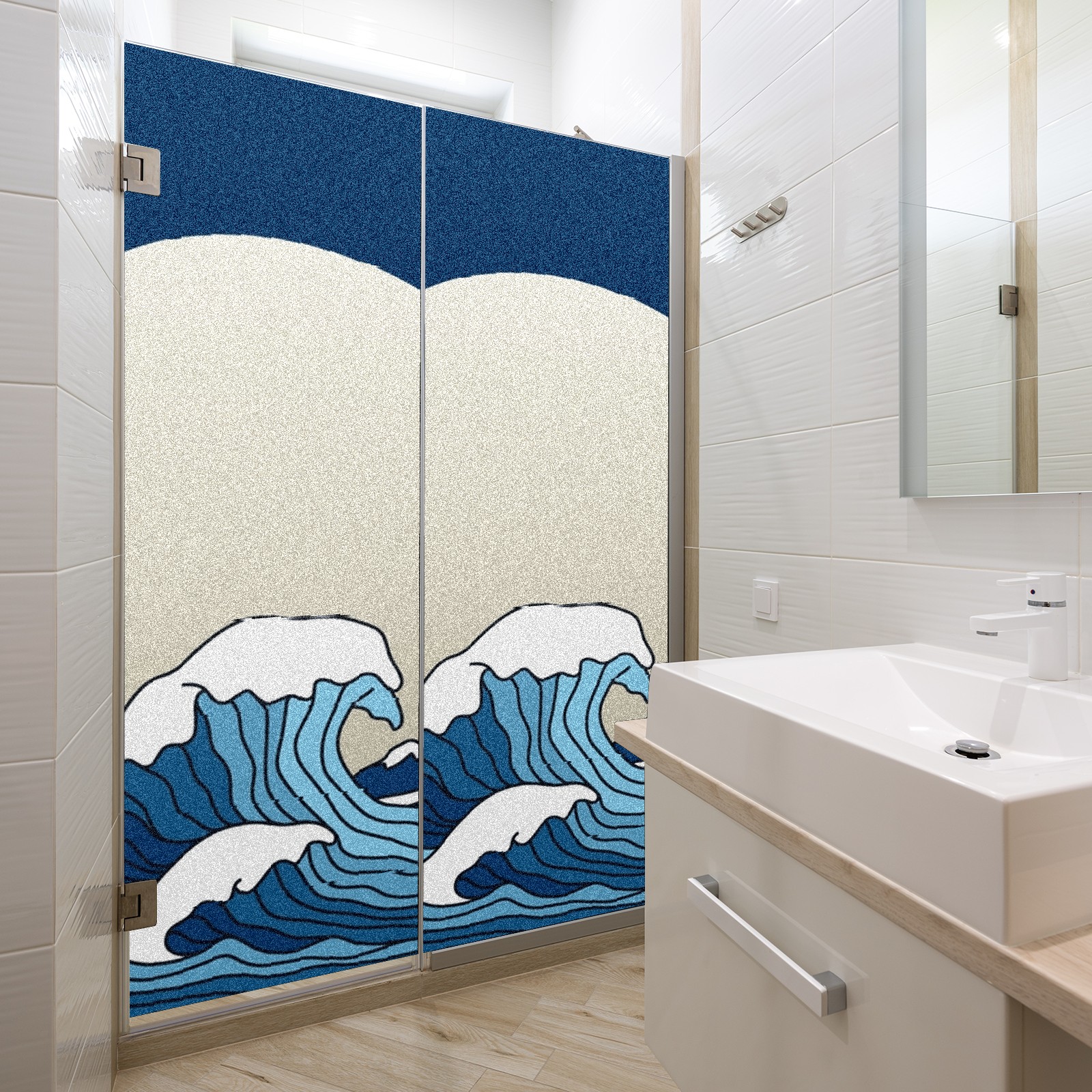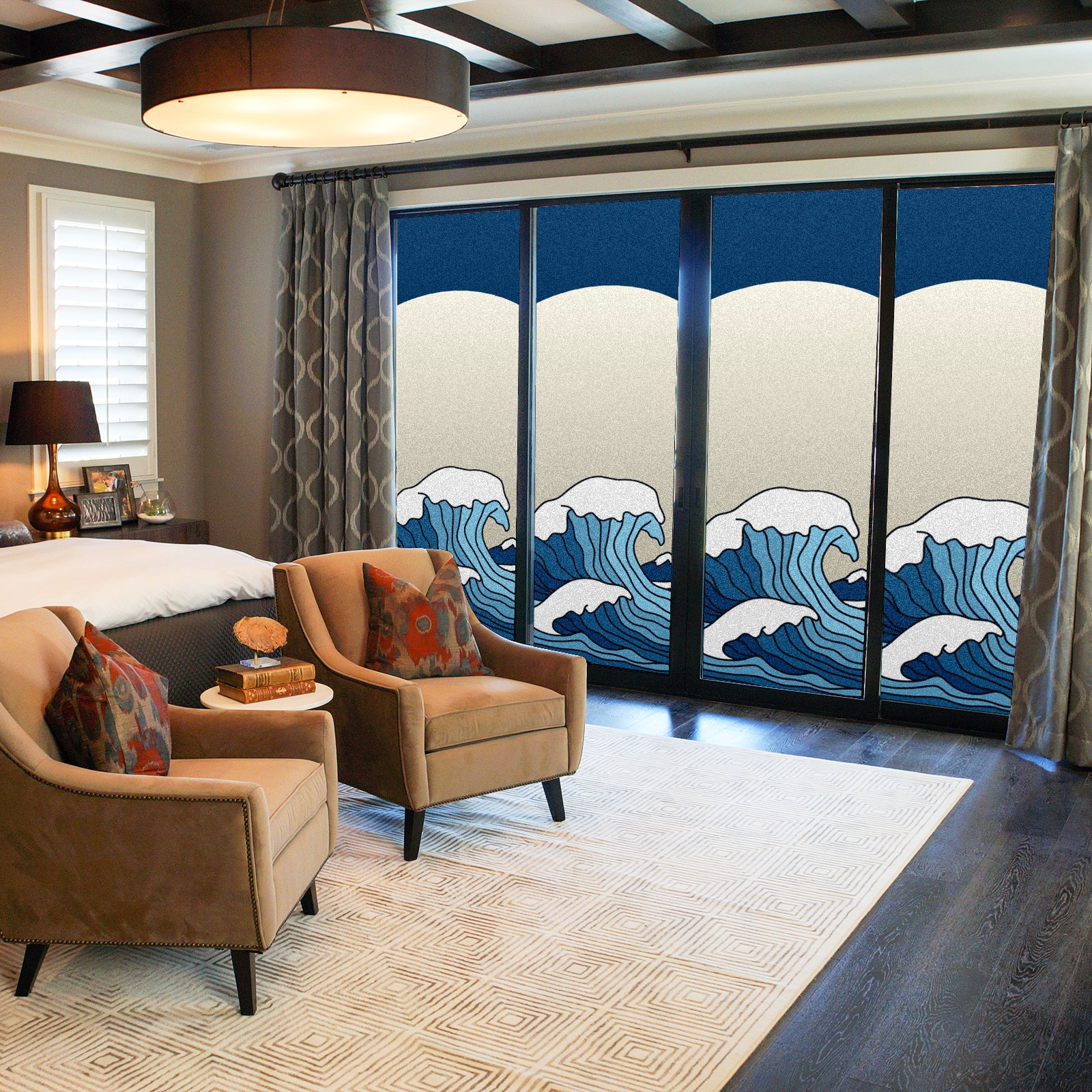 Static Cling Decorative Window Film Frosted Privacy Film Window Clings for Glass Windows No Glue Window Sticker for Bathroom Bedroom Office Sea Wave Moon