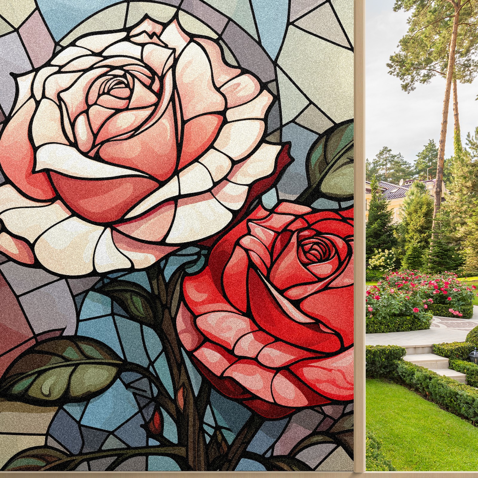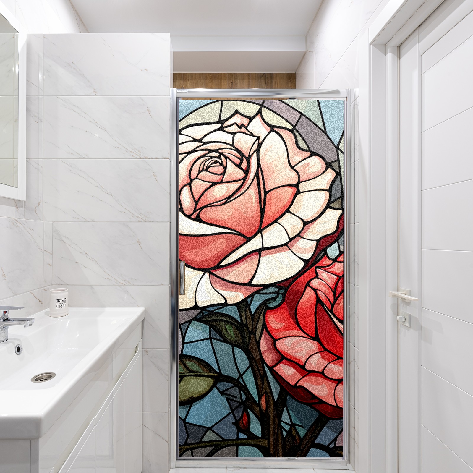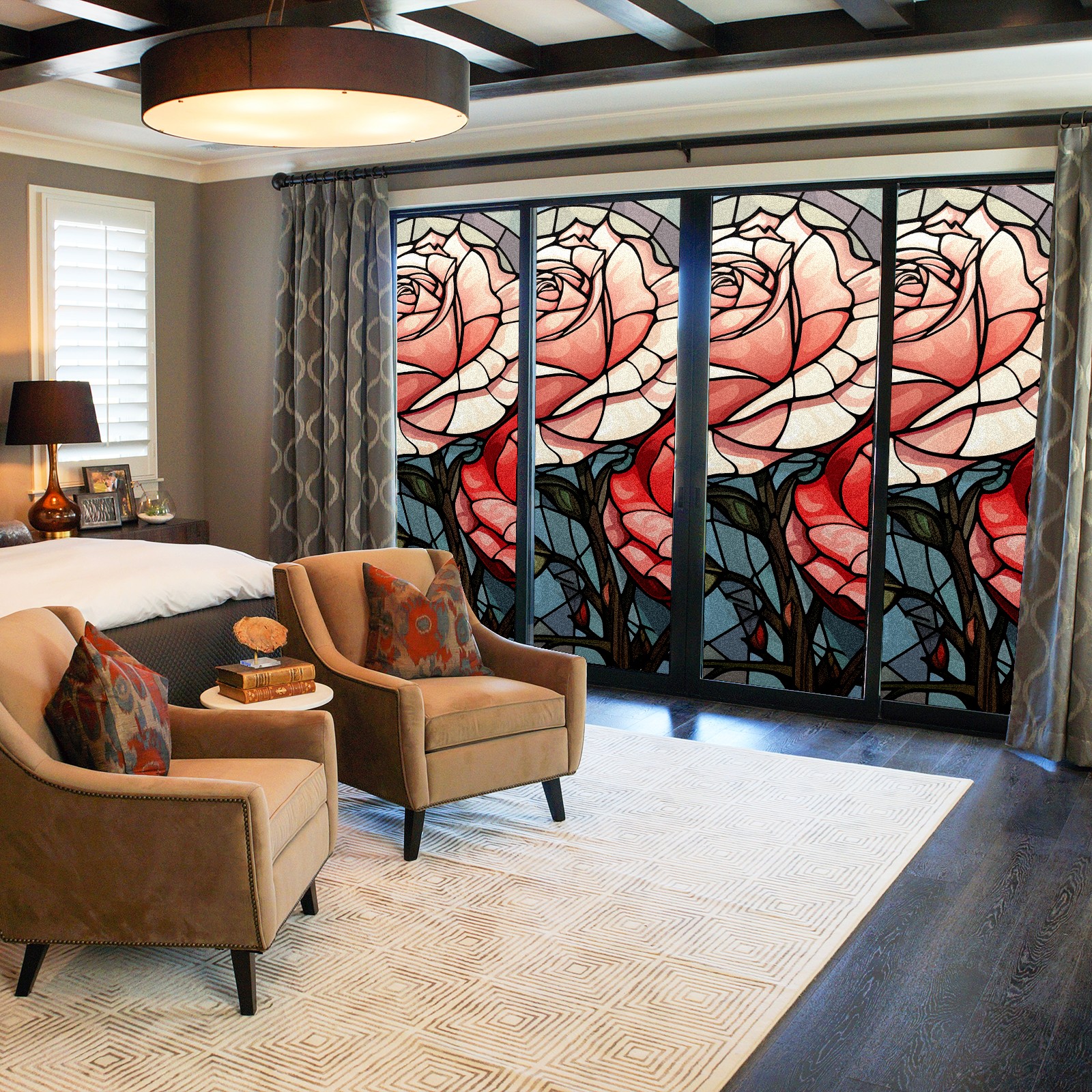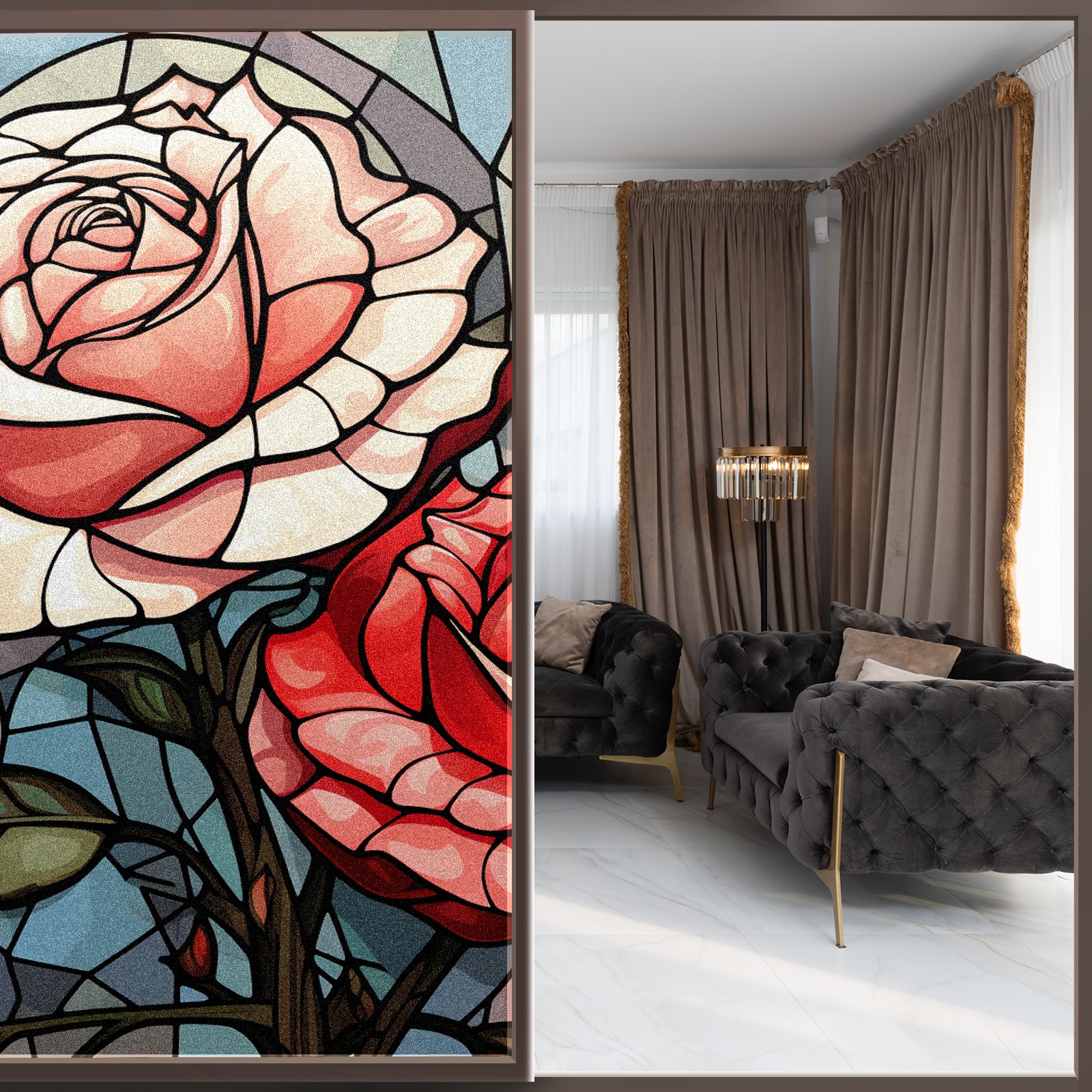 Static Cling Decorative Window Film Frosted Privacy Film Window Clings for Glass Windows No Glue Window Sticker for Bathroom Bedroom Office Stained Glass Rose (2)
