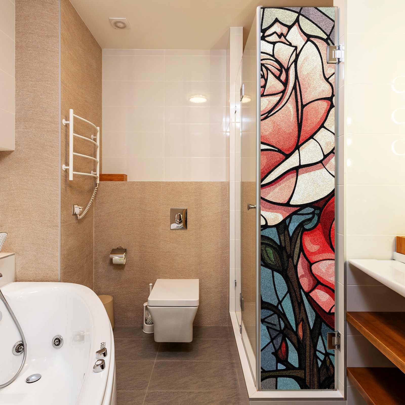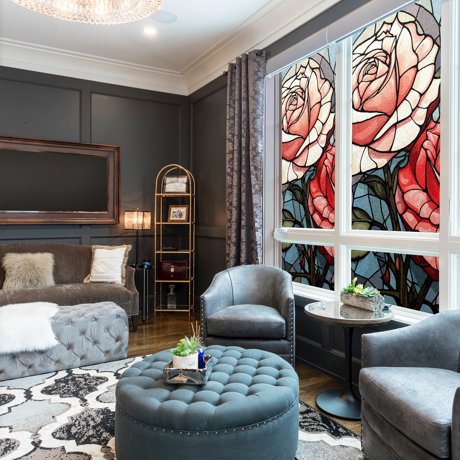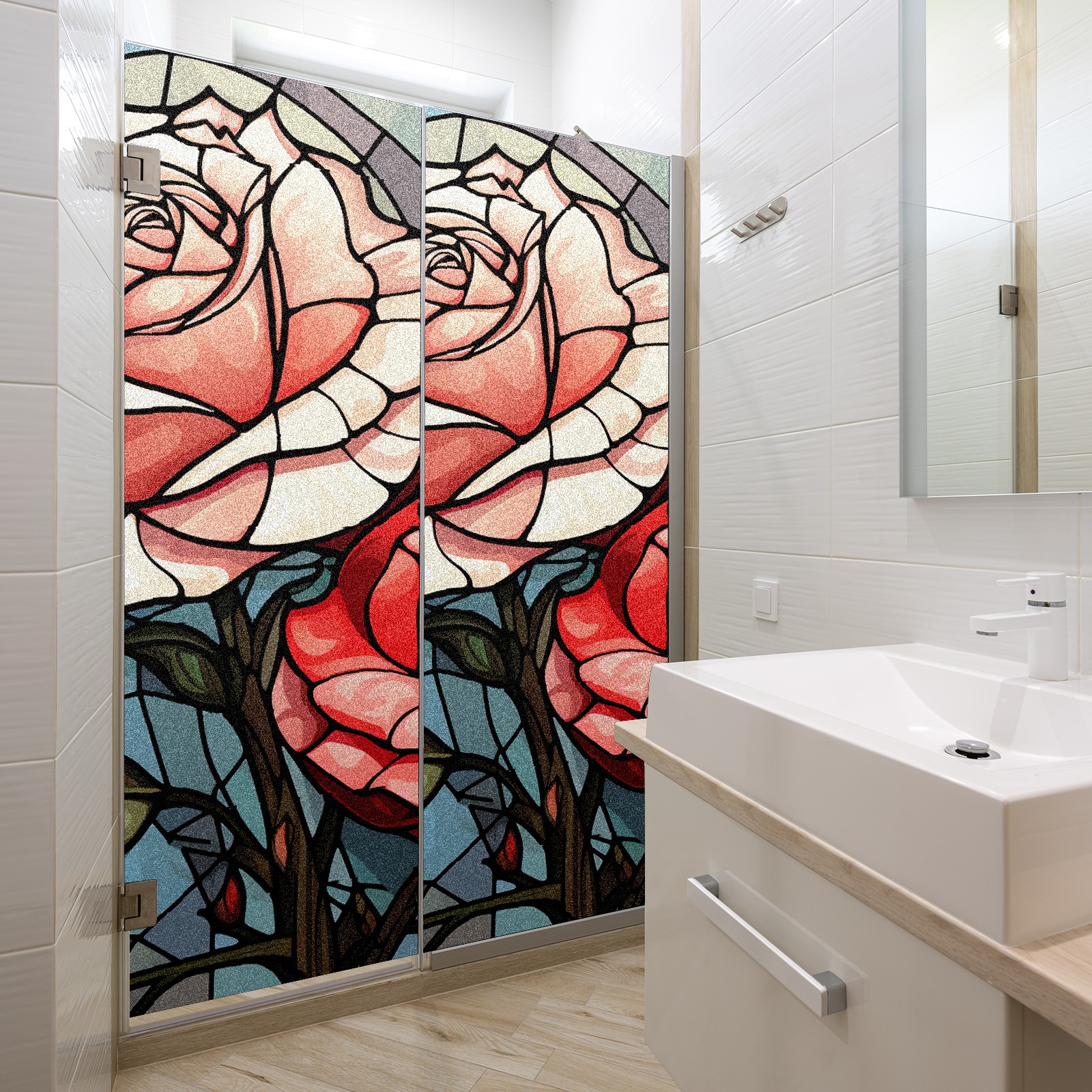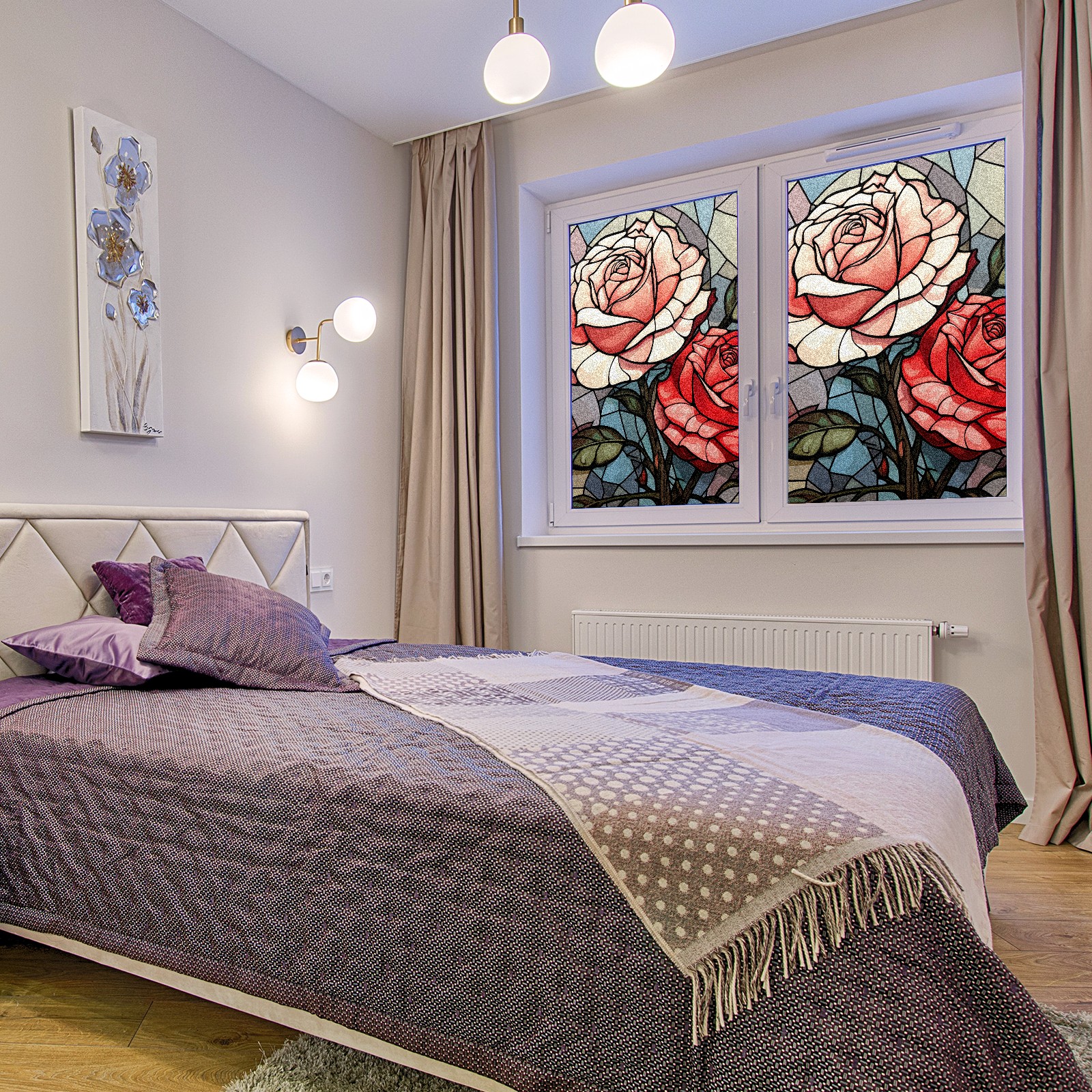 Static Cling Decorative Window Film Frosted Privacy Film Window Clings for Glass Windows No Glue Window Sticker for Bathroom Bedroom Office Stained Glass Rose (2)