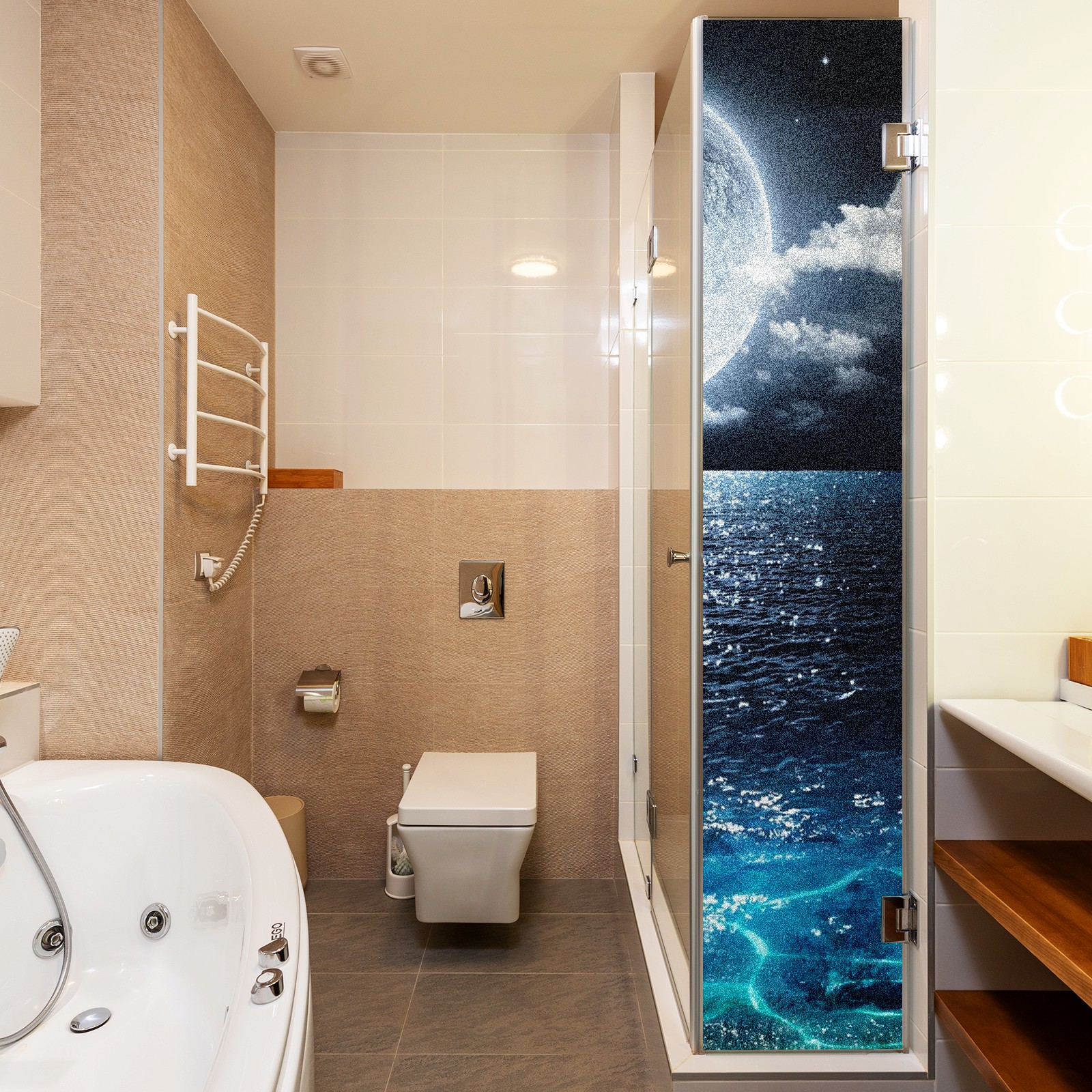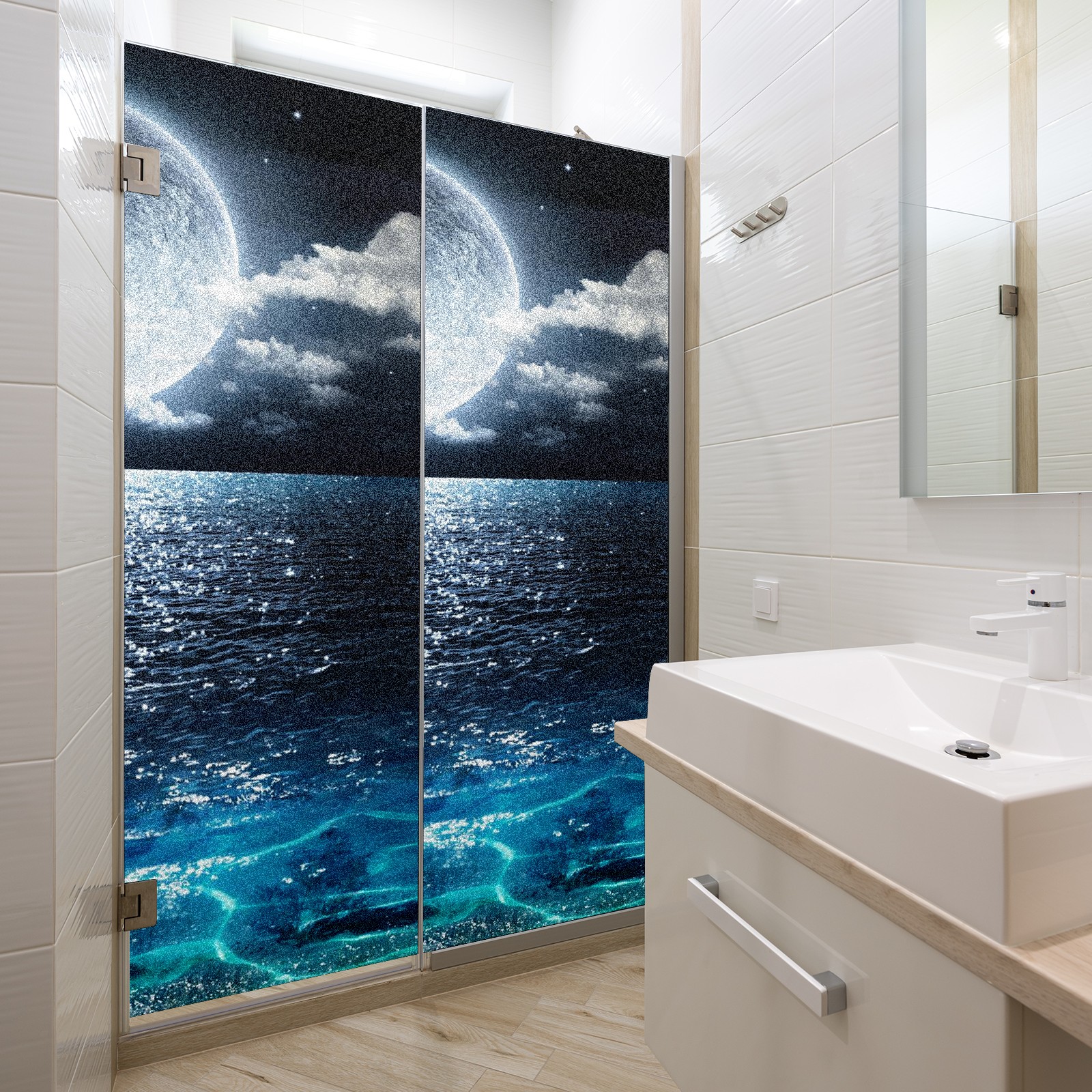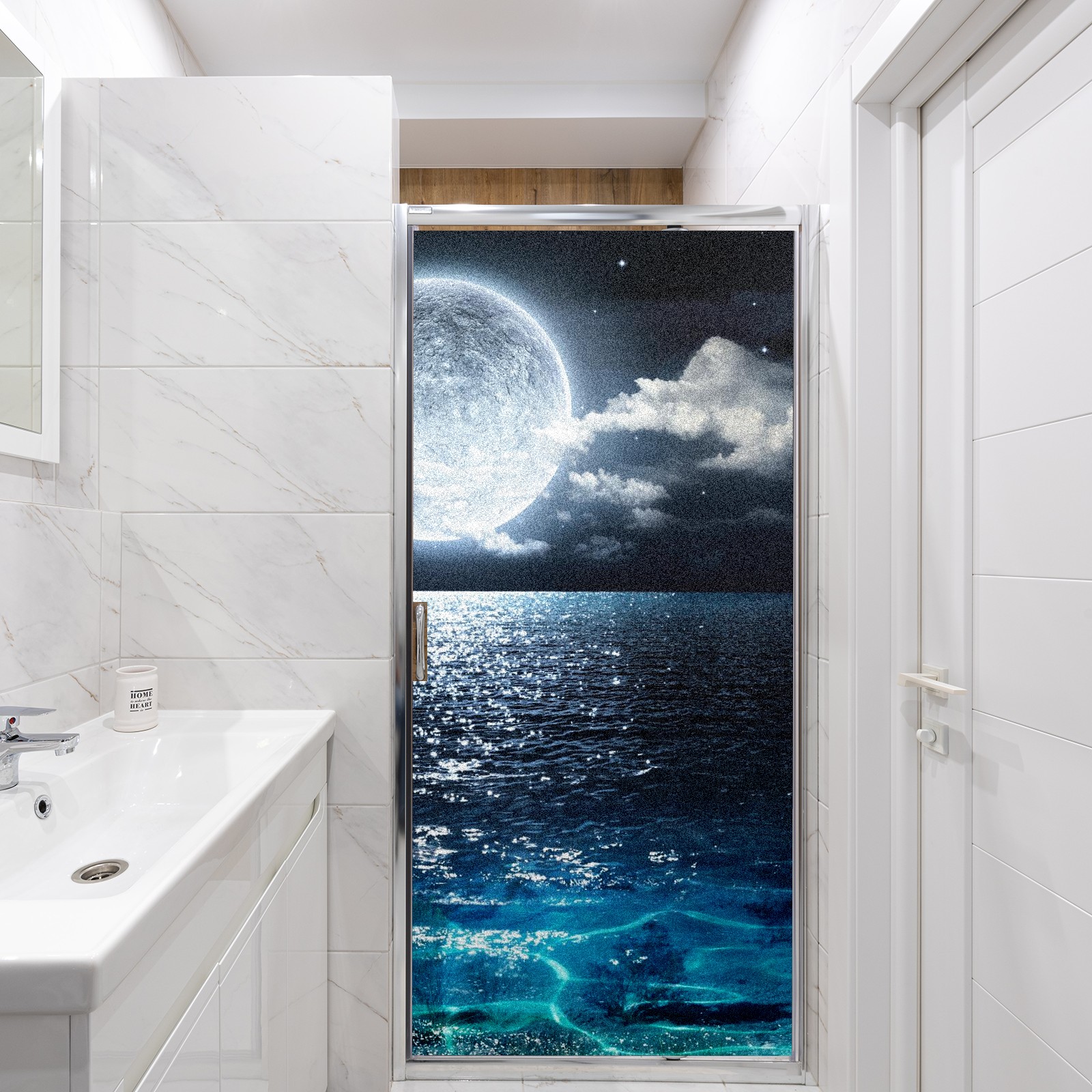 Static Cling Decorative Window Film Frosted Privacy Film Window Clings for Glass Windows No Glue Window Sticker for Bathroom Bedroom Office Moonlight Water