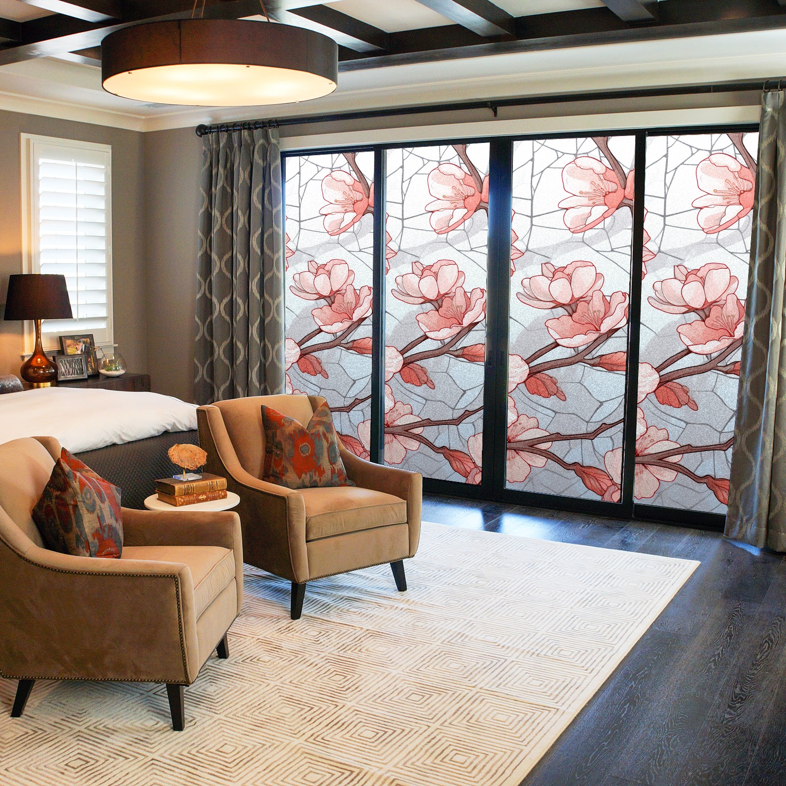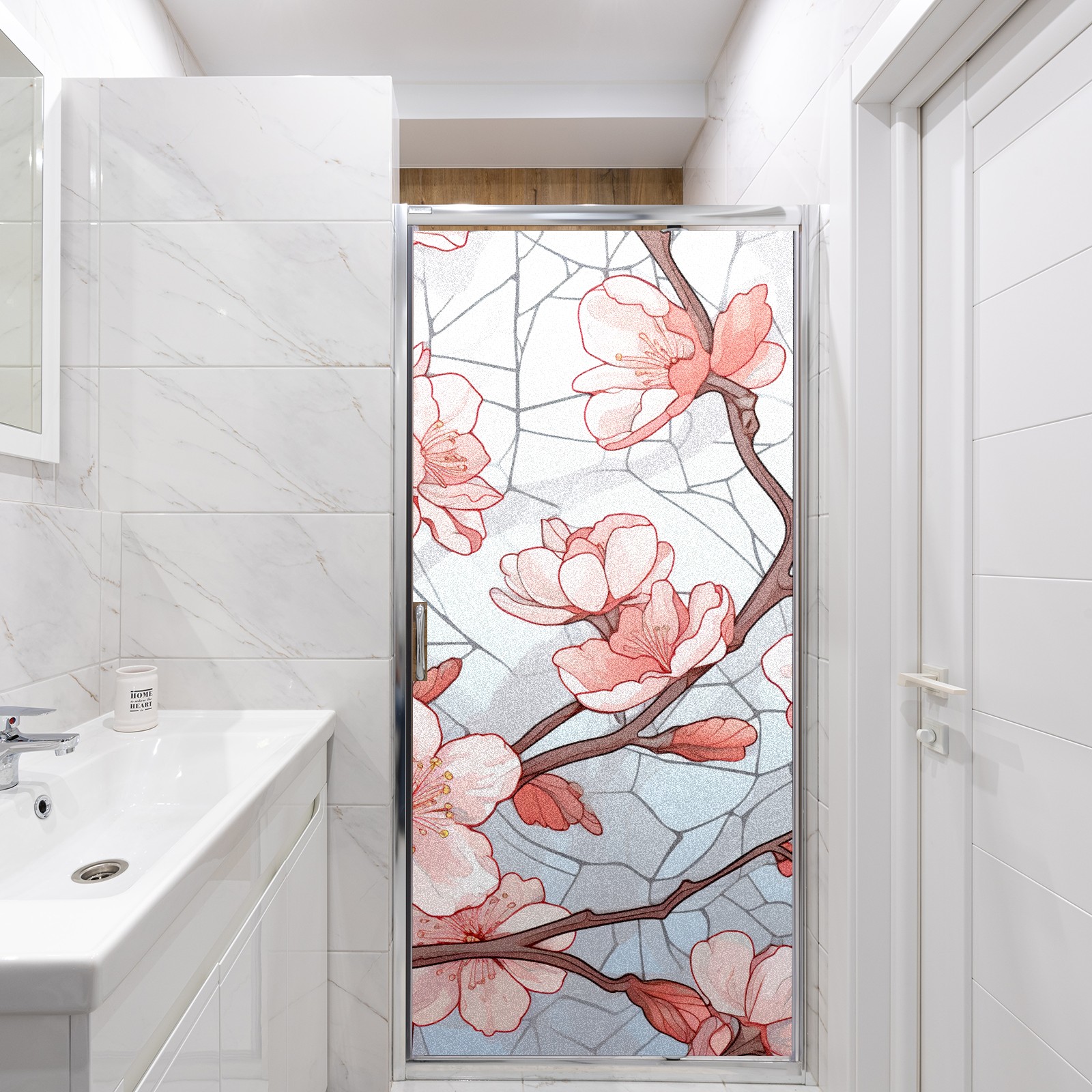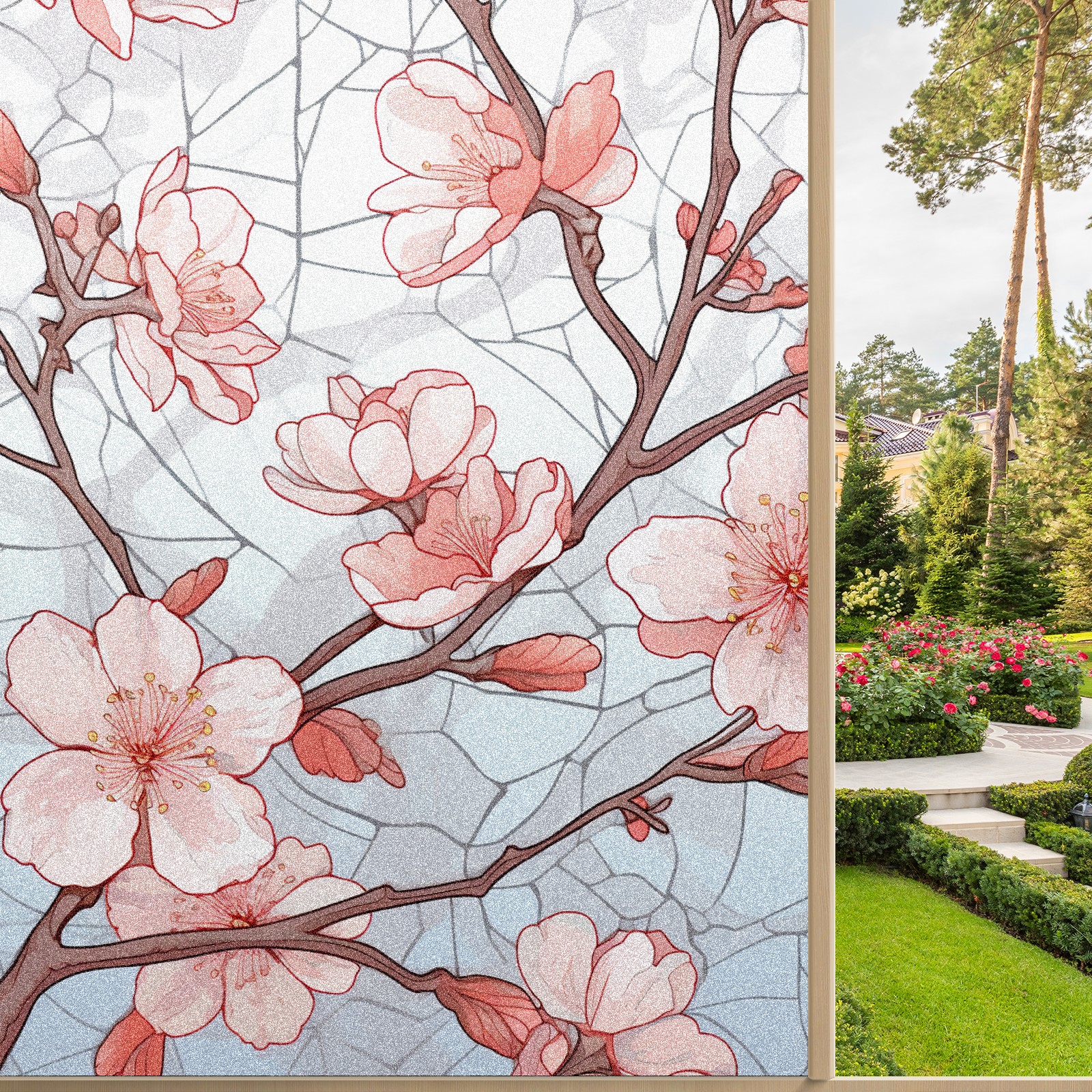 Static Cling Decorative Window Film Frosted Privacy Film Window Clings for Glass Windows No Glue Window Sticker for Bathroom Bedroom Office Stained Glass Peach Blossom (4)