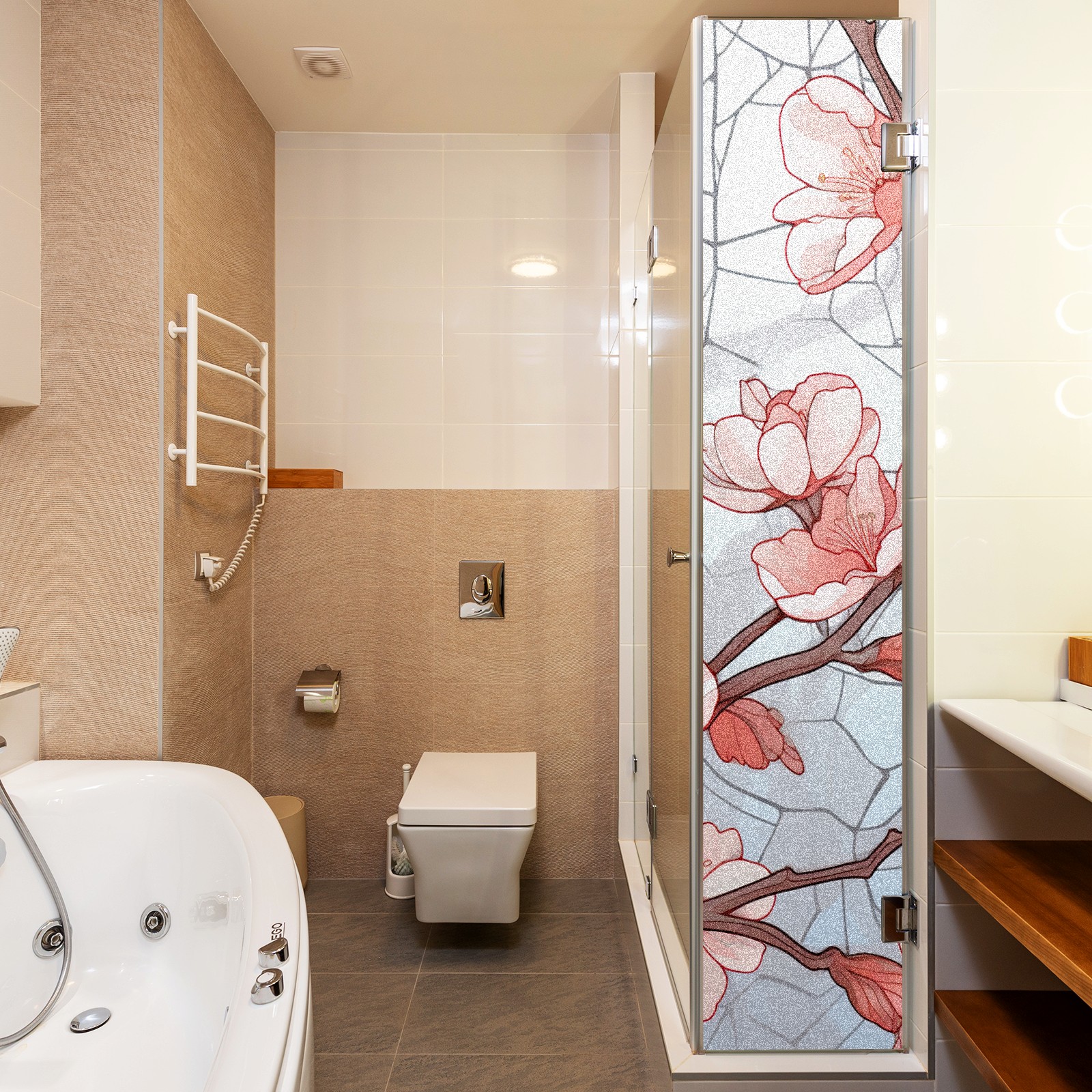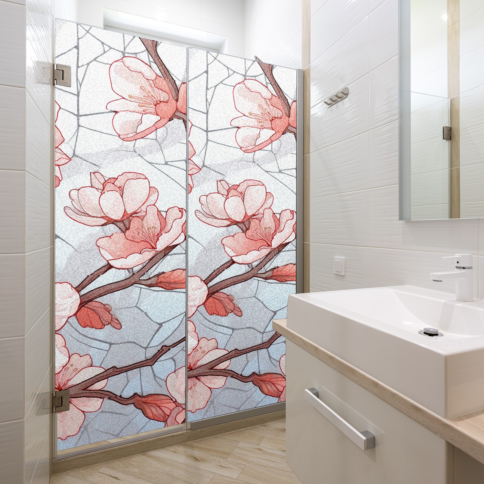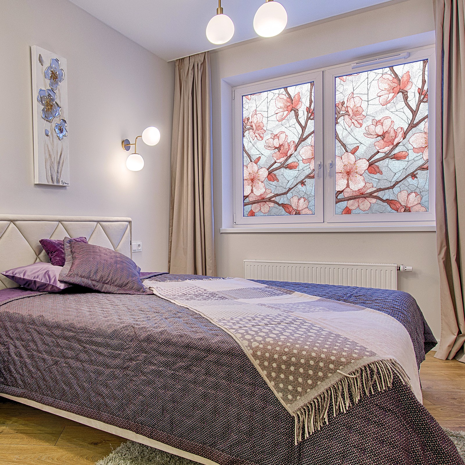 Static Cling Decorative Window Film Frosted Privacy Film Window Clings for Glass Windows No Glue Window Sticker for Bathroom Bedroom Office Stained Glass Peach Blossom (4)