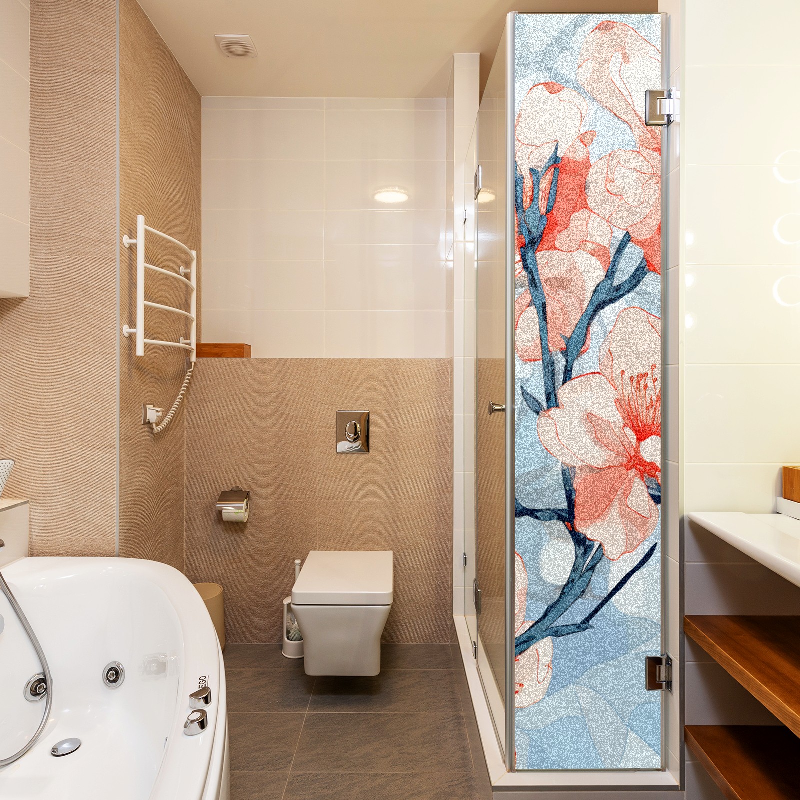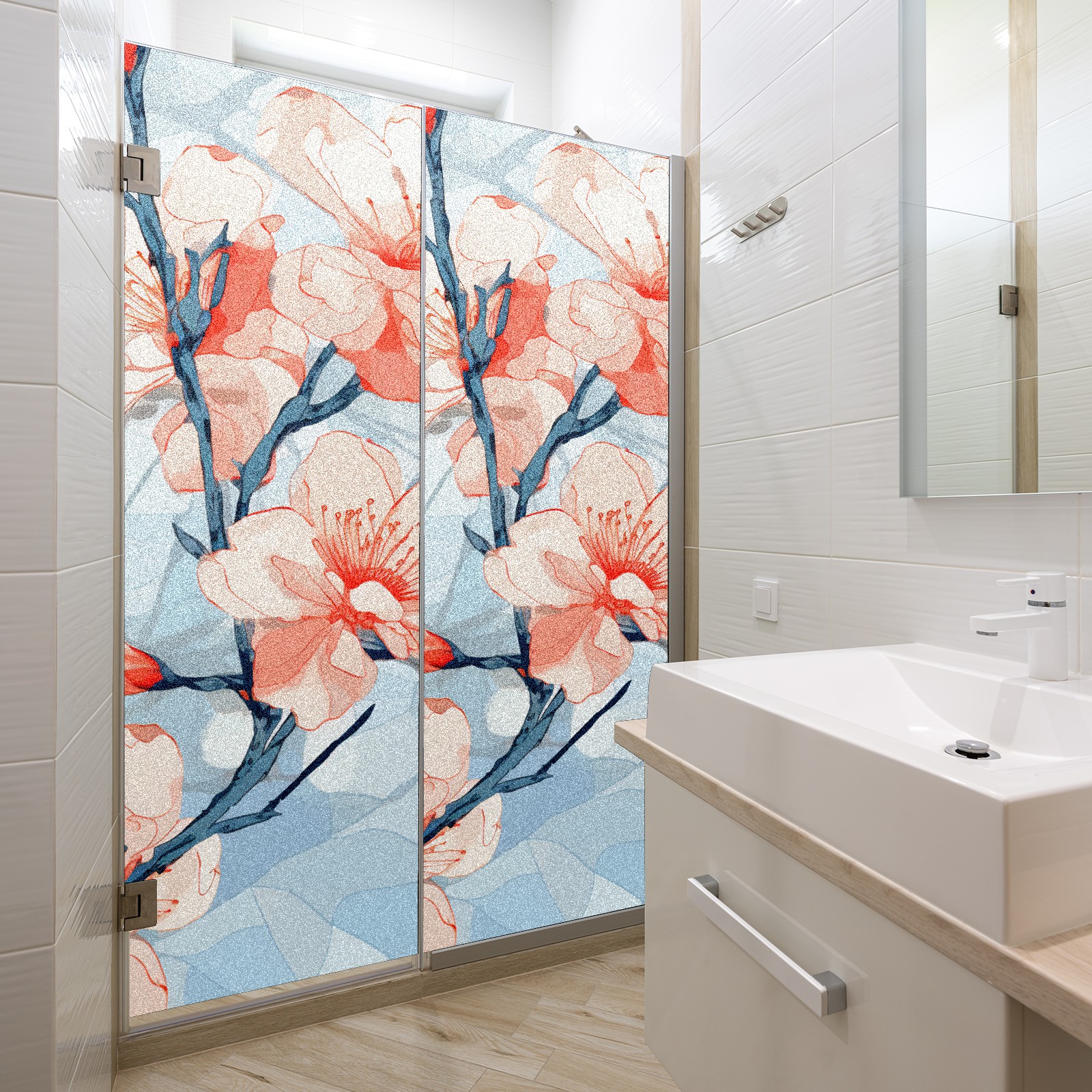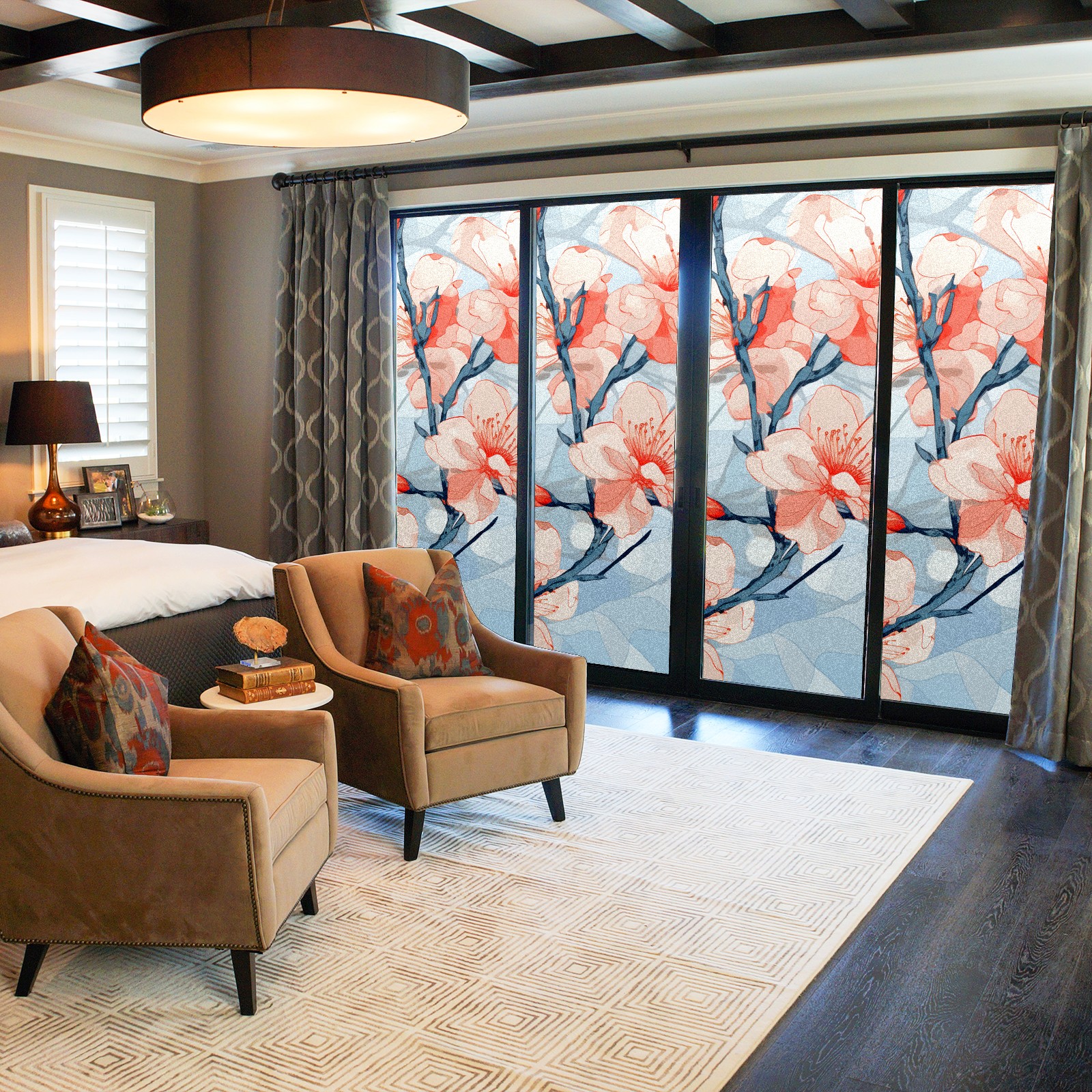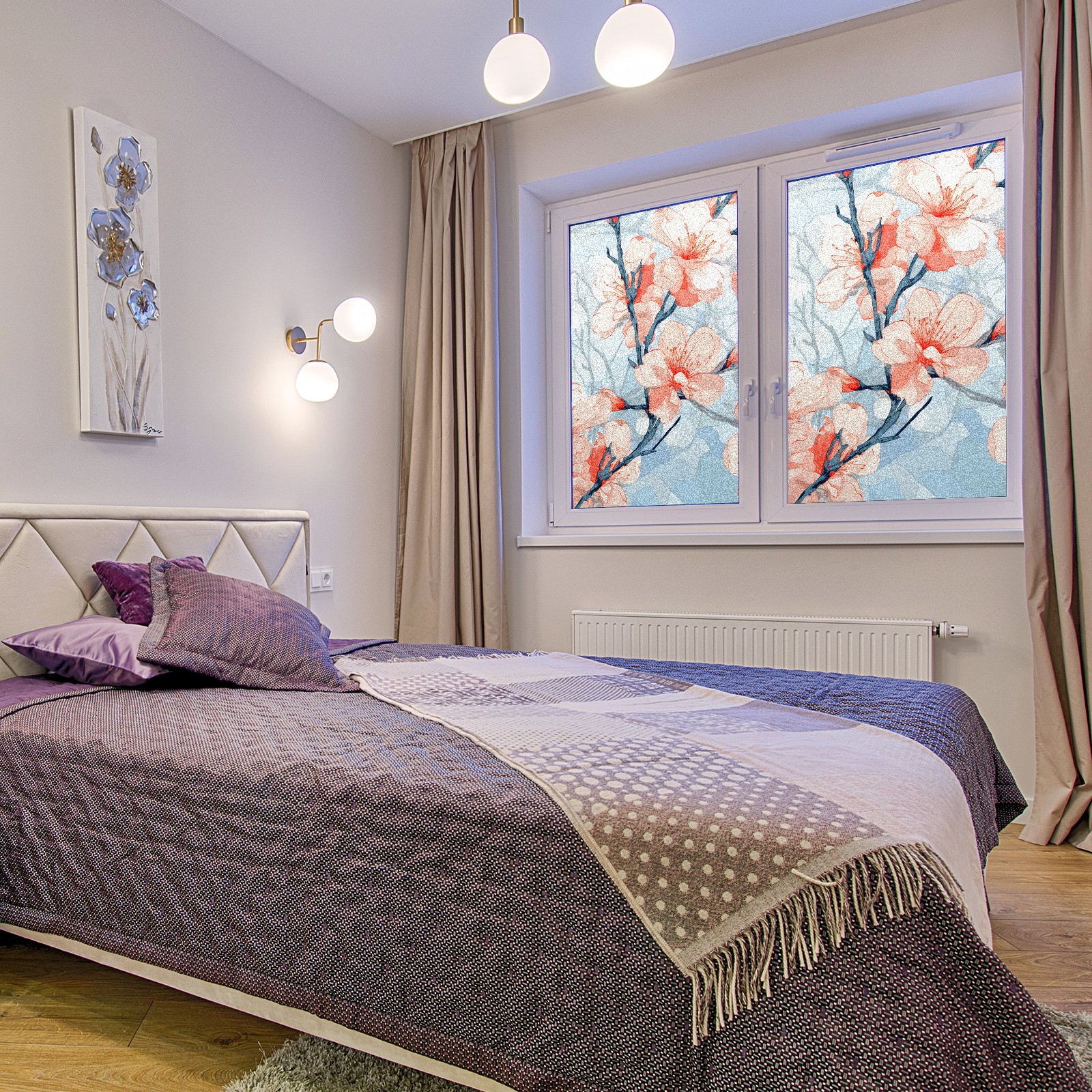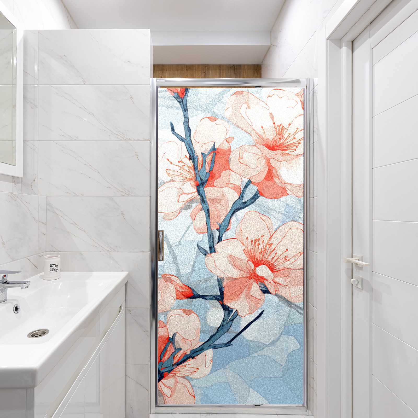 Static Cling Decorative Window Film Frosted Privacy Film Window Clings for Glass Windows No Glue Window Sticker for Bathroom Bedroom Office Stained Glass Peach Blossom (3)