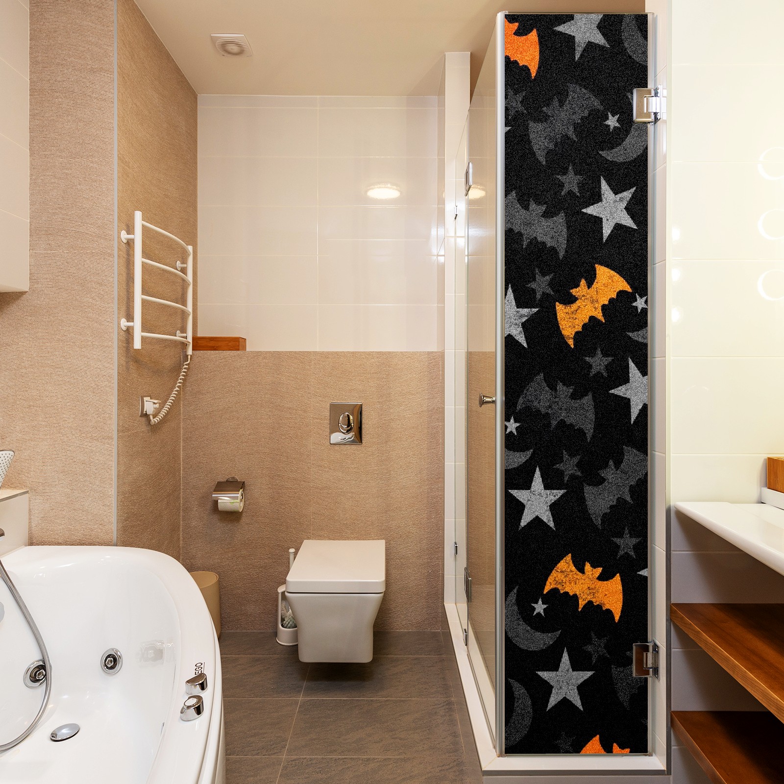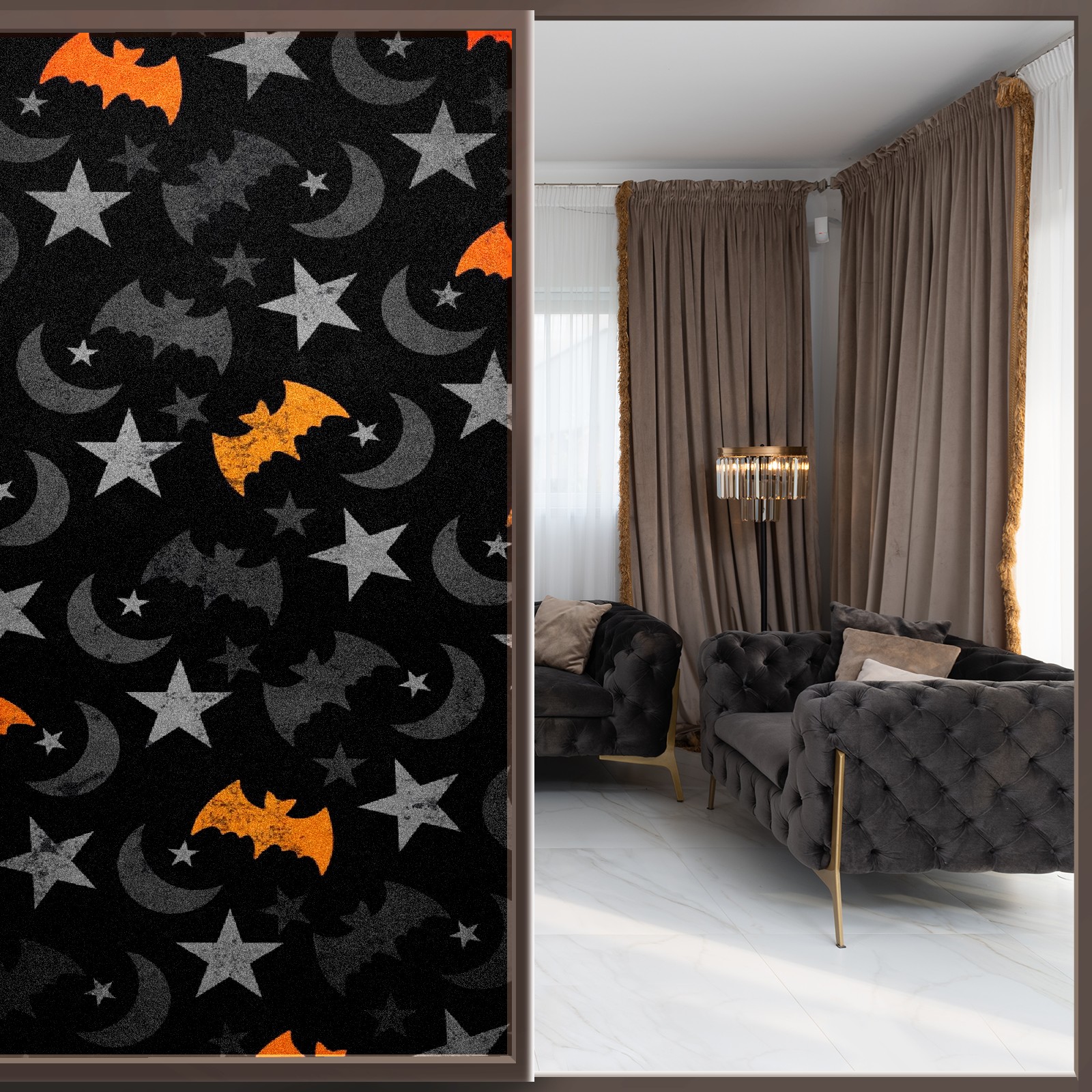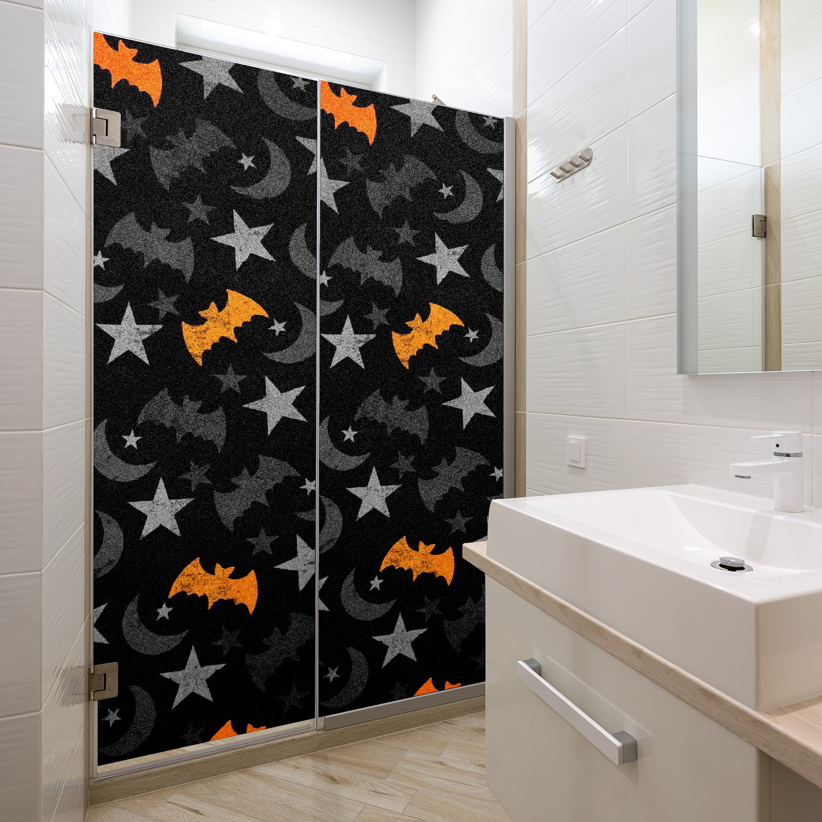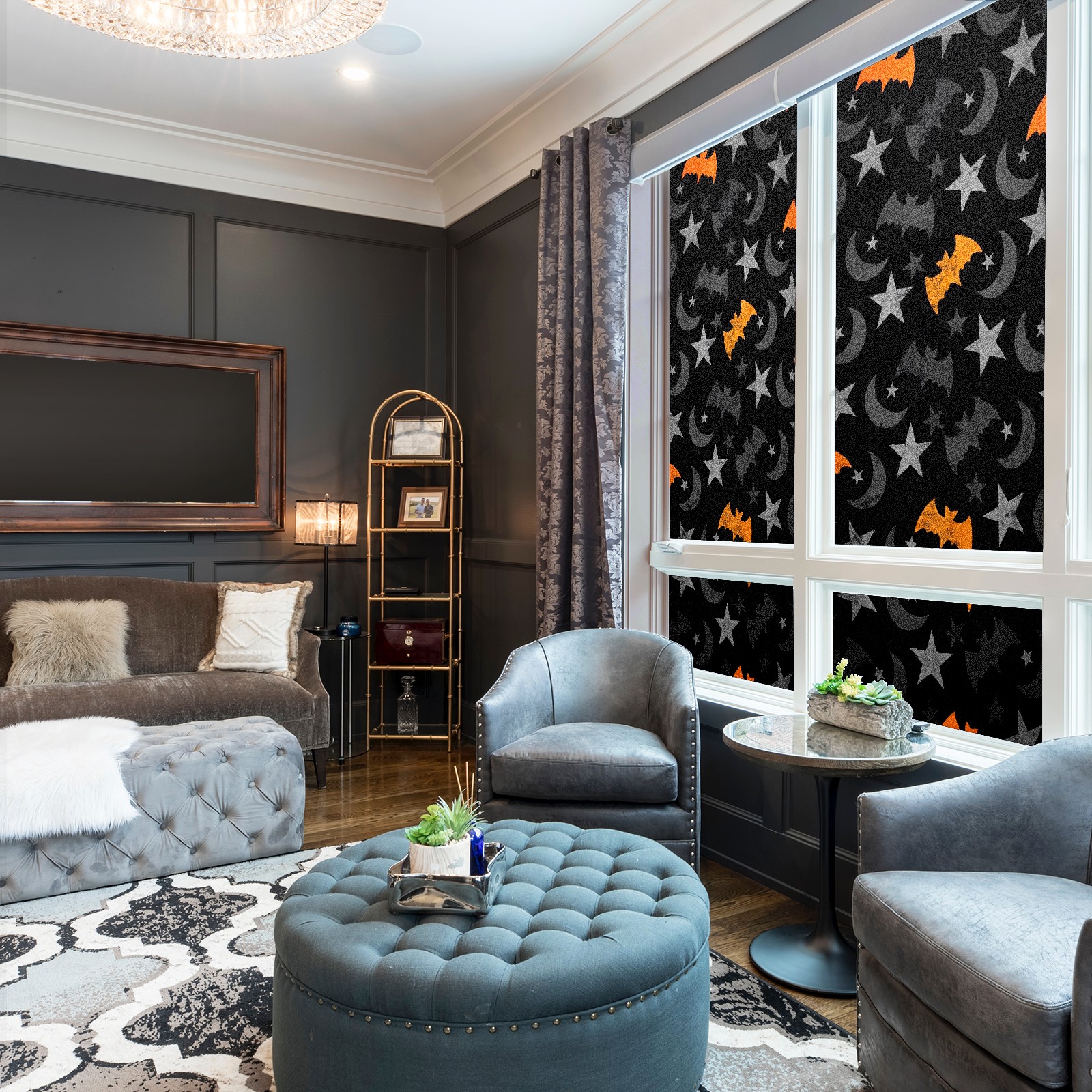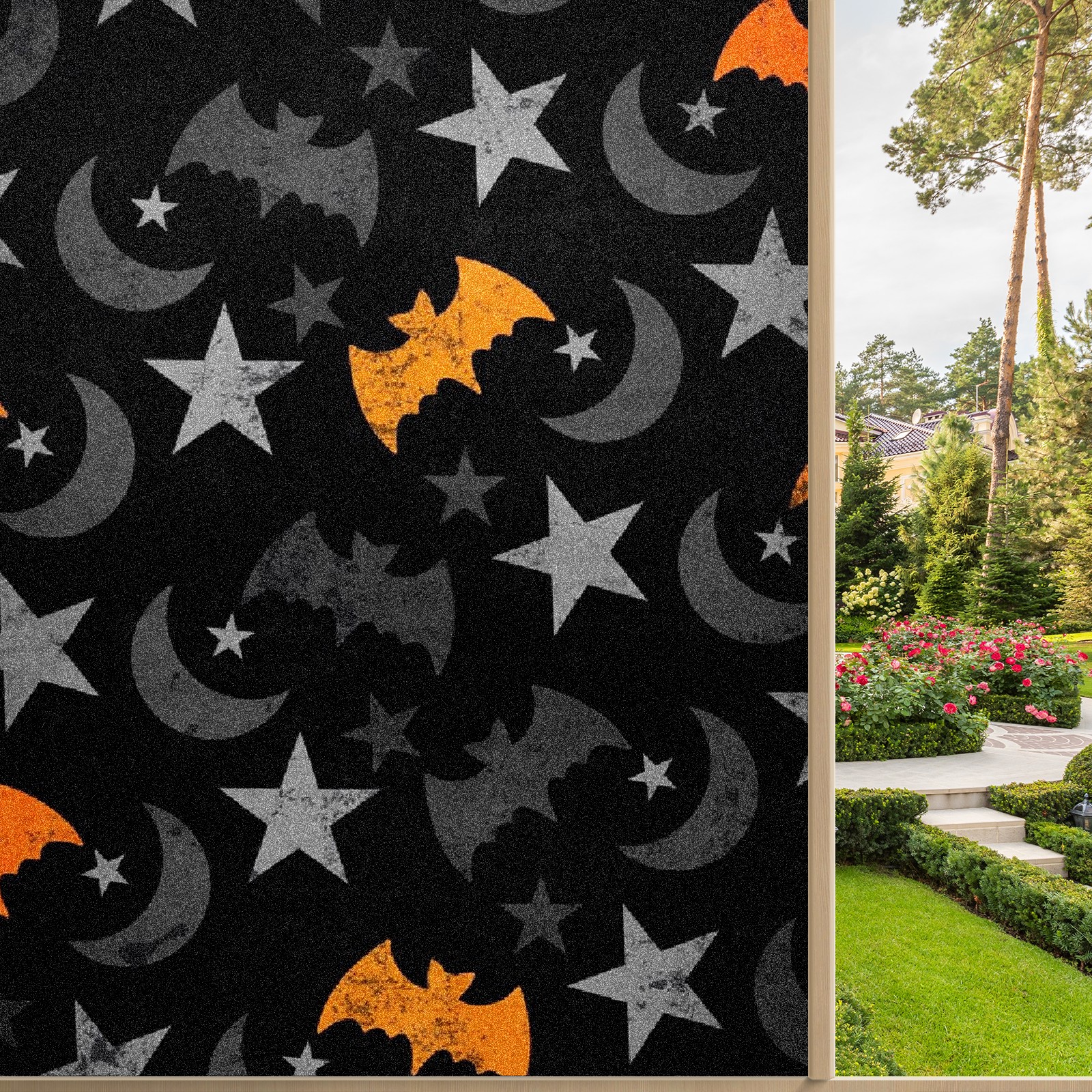 Static Cling Decorative Window Film Frosted Privacy Film Window Clings for Glass Windows No Glue Window Sticker for Bathroom Bedroom Office Halloween Moon Bat