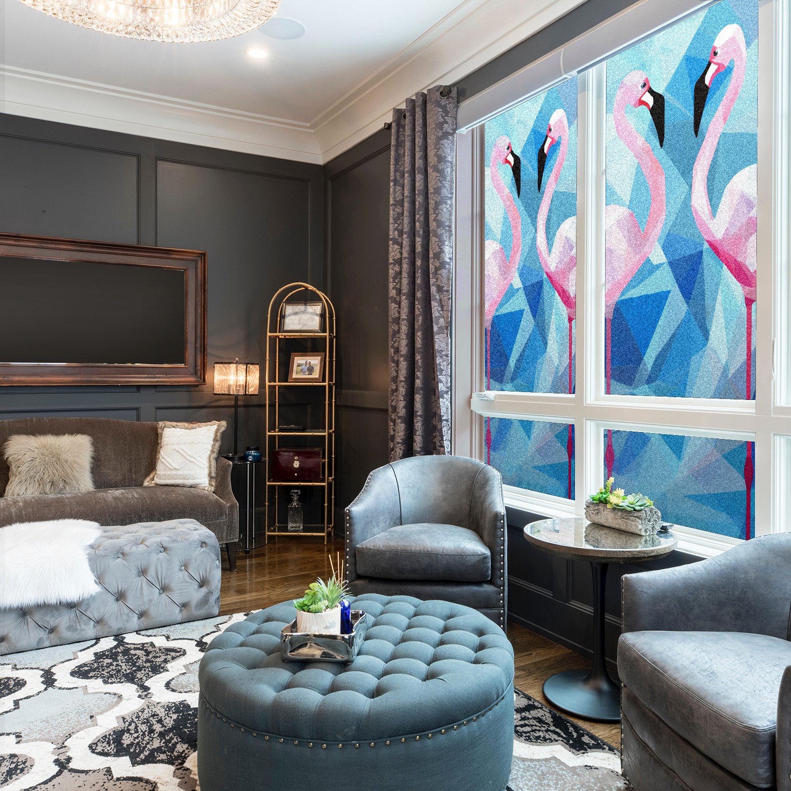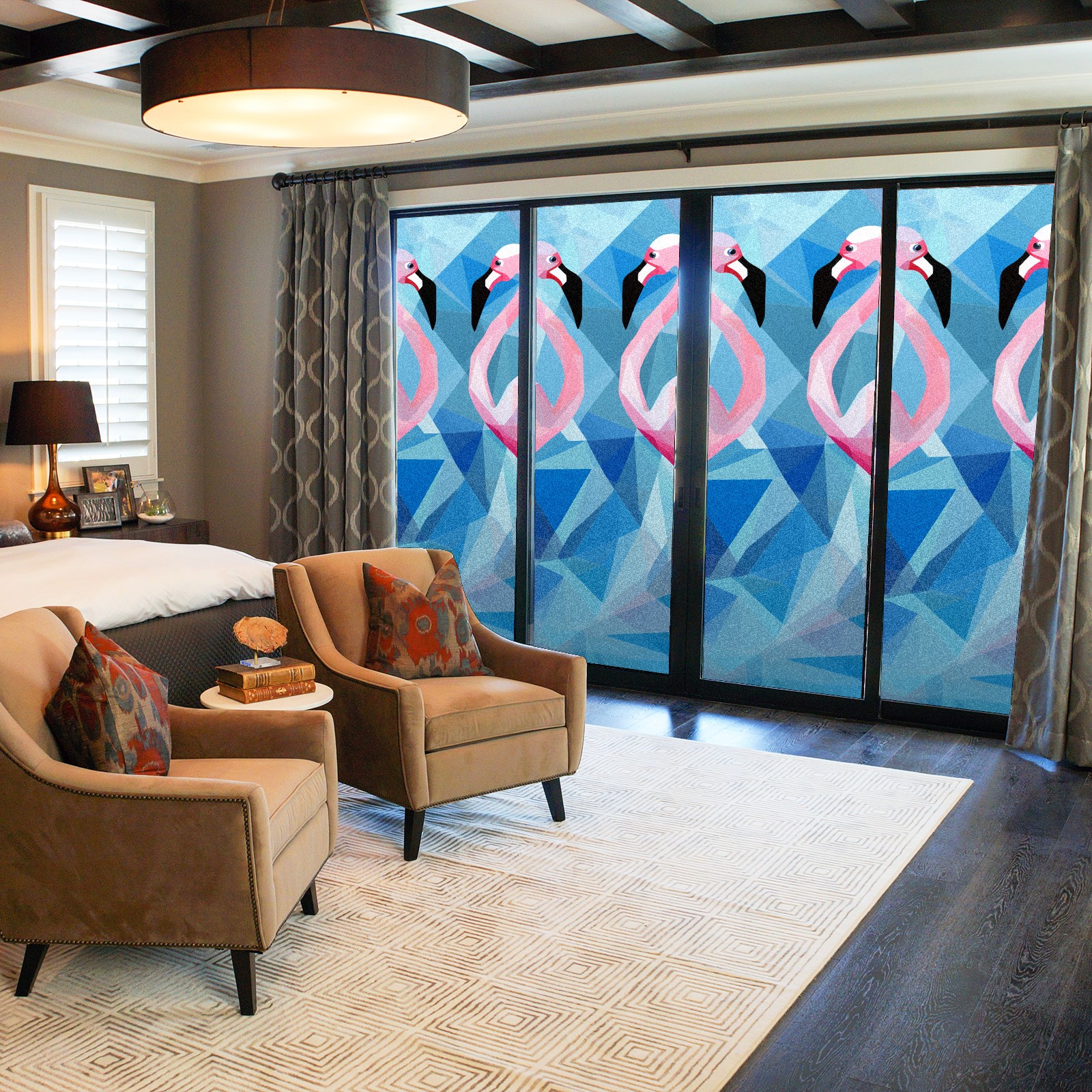 Static Cling Decorative Window Film Frosted Privacy Film Window Clings for Glass Windows No Glue Window Sticker for Bathroom Bedroom Office Stained Glass Flamingo (4)