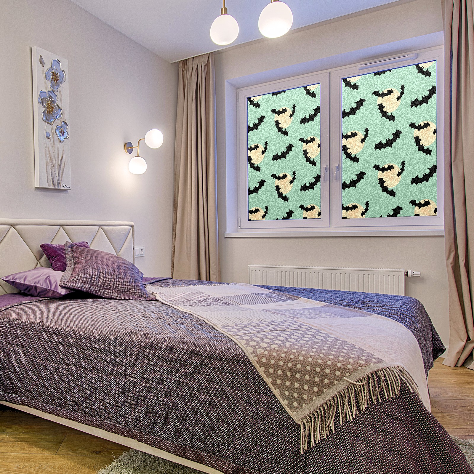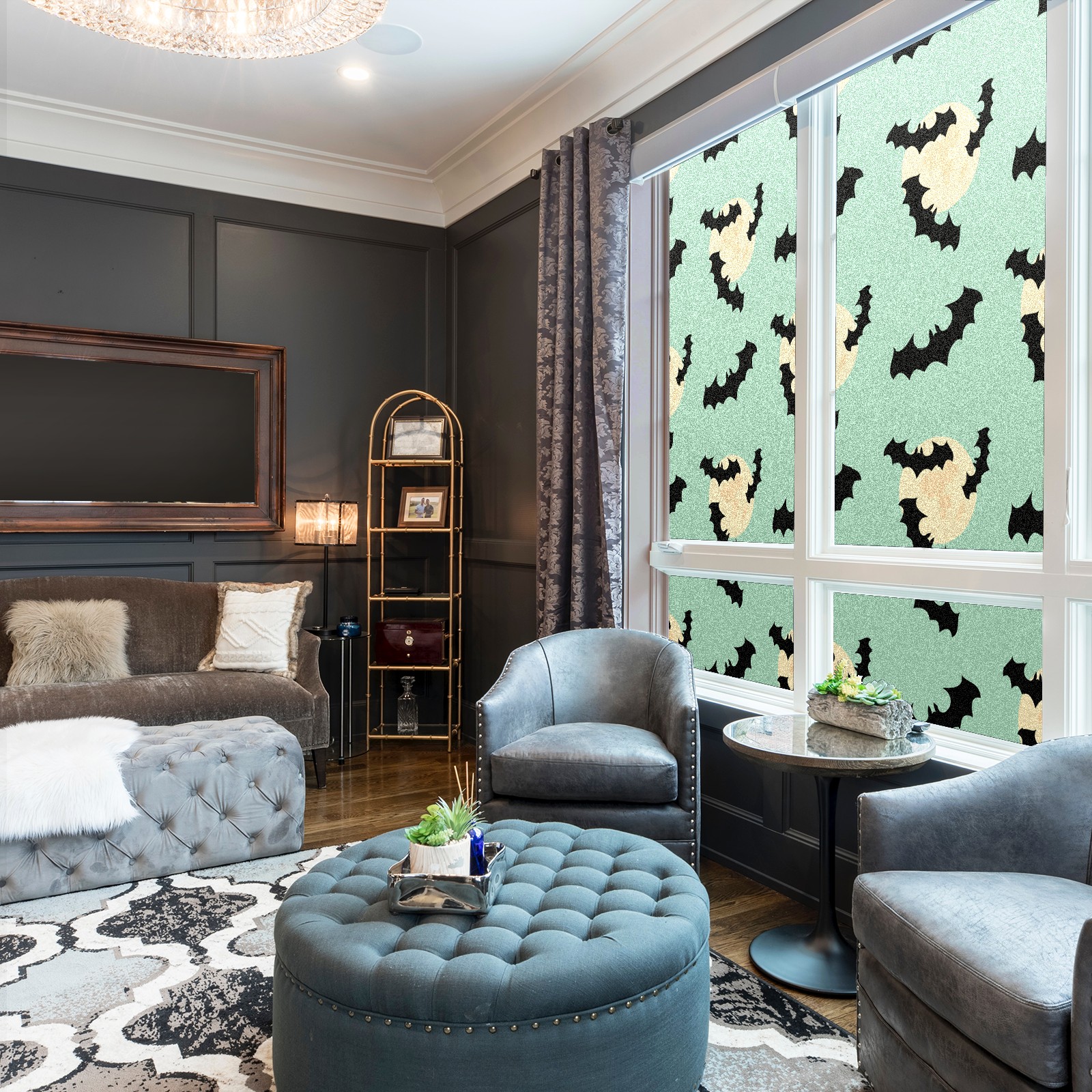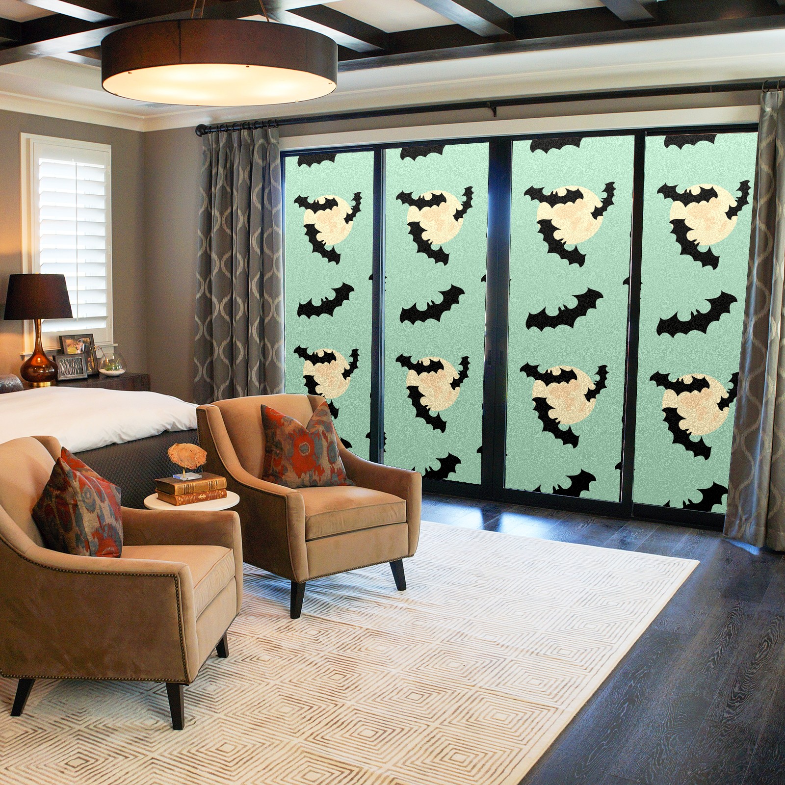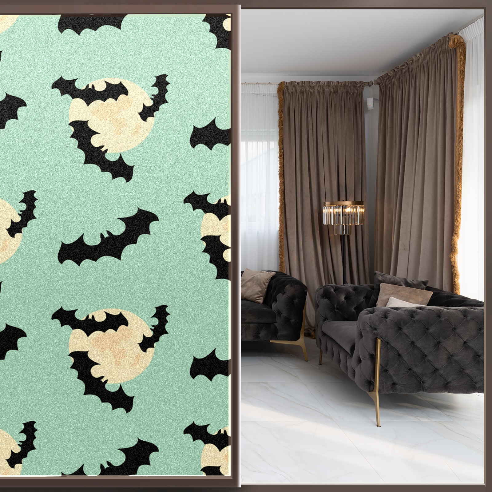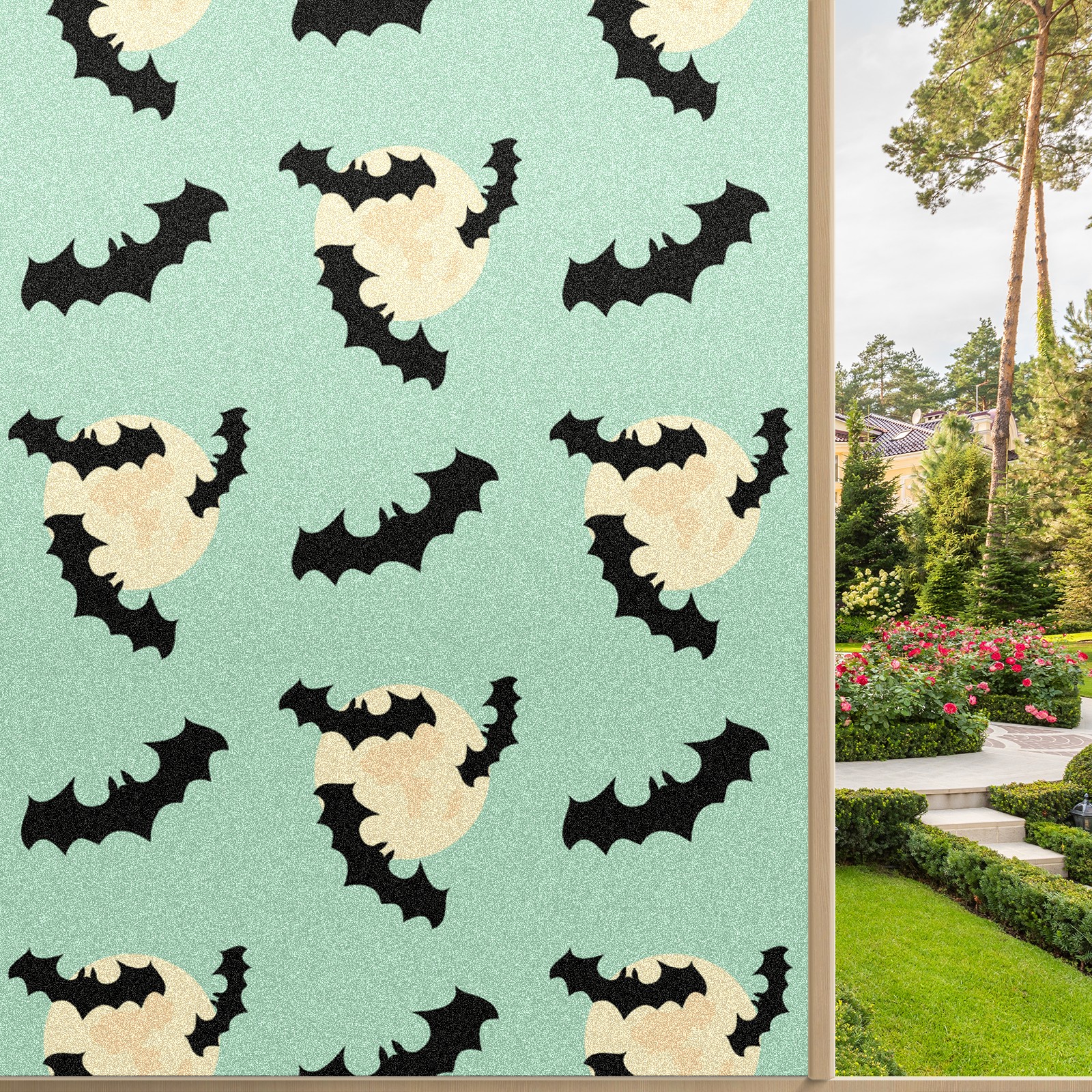Static Cling Decorative Window Film Frosted Privacy Film Window Clings for Glass Windows No Glue Window Sticker for Bathroom Bedroom Office Bat Moon Halloween