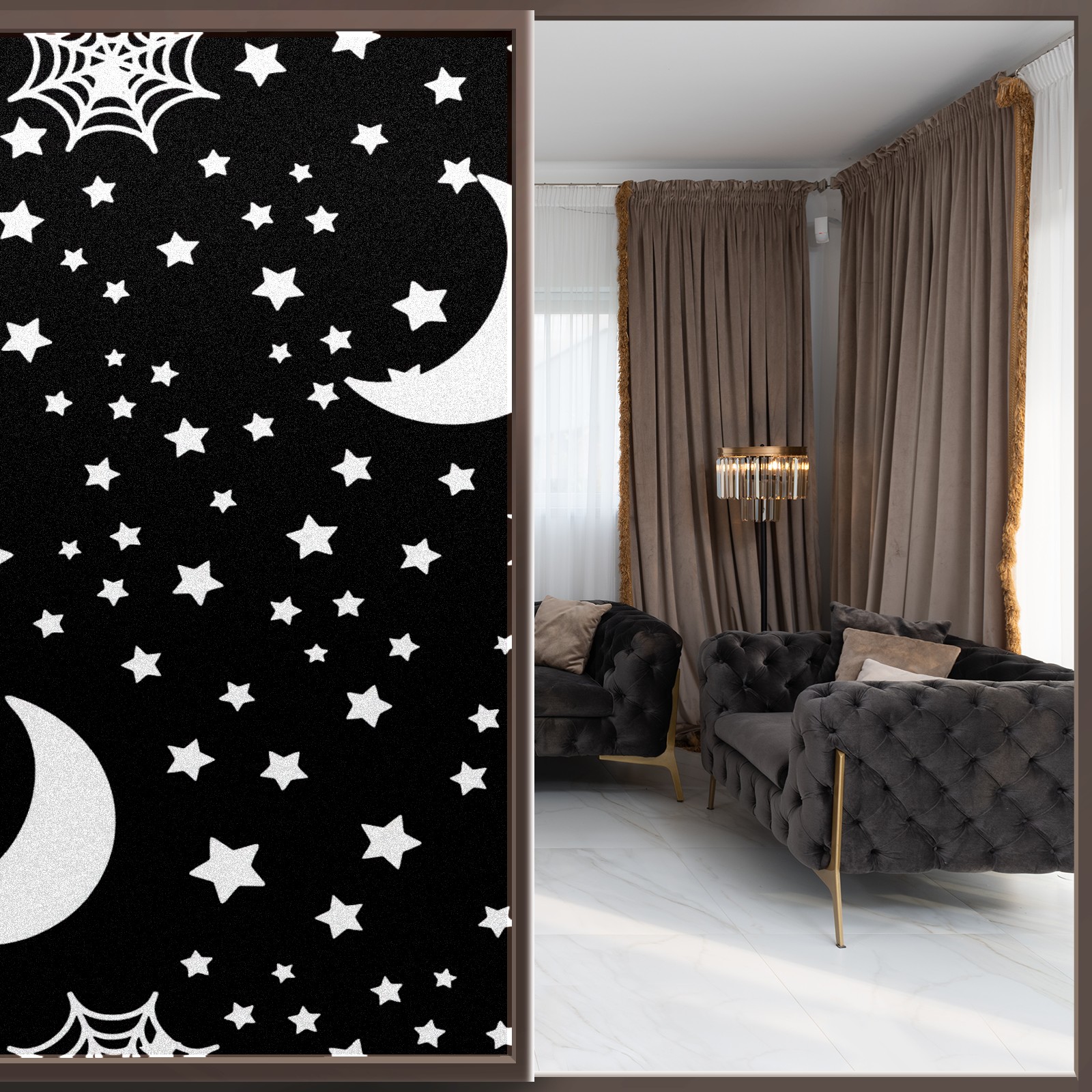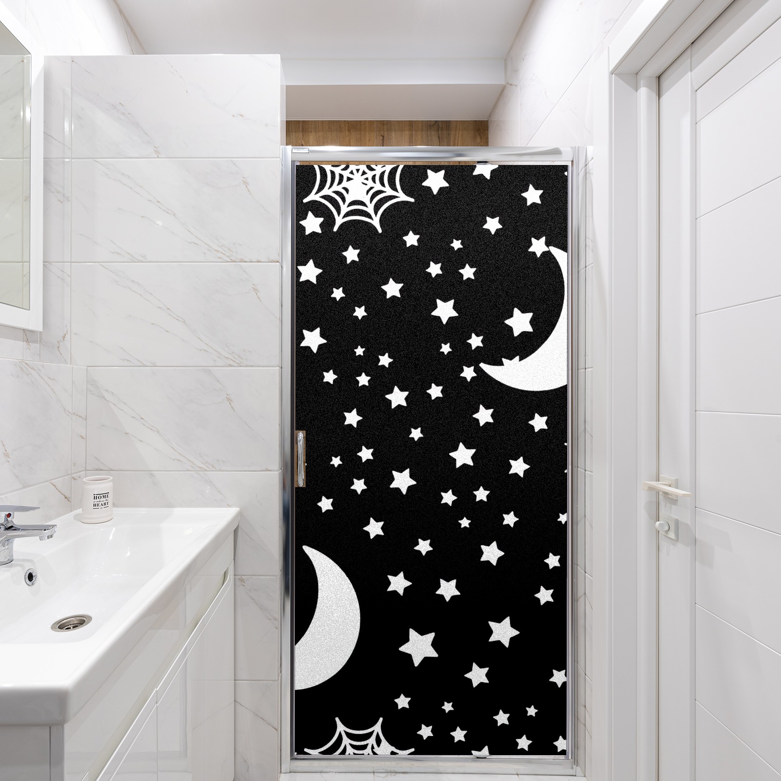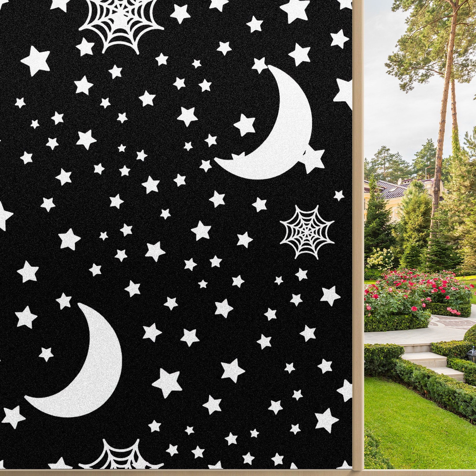 Static Cling Decorative Window Film Frosted Privacy Film Window Clings for Glass Windows No Glue Window Sticker for Bathroom Bedroom Office Halloween Moon And Stars