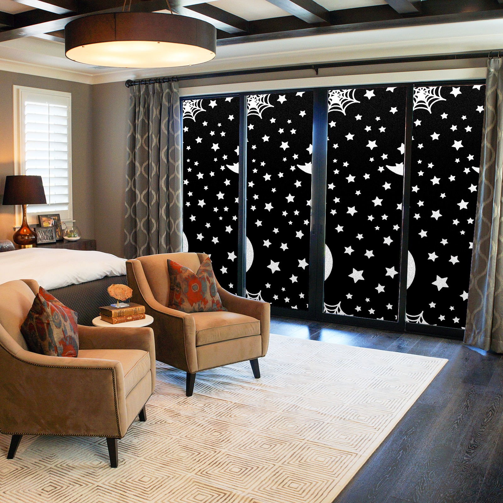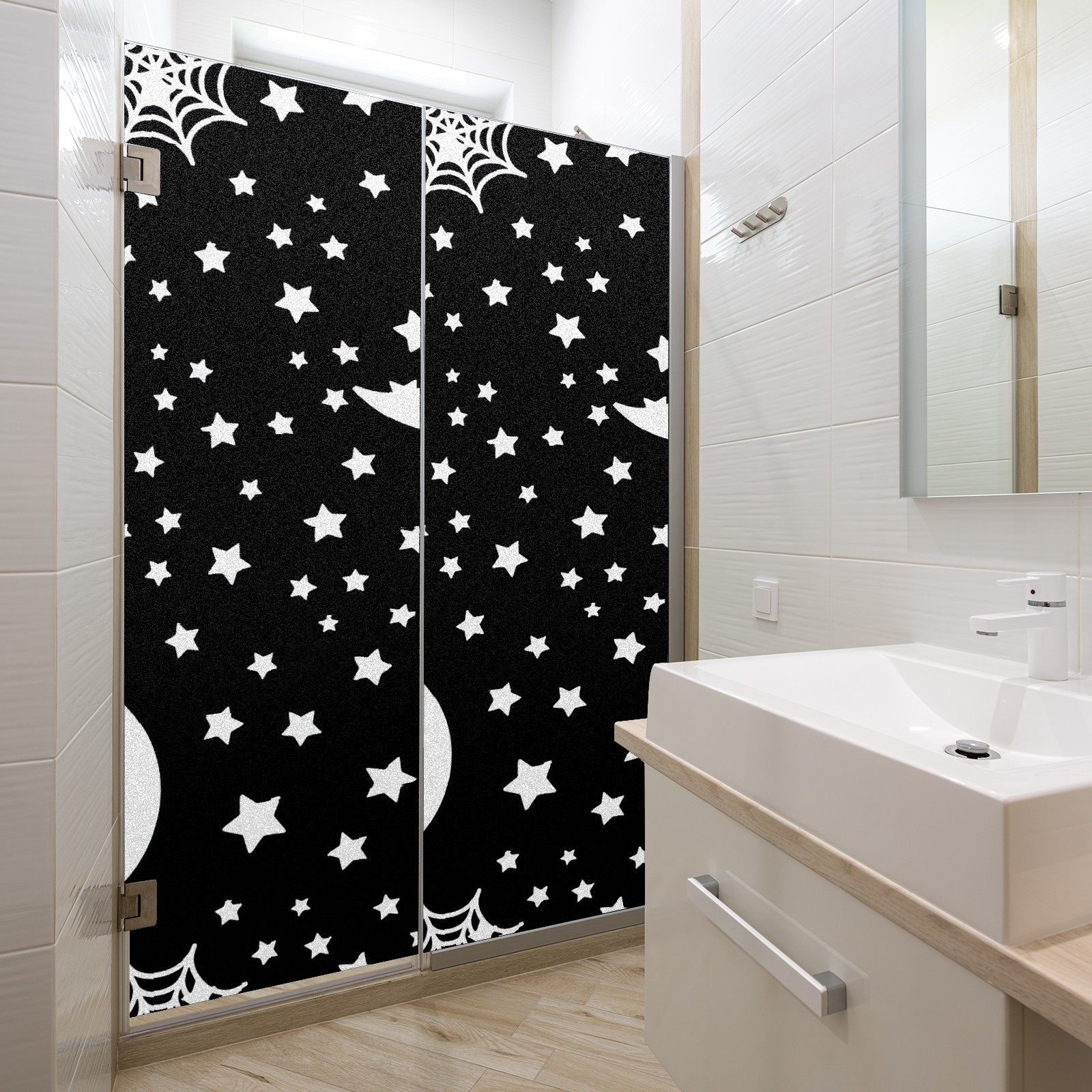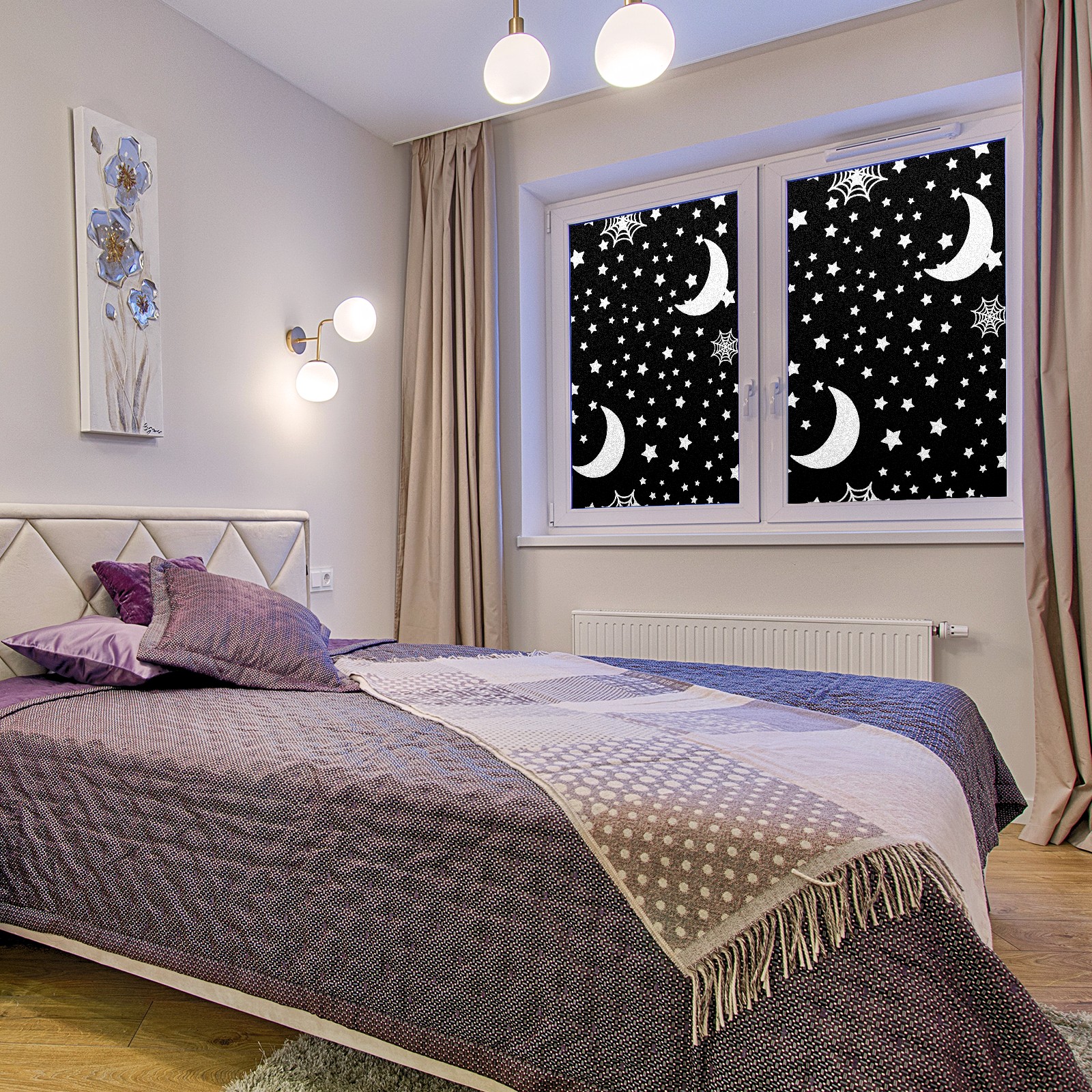 Static Cling Decorative Window Film Frosted Privacy Film Window Clings for Glass Windows No Glue Window Sticker for Bathroom Bedroom Office Halloween Moon And Stars