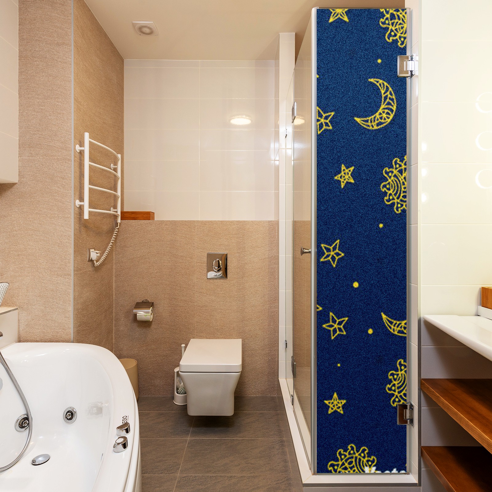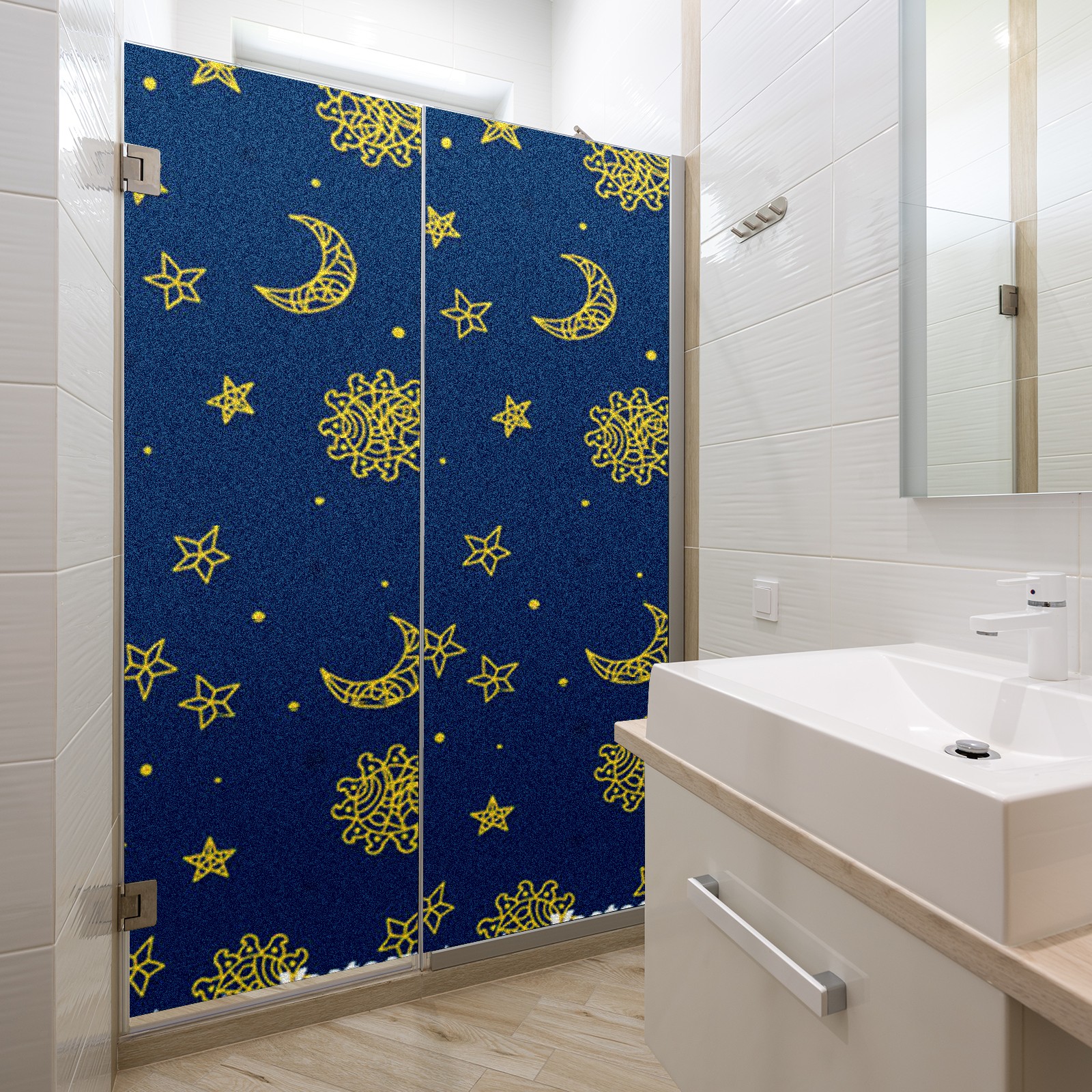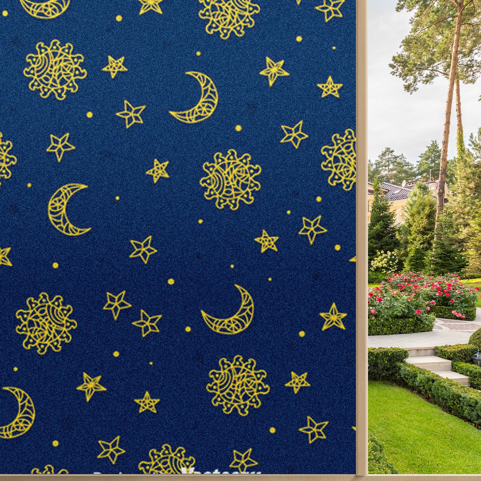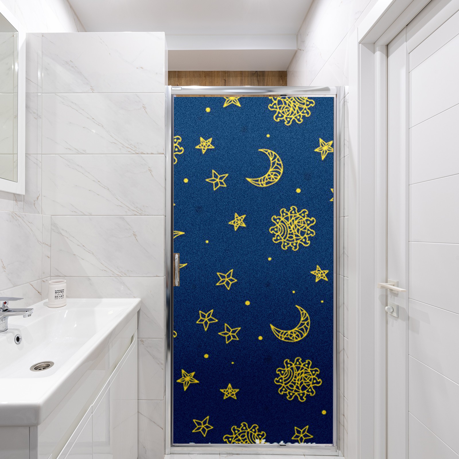 Static Cling Decorative Window Film Frosted Privacy Film Window Clings for Glass Windows No Glue Window Sticker for Bathroom Bedroom Office Sun And Moon
